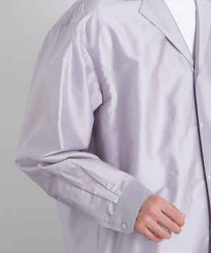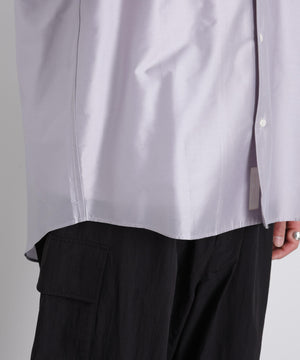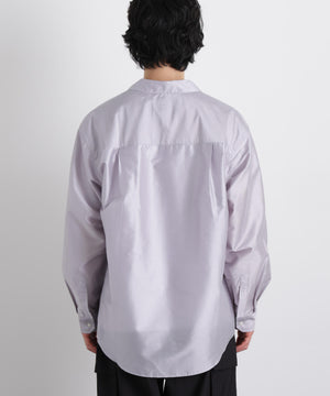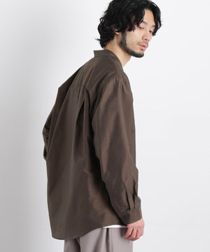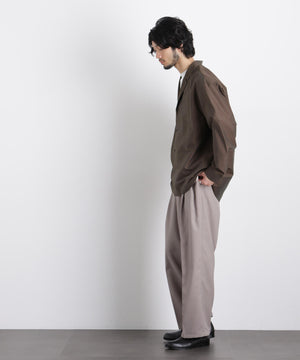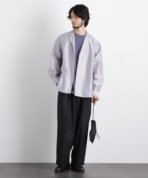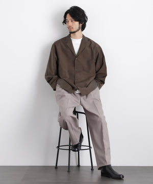 大人のワイドらしい余白のあるシルエットで、堅くなりすぎず抜け感を演出できるシャツ。シャツに小襟のテーラードカラーをあわせた端正なデザインの一枚。羽織りとしても使いやすく、きれいめの軸を崩さずにカジュアルダウンできるアイテムです。