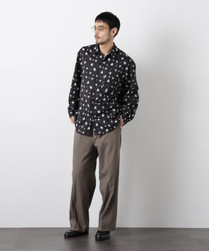 今期のトレンドであるフラワーモチーフを手書き風に表現したレギュラーカラーシャツ。一枚着としても、ジャケットのインナーとしても、コーディネートに映えるおすすめの一枚です。