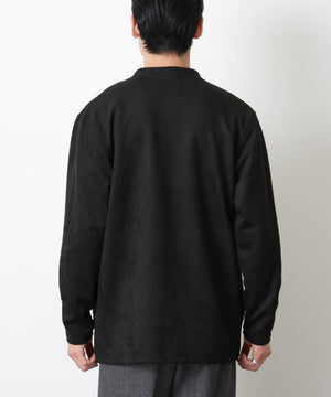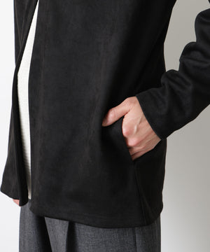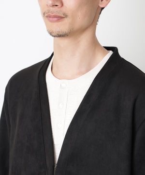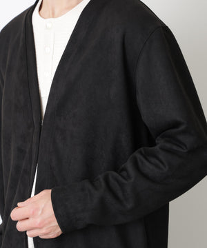 羽織るだけでコーディネートを上品に締める、トッパーカーディガン。マットな起毛感でスエードライクな表情を演出しながら、軽やかな印象のフェイクスエード素材を使用。直線的なラインを活かしたミニマルなデザインで、素材の表情を主役にした一枚です。