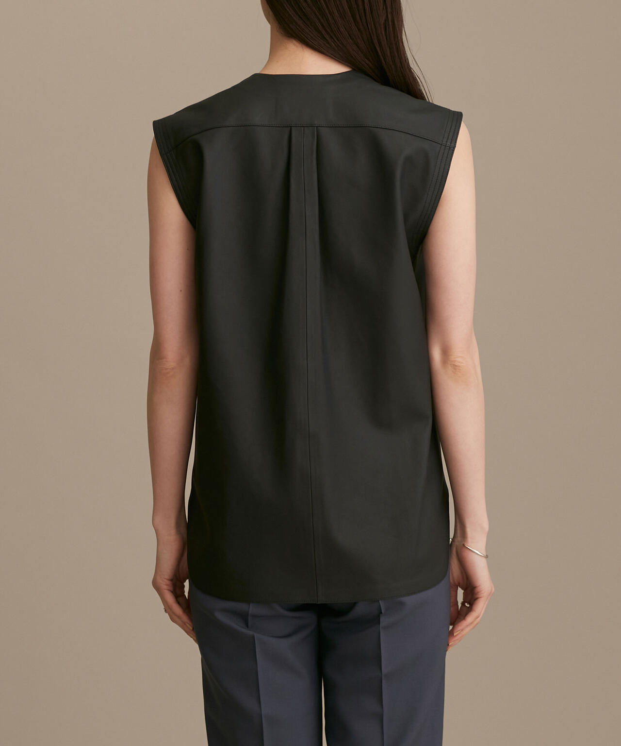 ・しなやかなラムレザーで仕立てたシンプルなジレ