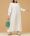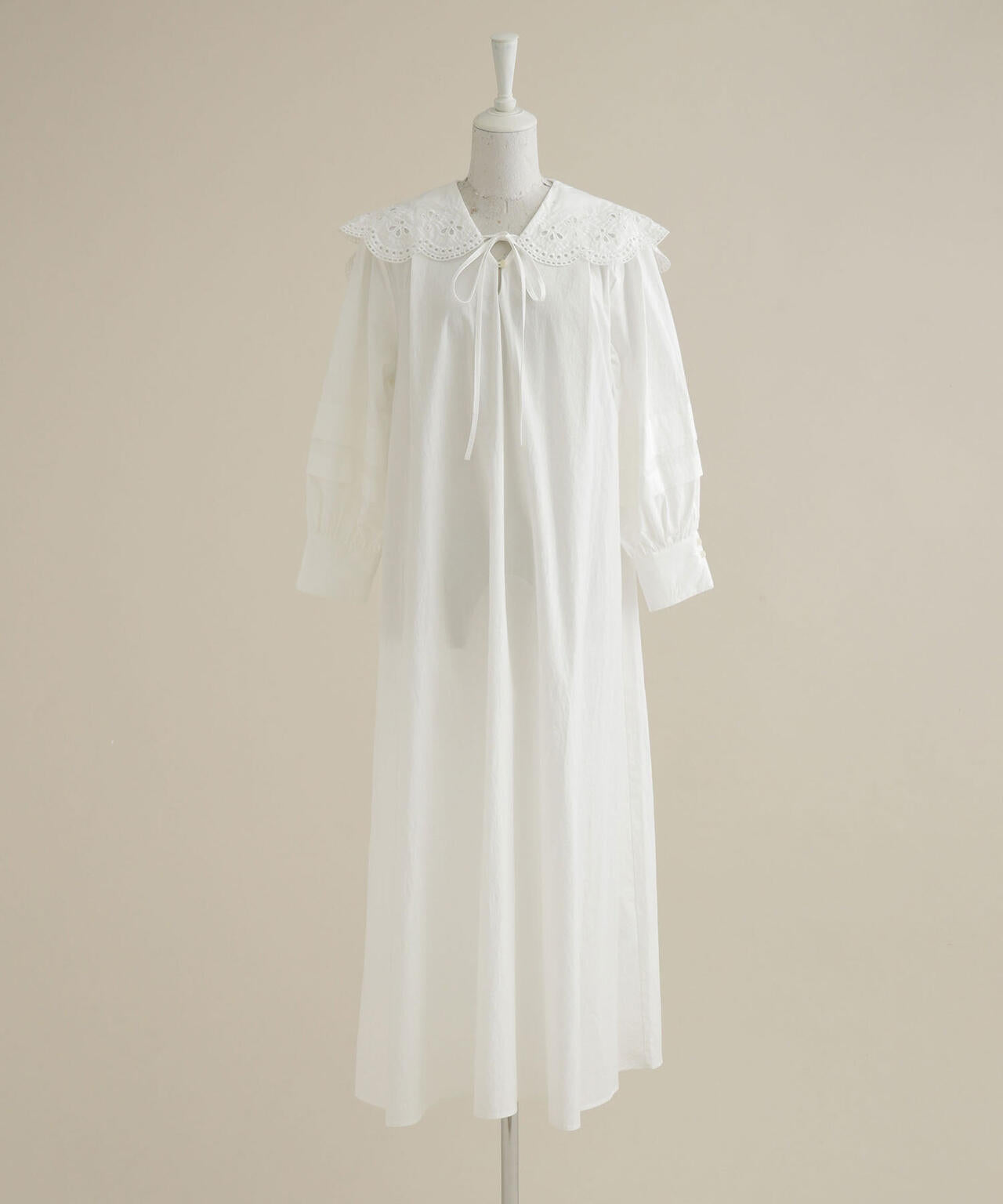 ・アイレット刺繍が衿にあしらわれた上品なワンピース