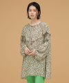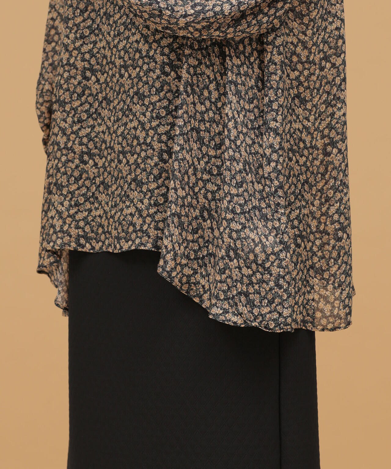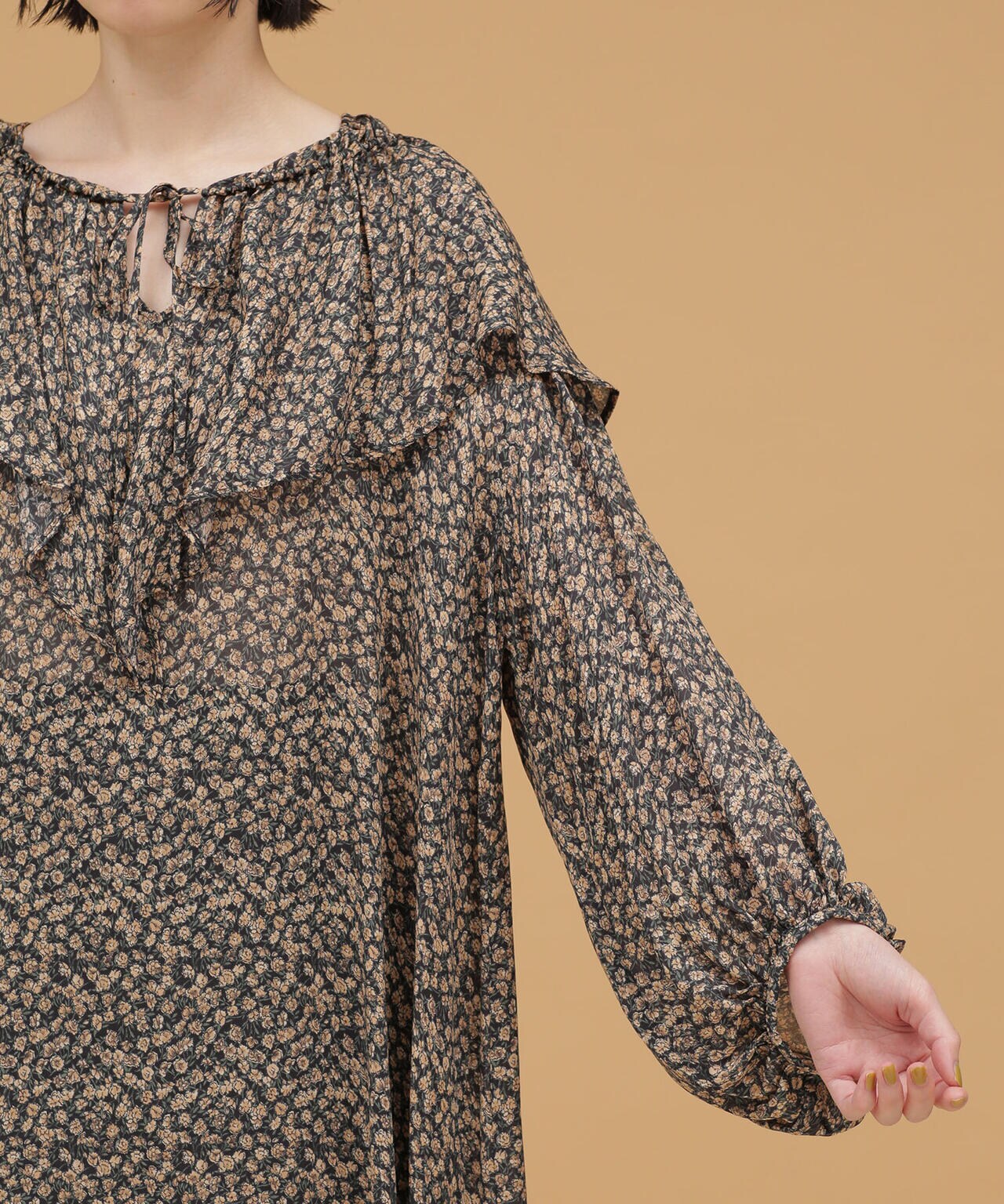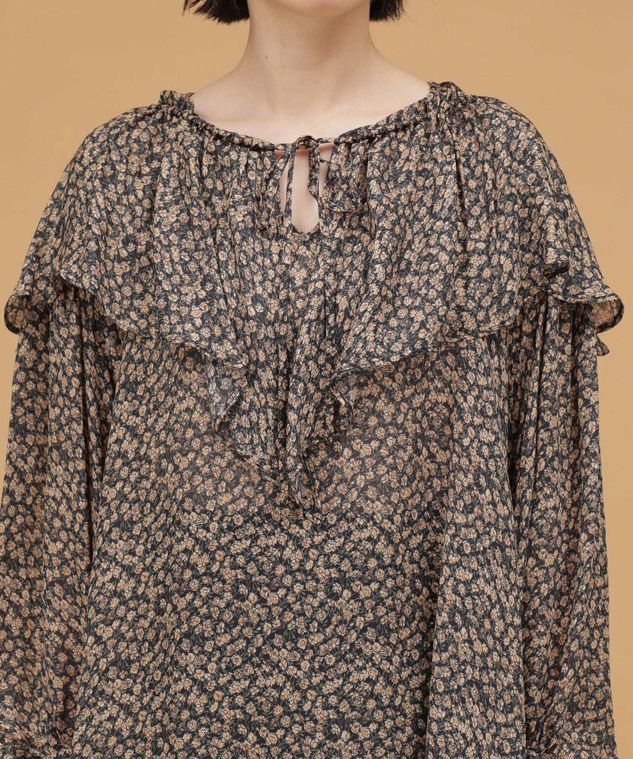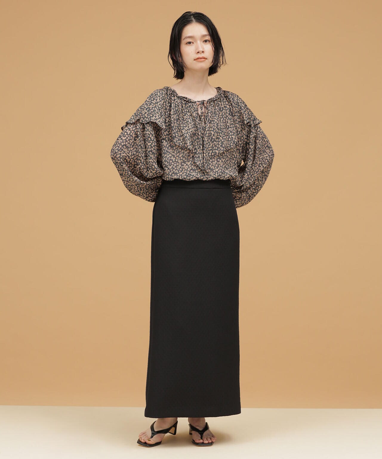 大きな襟のようなラッフルデザインが印象的なブラウス。ふんわりとしたパフスリーブや、エアリーなAラインシルエットが女性らしさを加速します。ニットカーディガンなどを羽織って、襟を出すレイヤードスタイルもおすすめです。