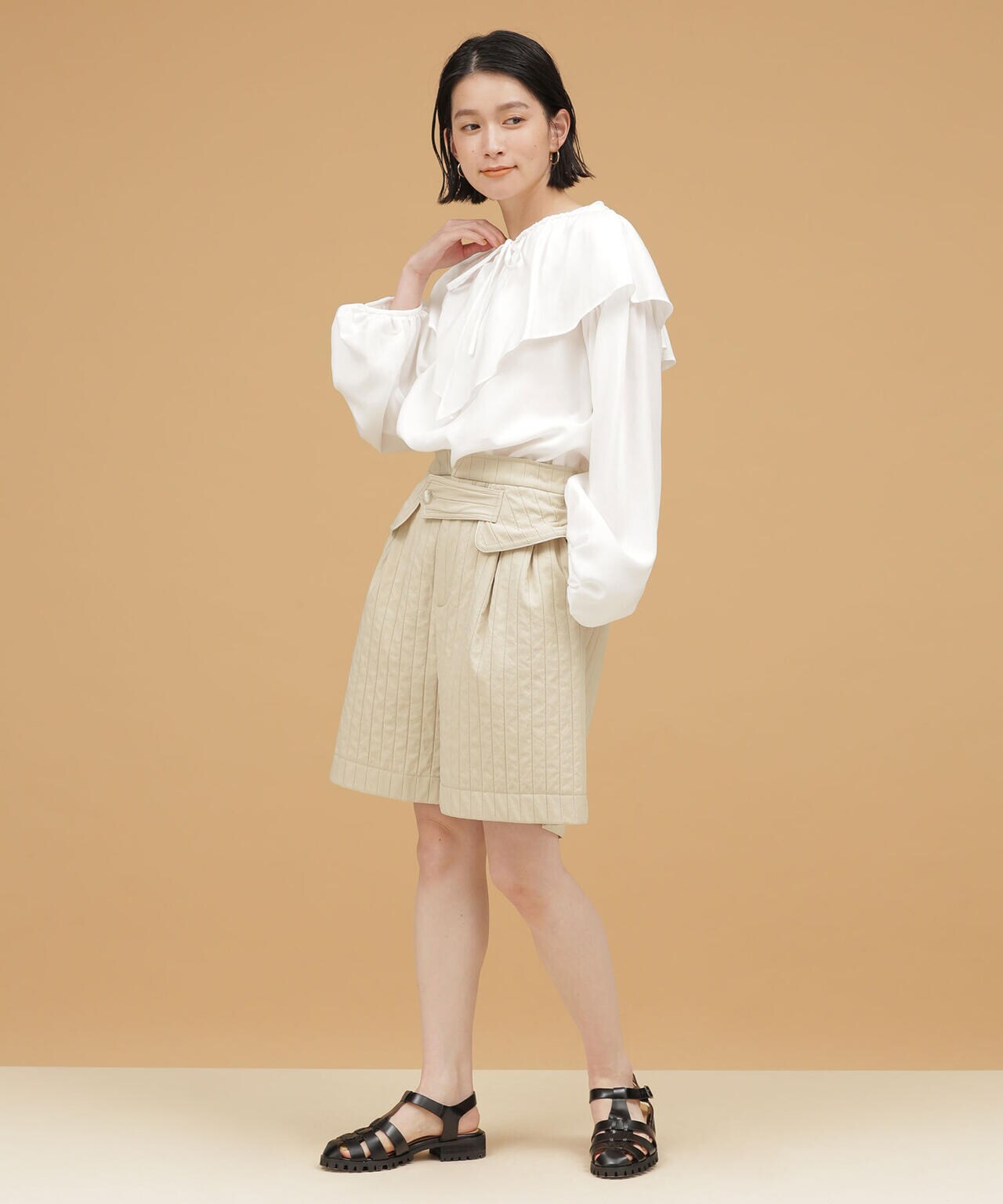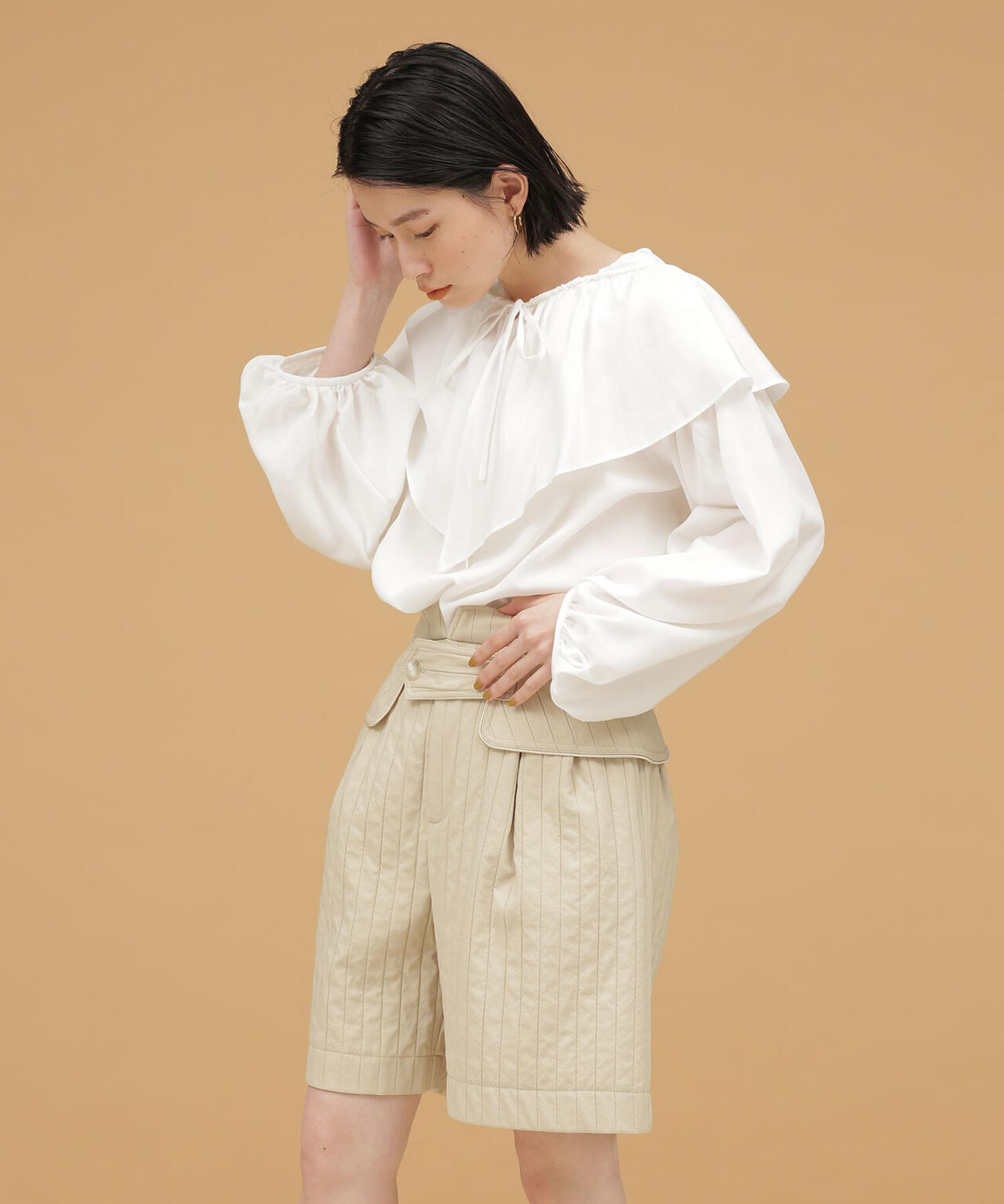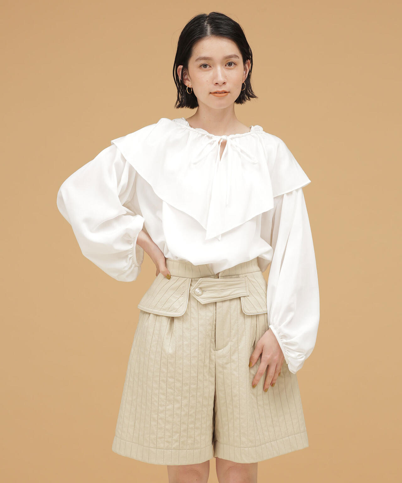 ・大きな襟のようなラッフルデザインが印象的なブラウス