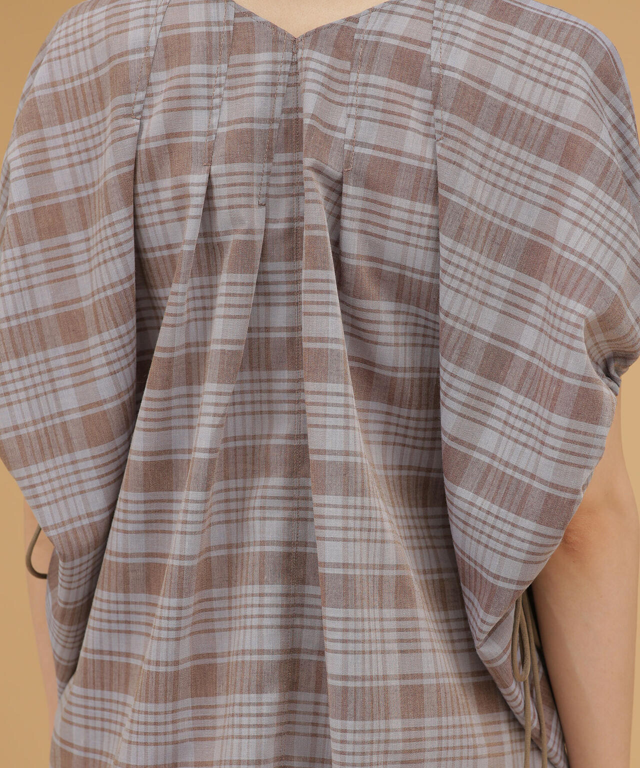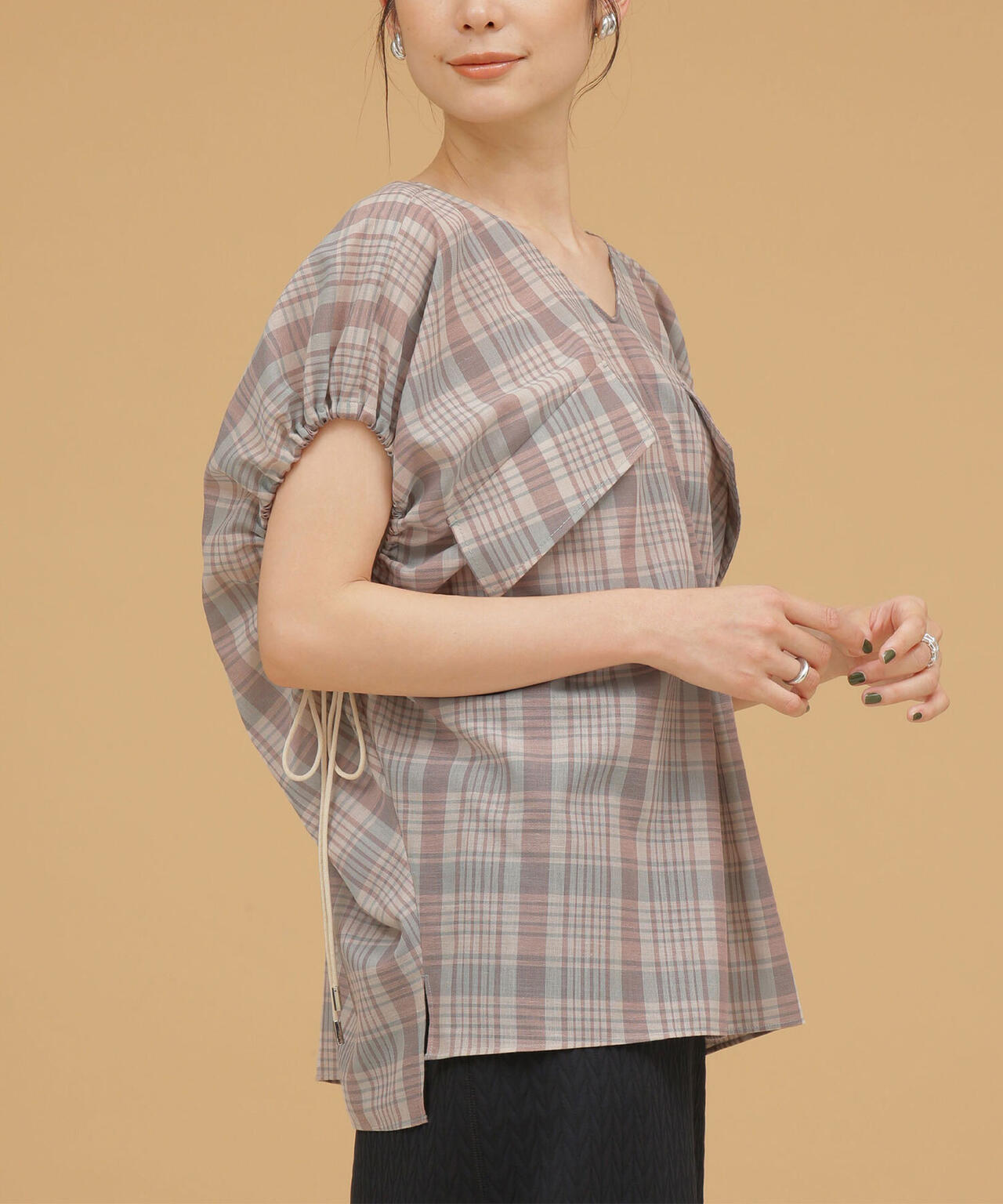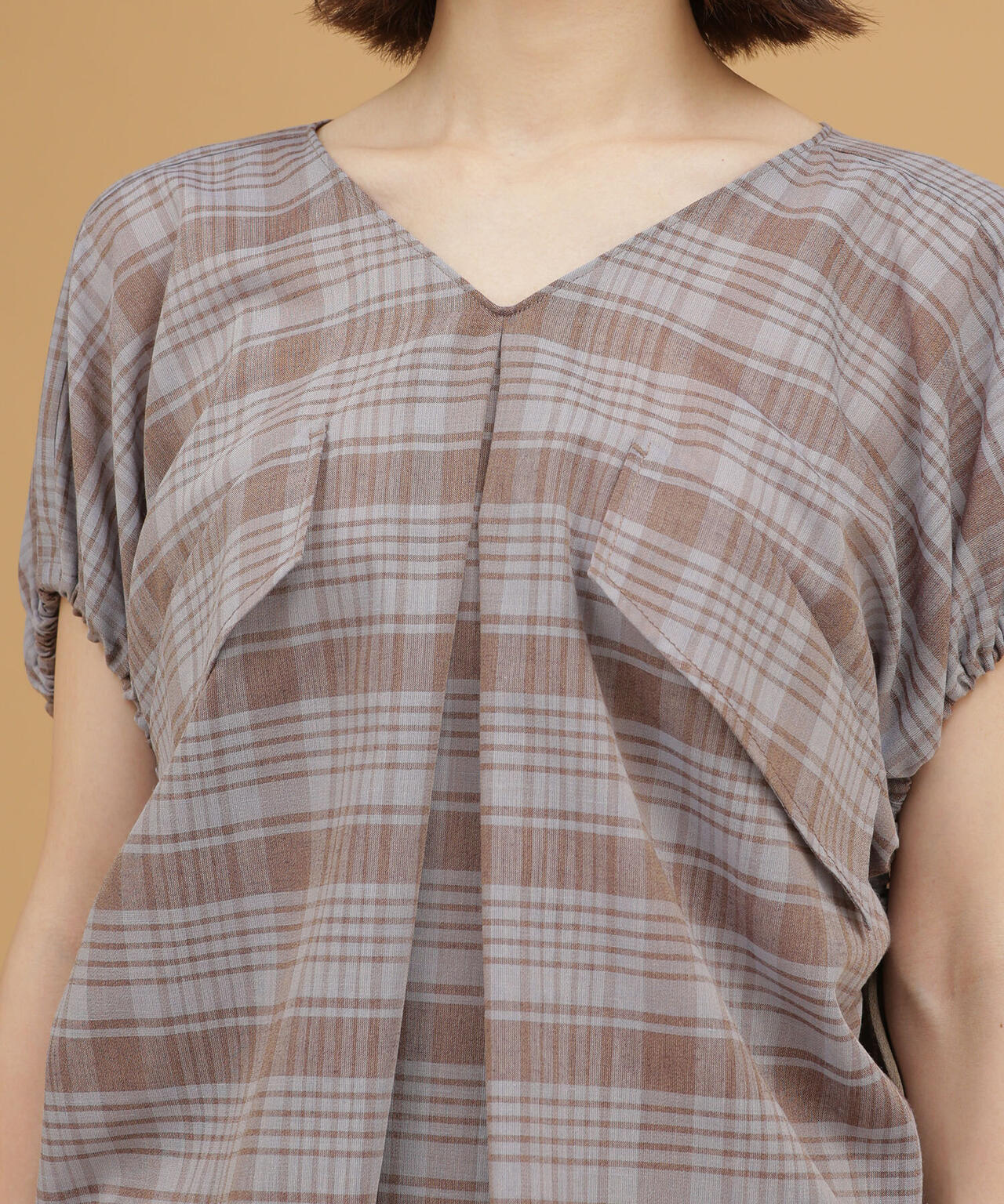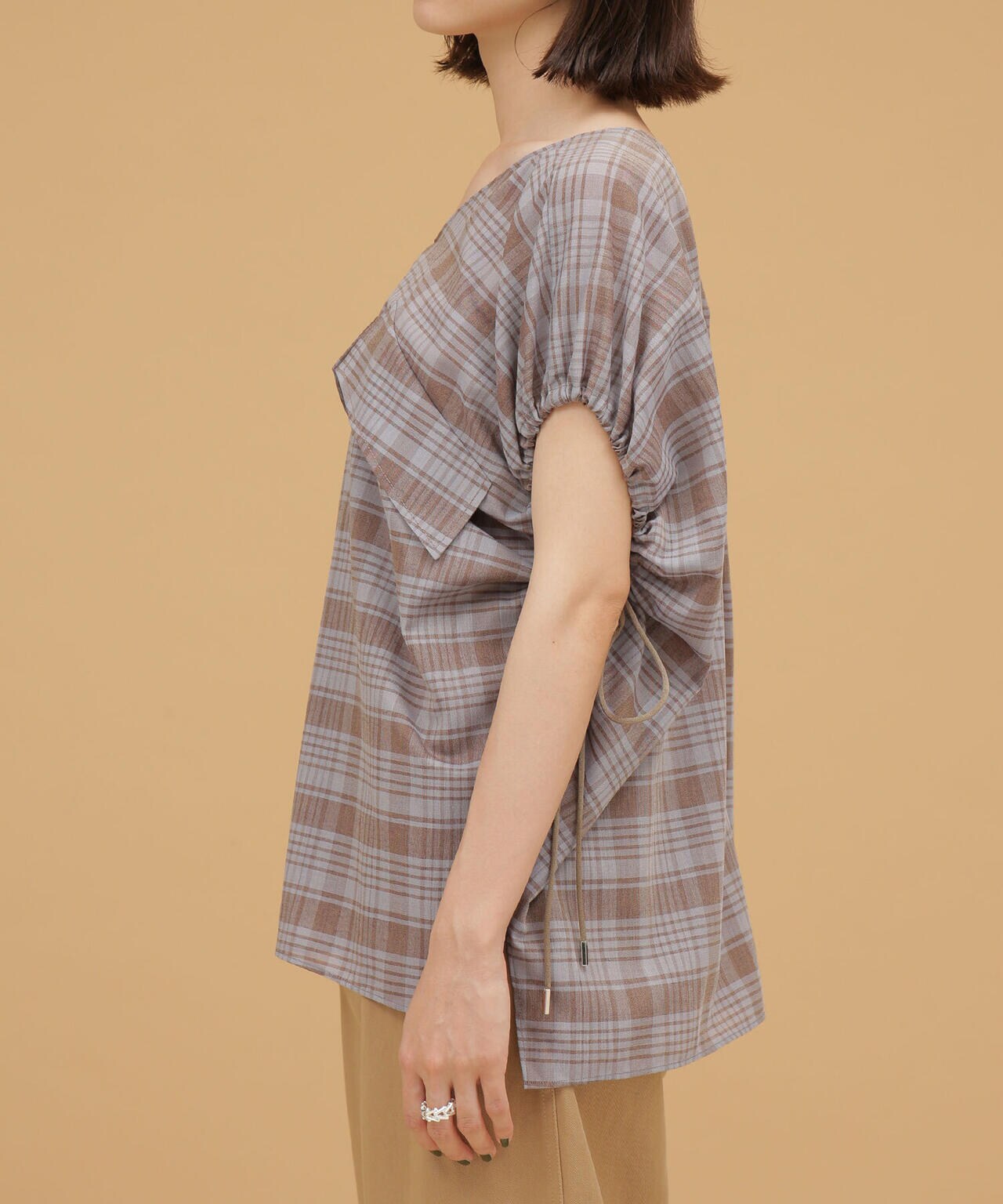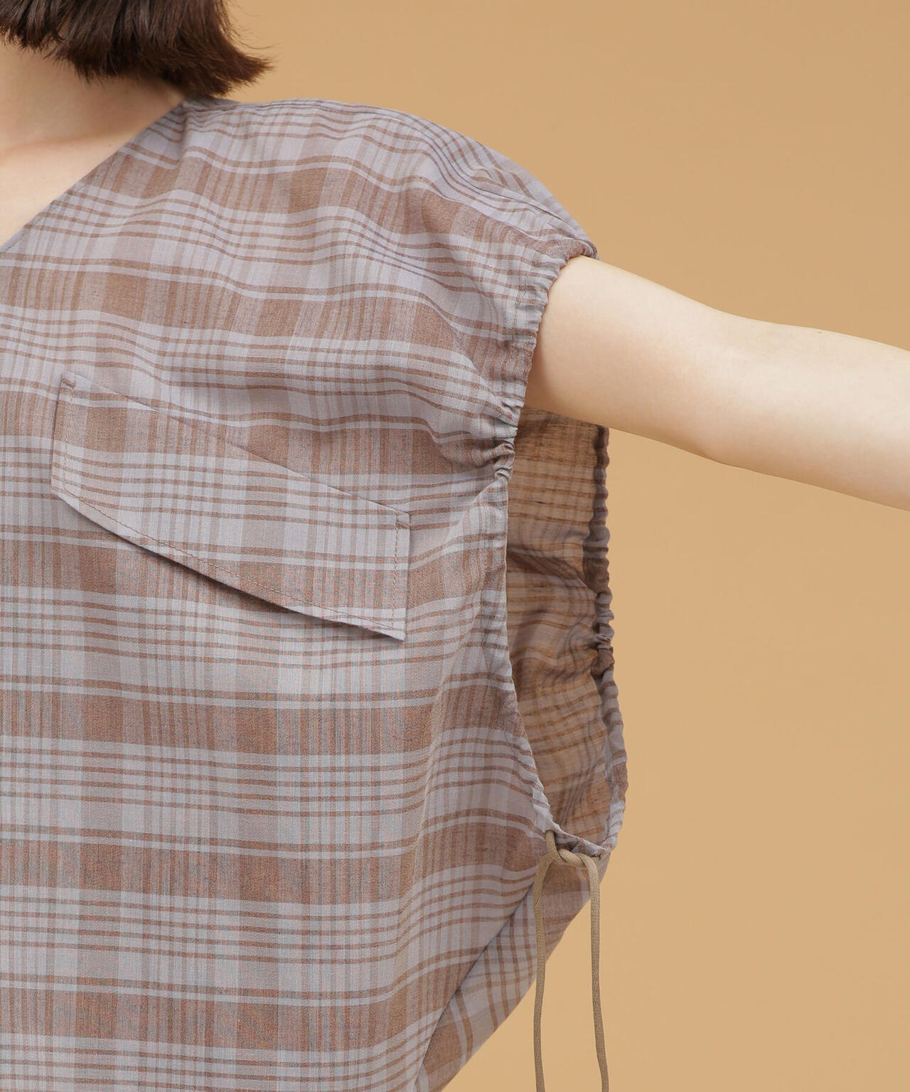 シャリ感のある涼し気な素材で仕立てたオーバーサイズのドルマントップス。女性らしい印象に仕上がるドロストスリーブやチェック柄が、1枚でサマになる主役級のデザイン。デニムはもちろんキレイめなボトムスとも相性が良く、デイリーで活躍するアイテムです。