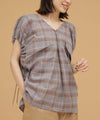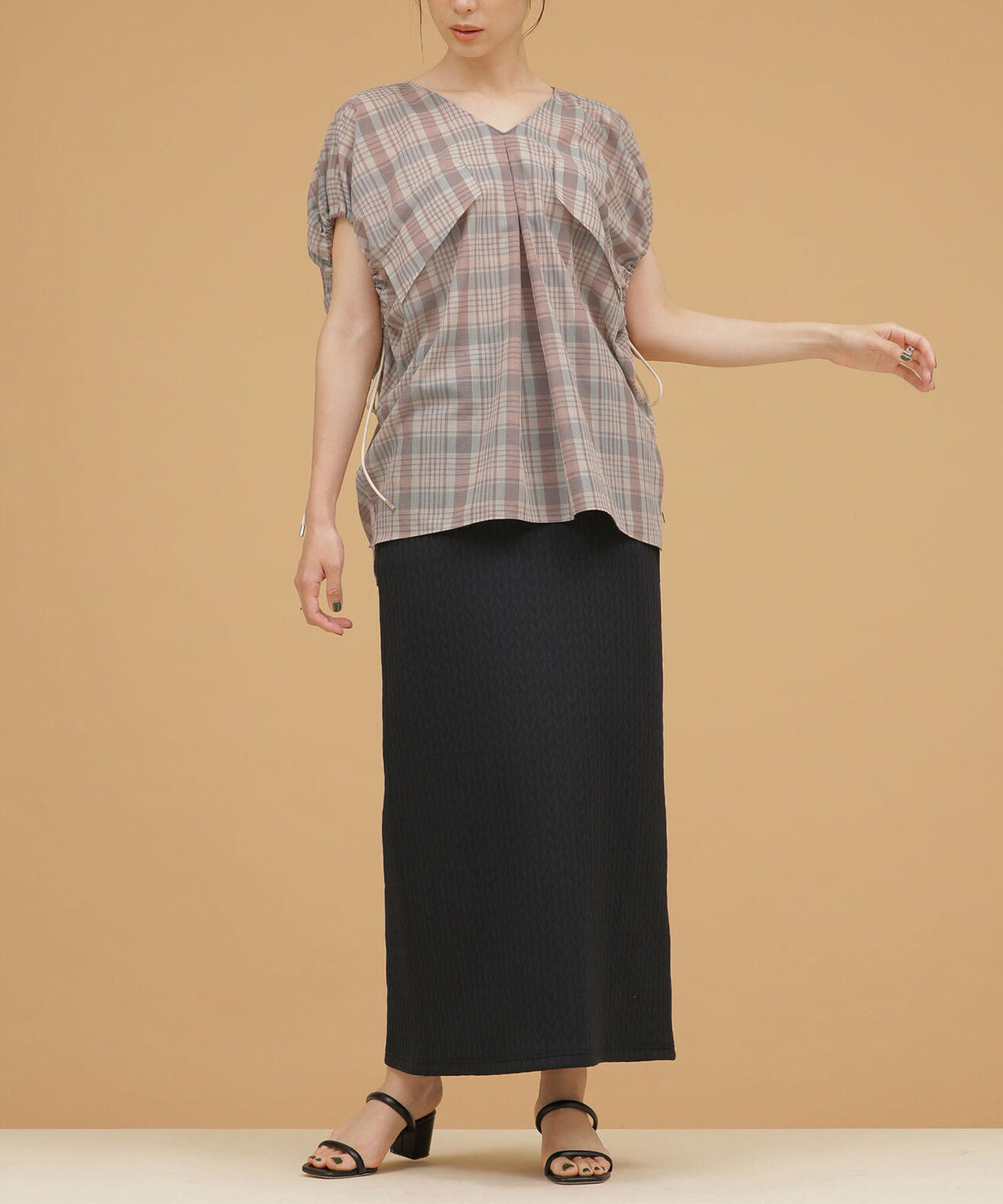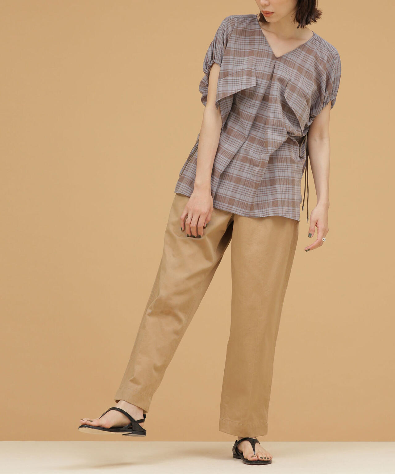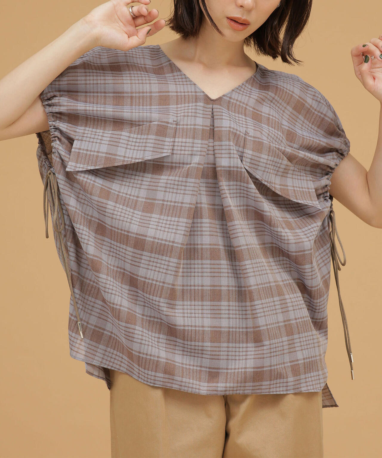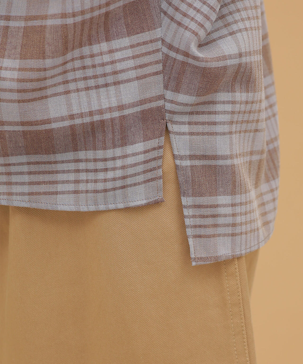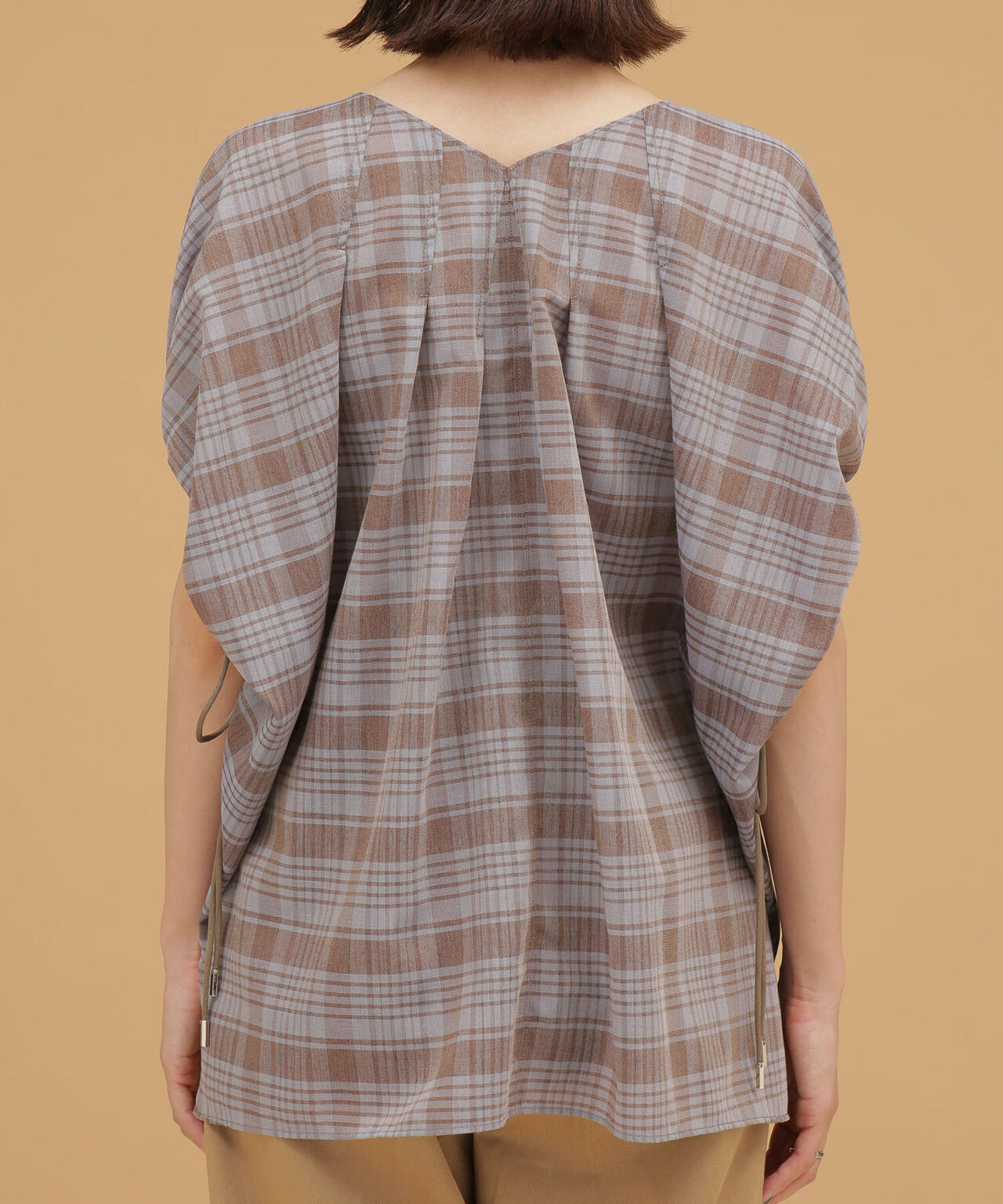 シャリ感のある涼し気な素材で仕立てたオーバーサイズのドルマントップス。女性らしい印象に仕上がるドロストスリーブやチェック柄が、1枚でサマになる主役級のデザイン。デニムはもちろんキレイめなボトムスとも相性が良く、デイリーで活躍するアイテムです。