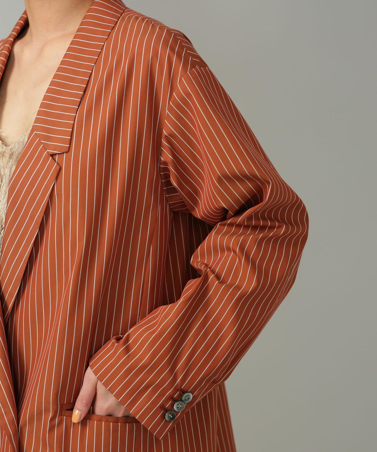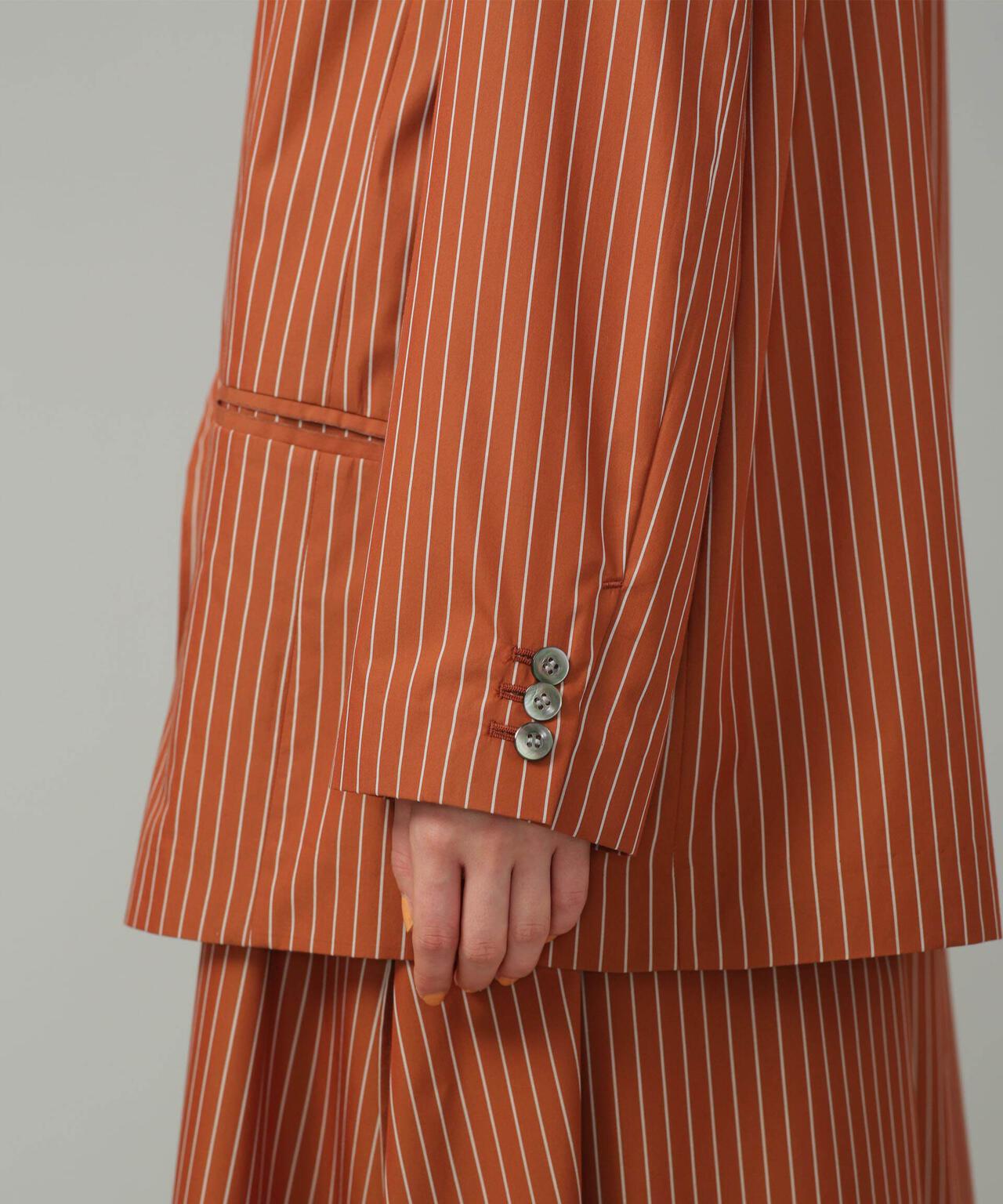 シワになりにくい素材感も魅力。ラペルの刻みと釦位置を下めに設定したバランスが新鮮で、都会的な洗練コーデにはもちろん、カジュアルにも着回せる万能アイテムです。