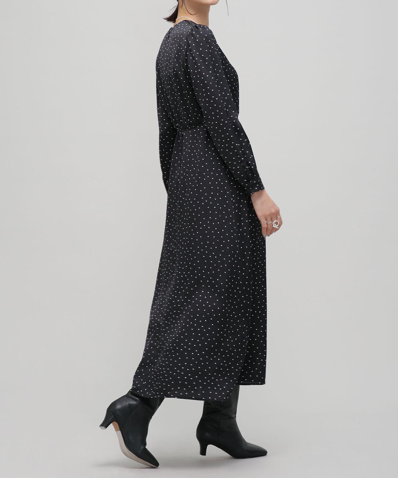 ・ランダムに散ったドット柄がニュアンス感のある見え方
