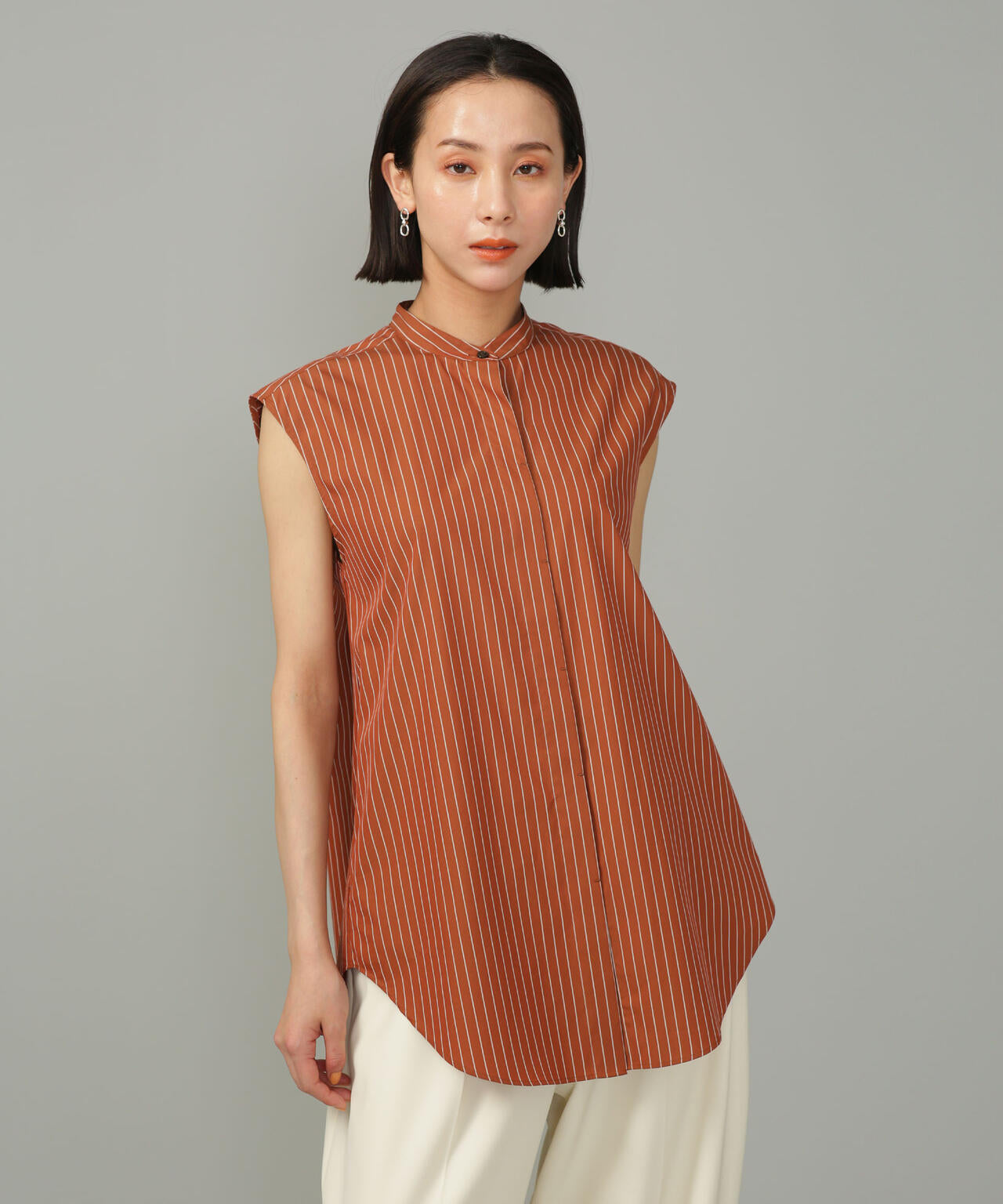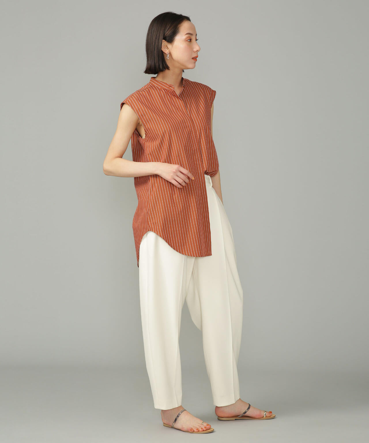 ロング丈のフレンチスリーブシャツ。後姿の魅力をアップしてくれるバックコンシャスデザインで、抜け感を演出してくれるアイテム。背ヨークの脇にはタックも入っており、後ろに立体感をプラス。脇ポケットが付いているのもポイントで、サマーシーズンに活躍する1着です。