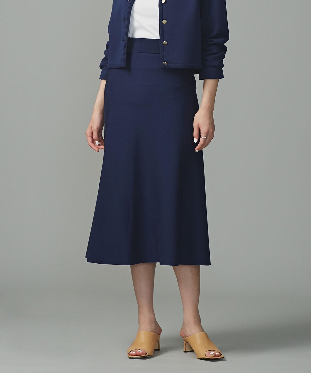 ・しなやかなフレアシルエットのラインが上品なニットスカート