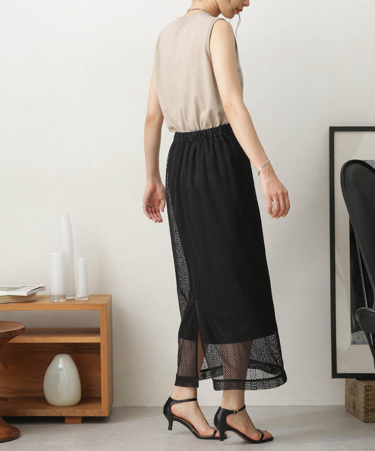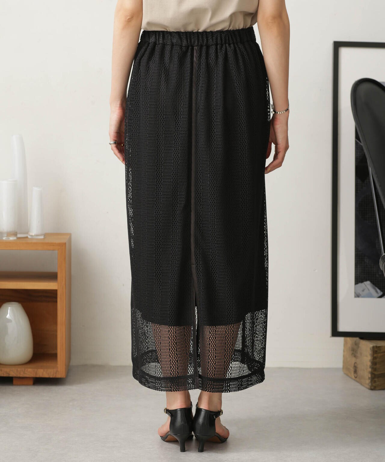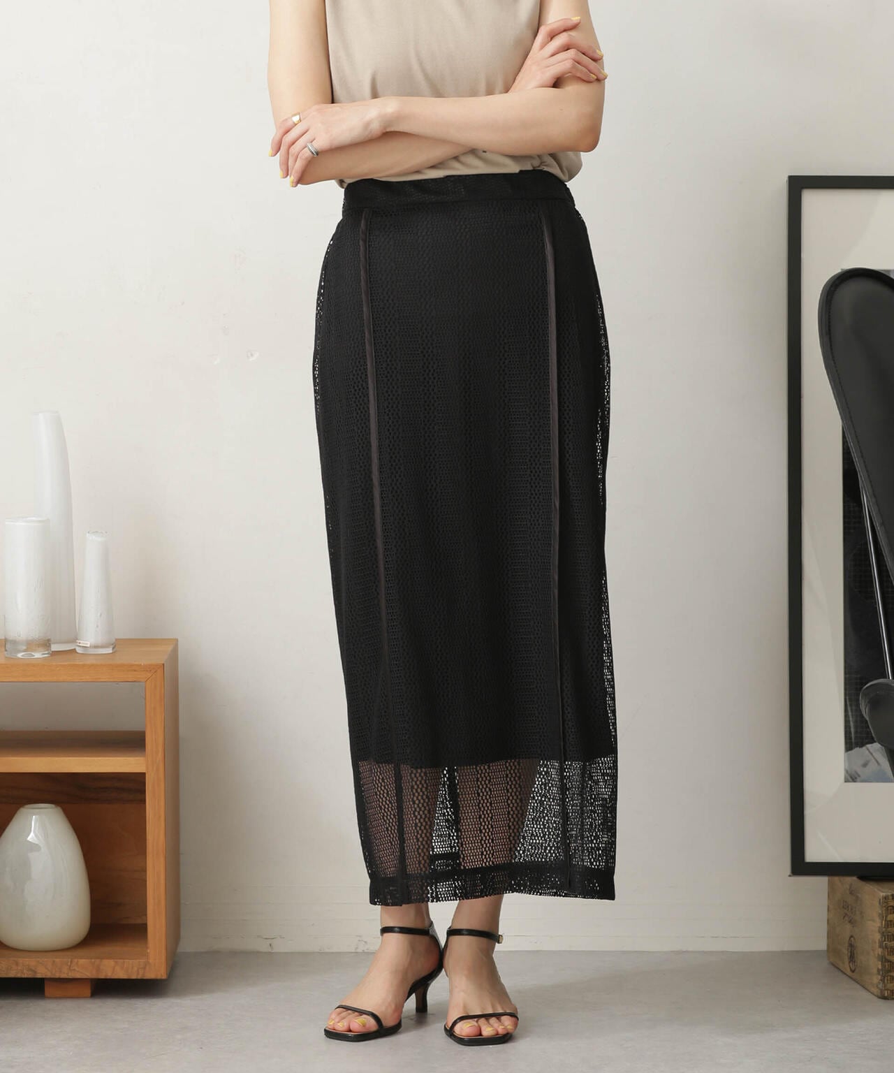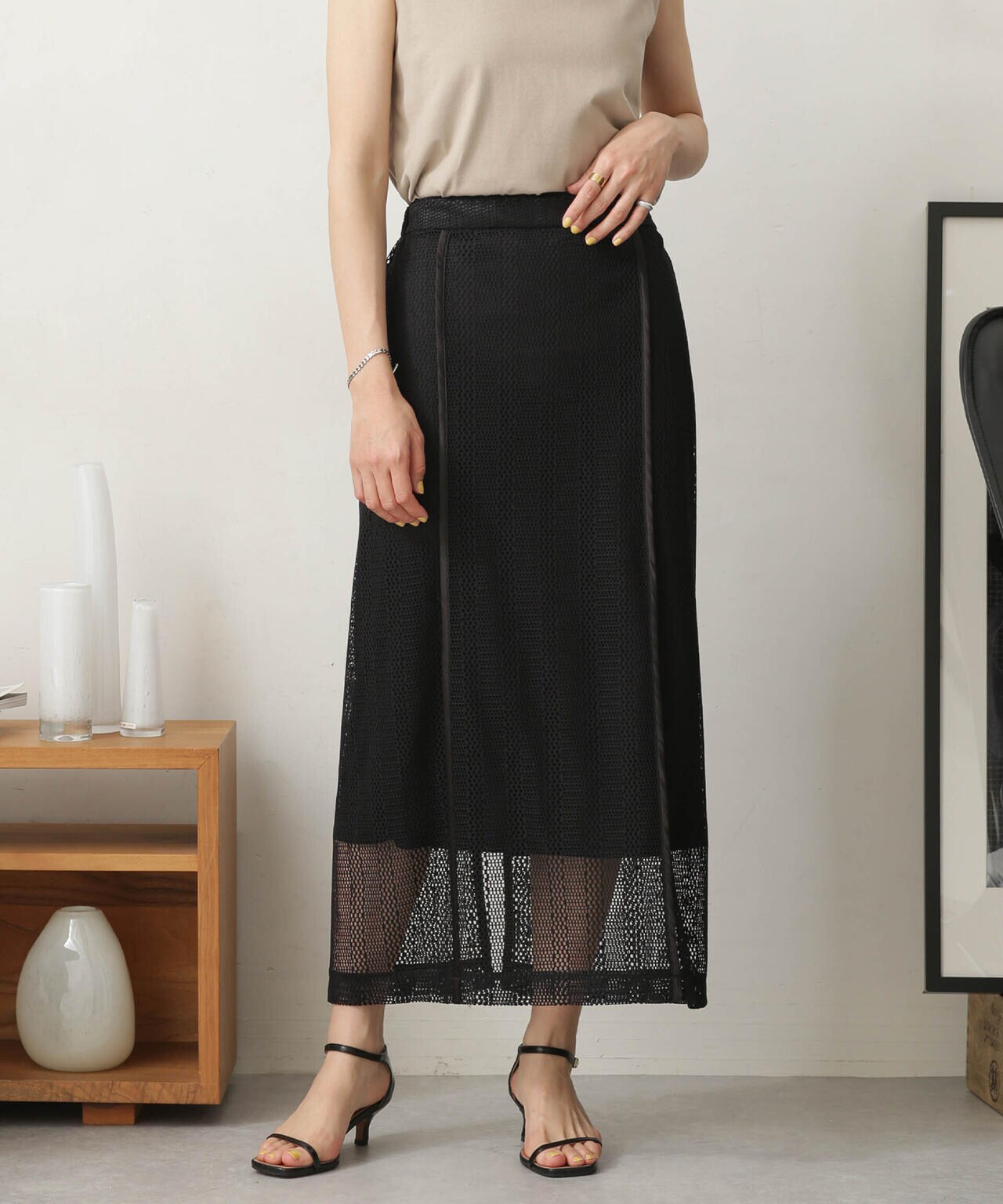 繊細なラッセルレースが品良く映えるIラインスカート。裏地をあえて短く控えたデザインが、素材を活かした裾のシアー感を演出。涼やかで女性らしく着映えするから、シンプルなトップスを合わせるだけで様になります。