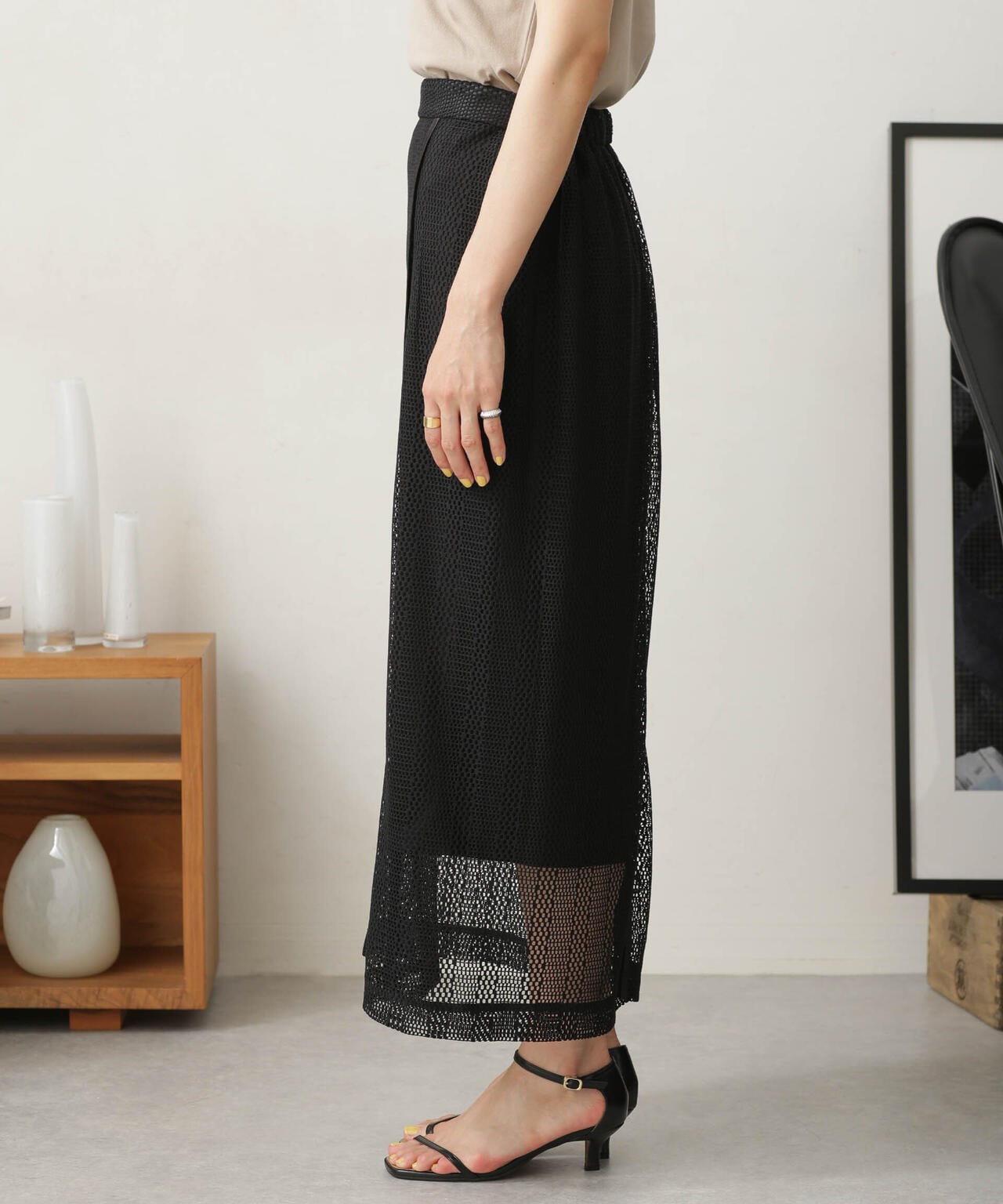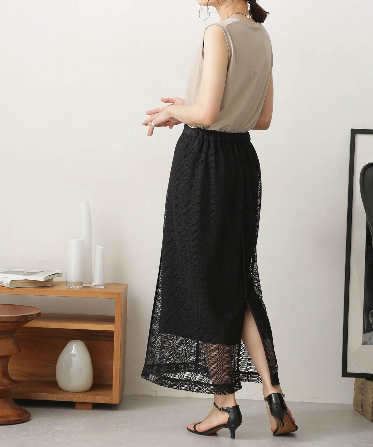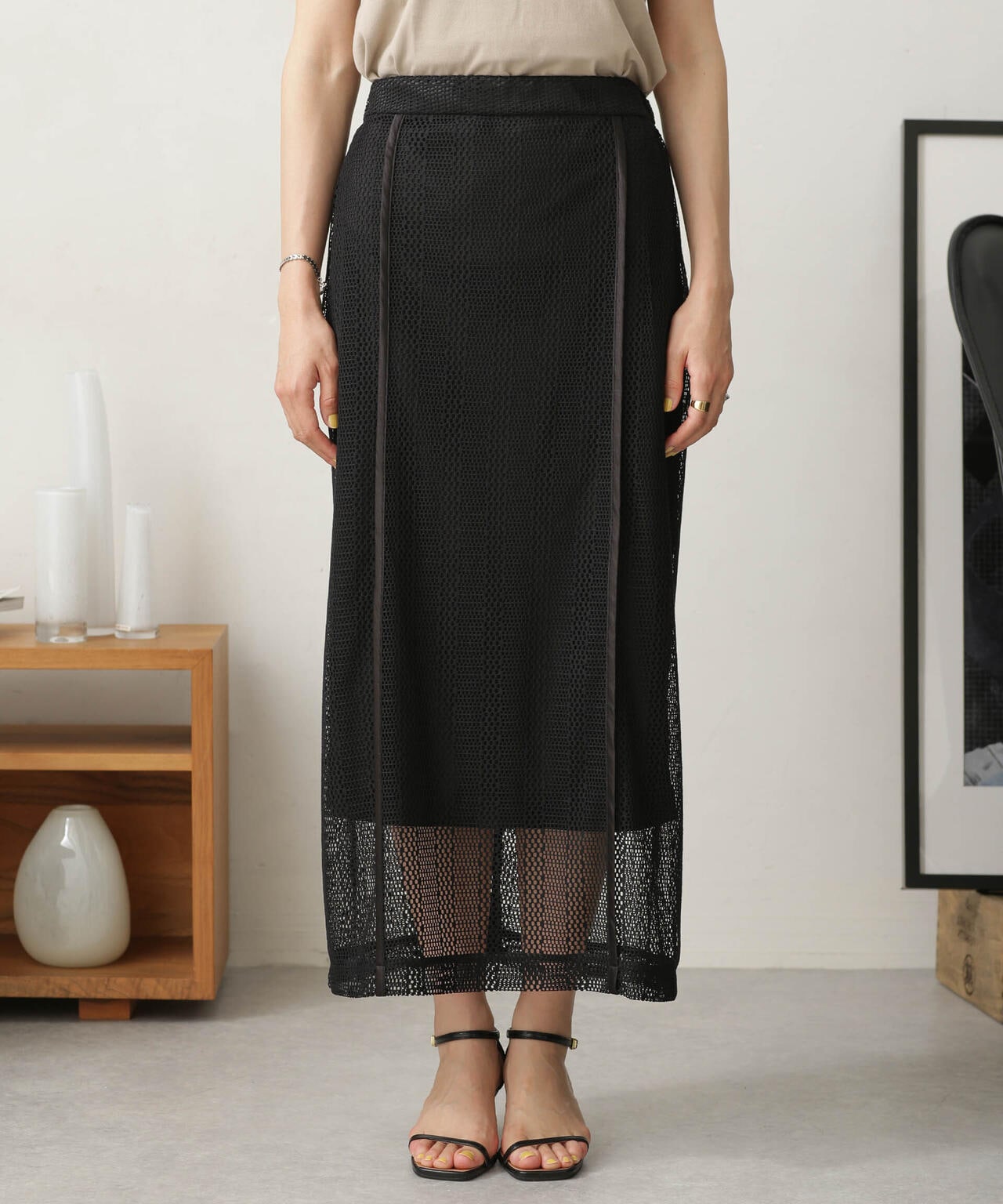 繊細なラッセルレースが品良く映えるIラインスカート。裏地をあえて短く控えたデザインが、素材を活かした裾のシアー感を演出。涼やかで女性らしく着映えするから、シンプルなトップスを合わせるだけで様になります。