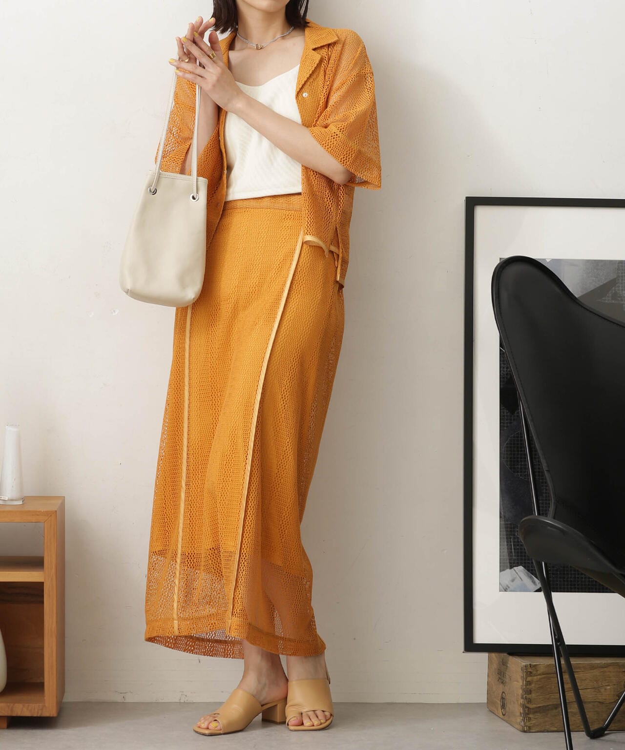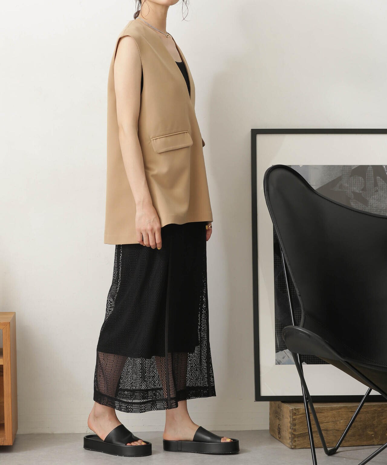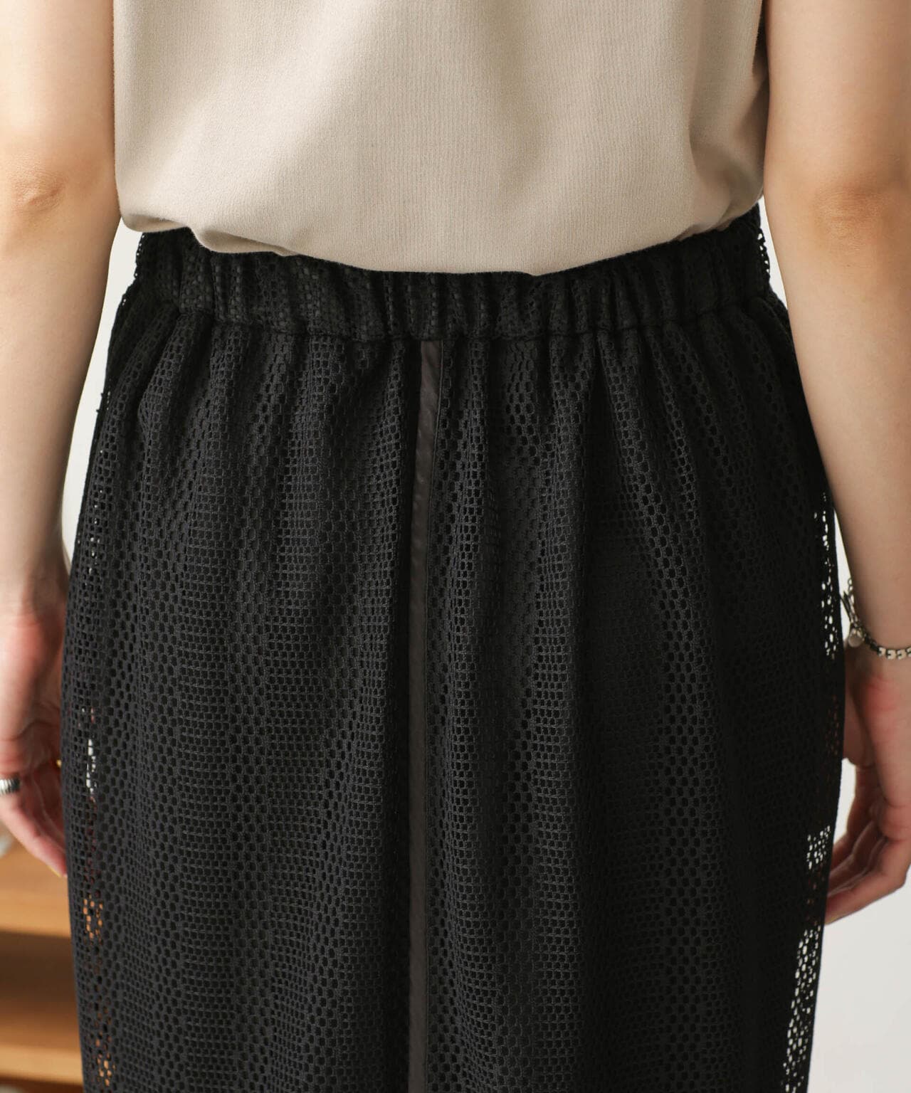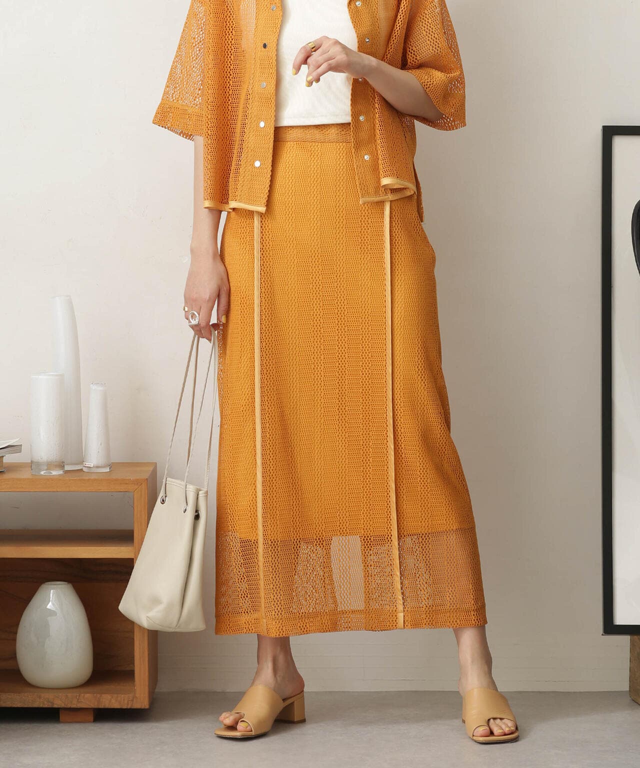繊細なラッセルレースが品良く映えるIラインスカート。裏地をあえて短く控えたデザインが、素材を活かした裾のシアー感を演出。涼やかで女性らしく着映えするから、シンプルなトップスを合わせるだけで様になります。