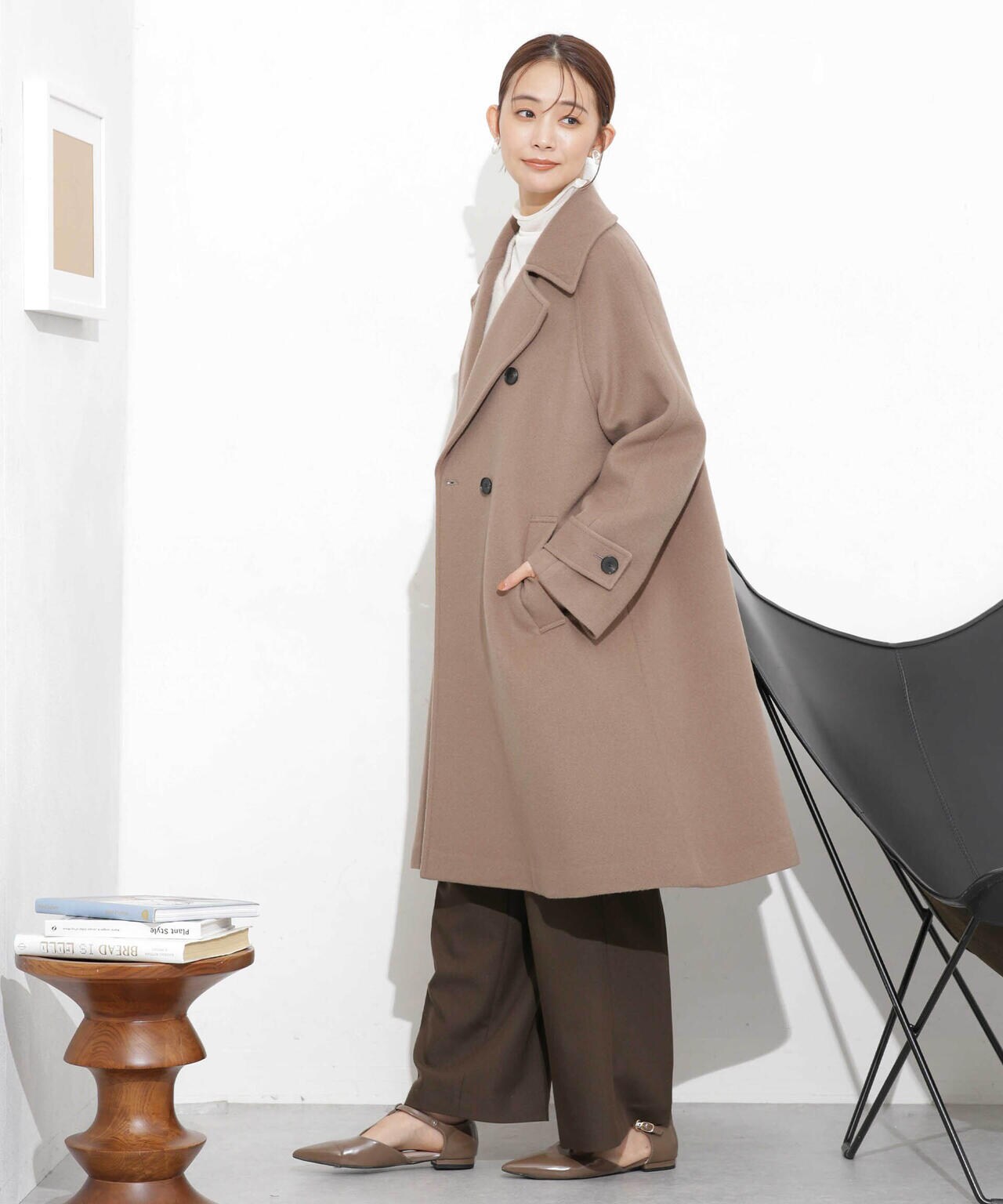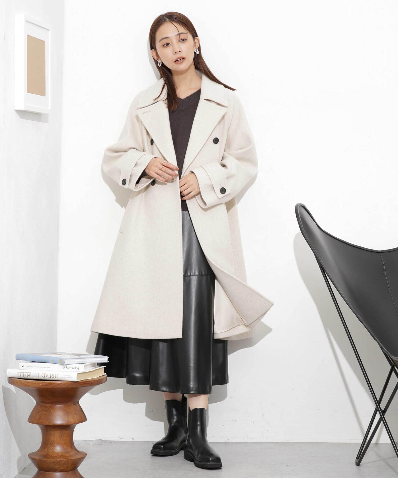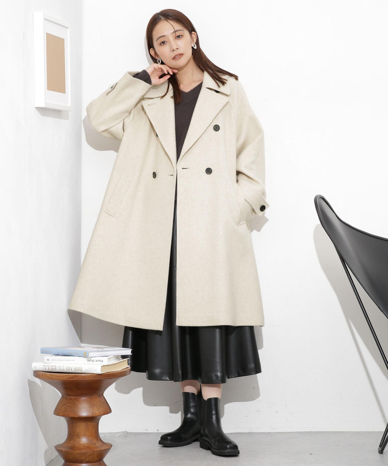 ・身頃から裾にかけて広がるシルエットが大人フェミニンなAラインコート