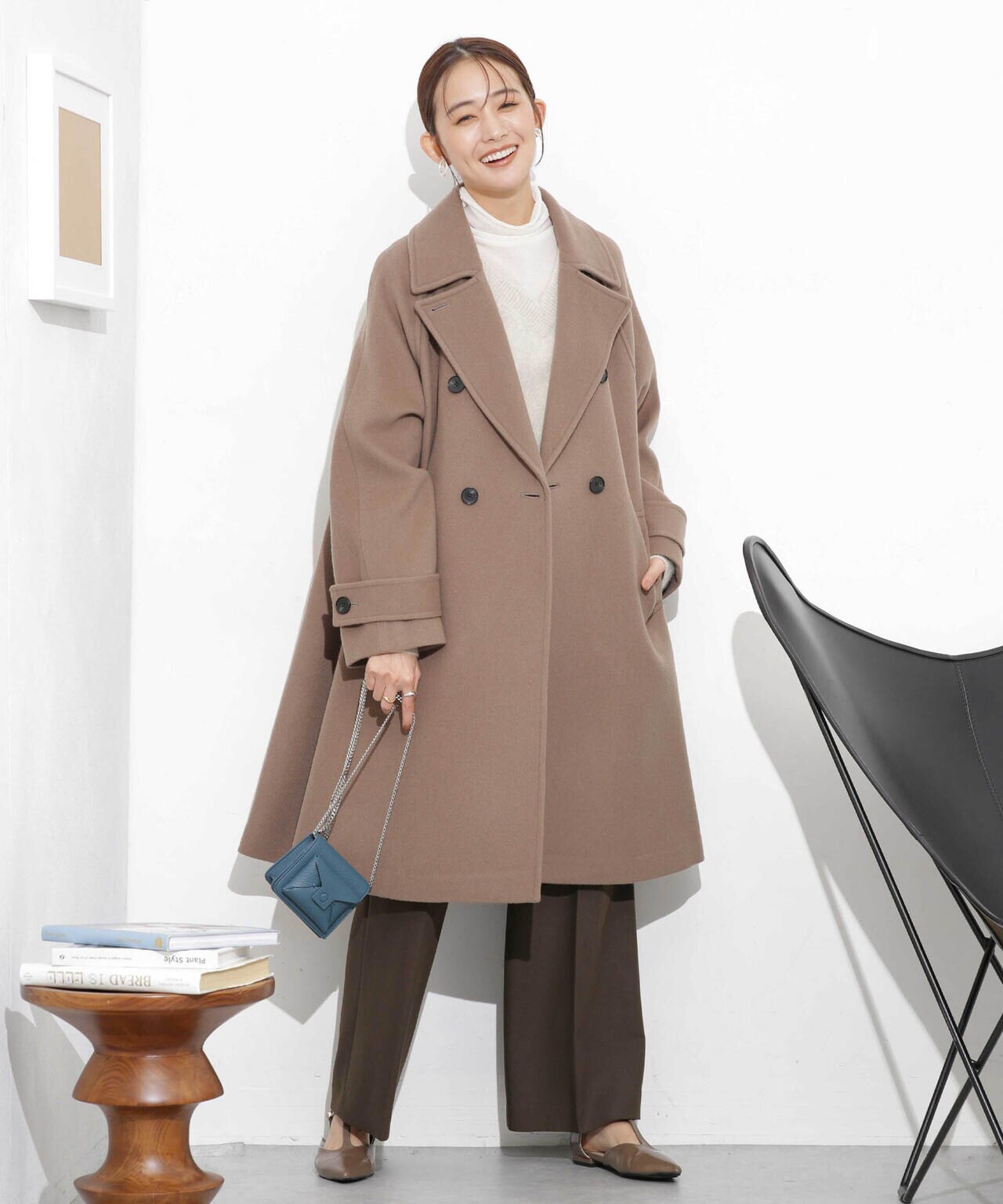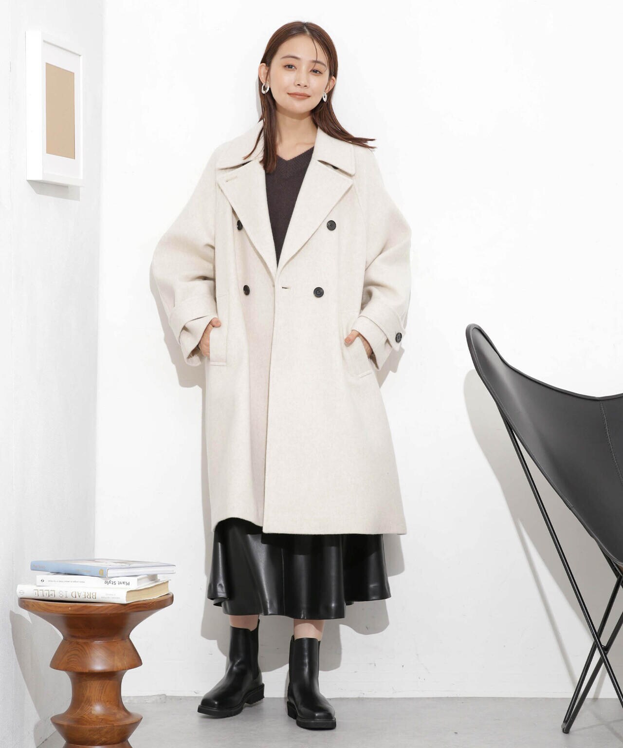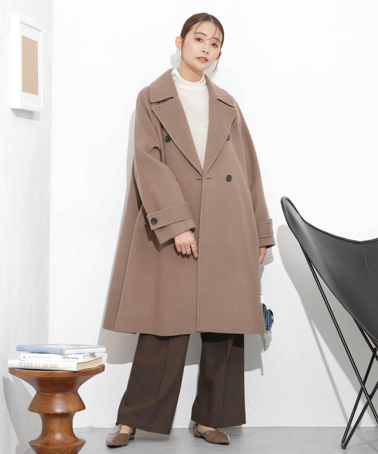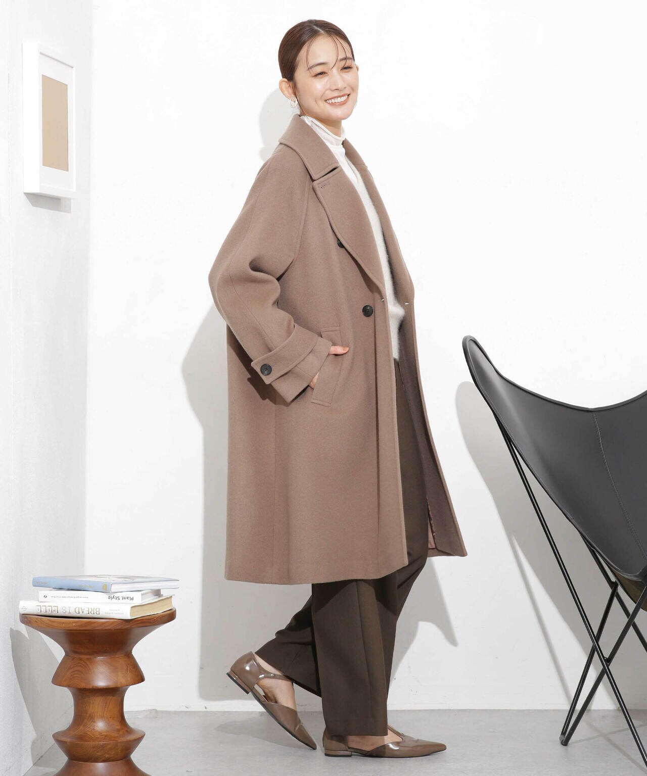 ・身頃から裾にかけて広がるシルエットが大人フェミニンなAラインコート