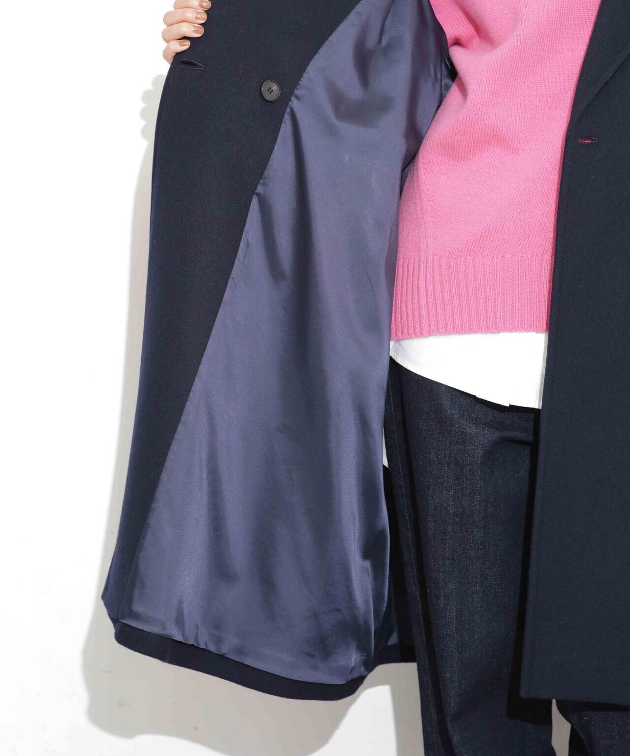 ・下襟のボタンを留めて着用もOK