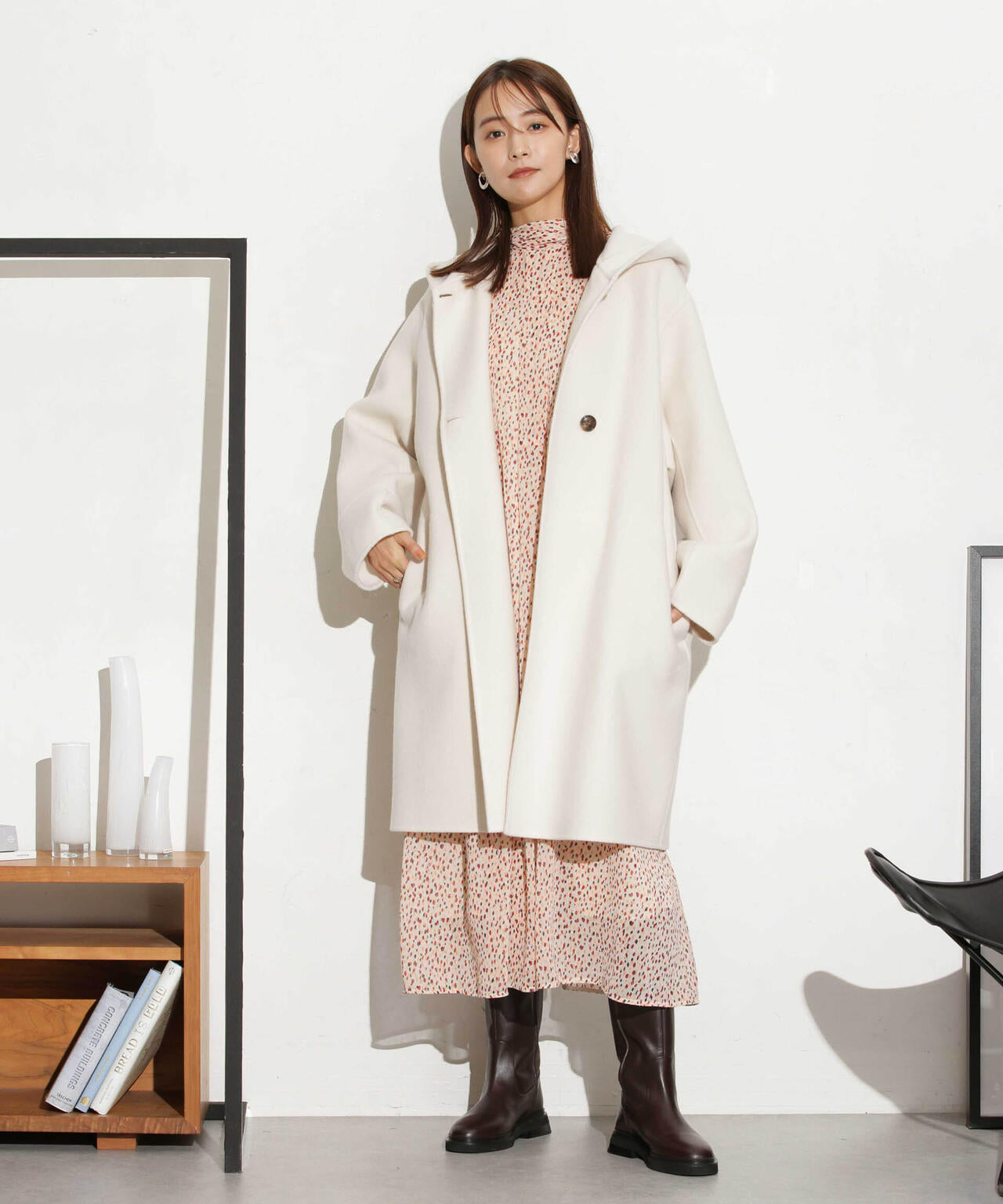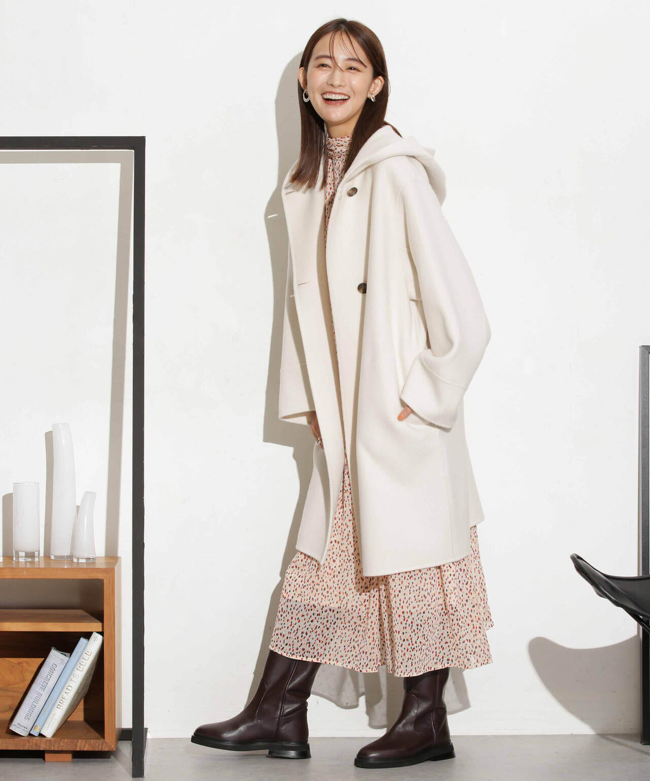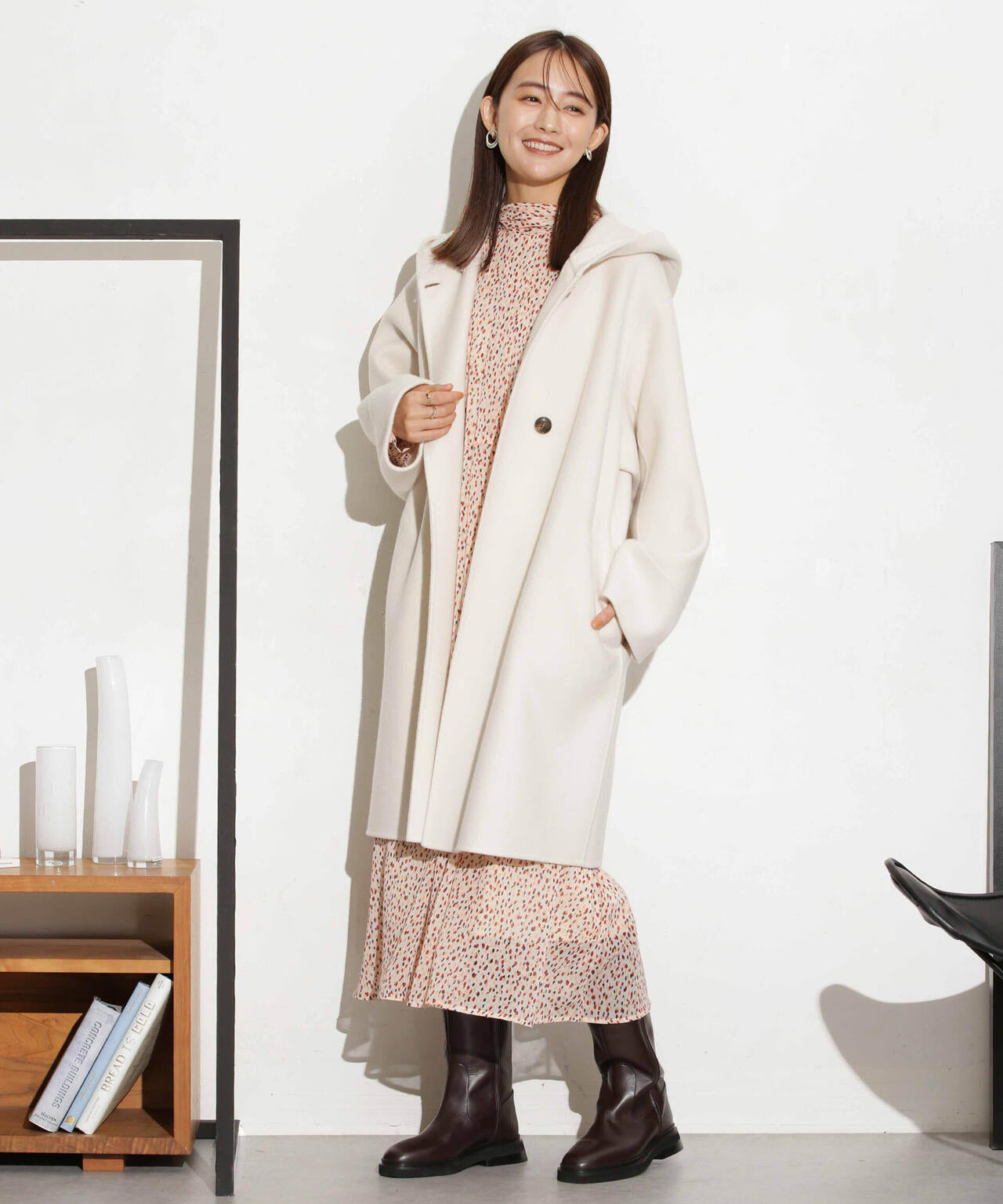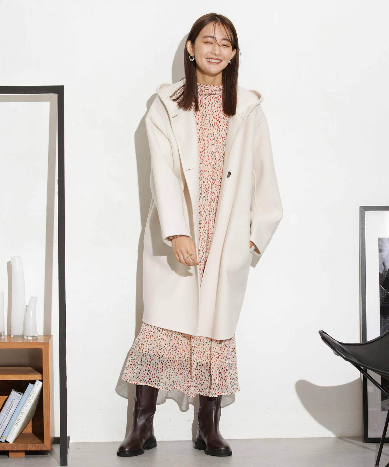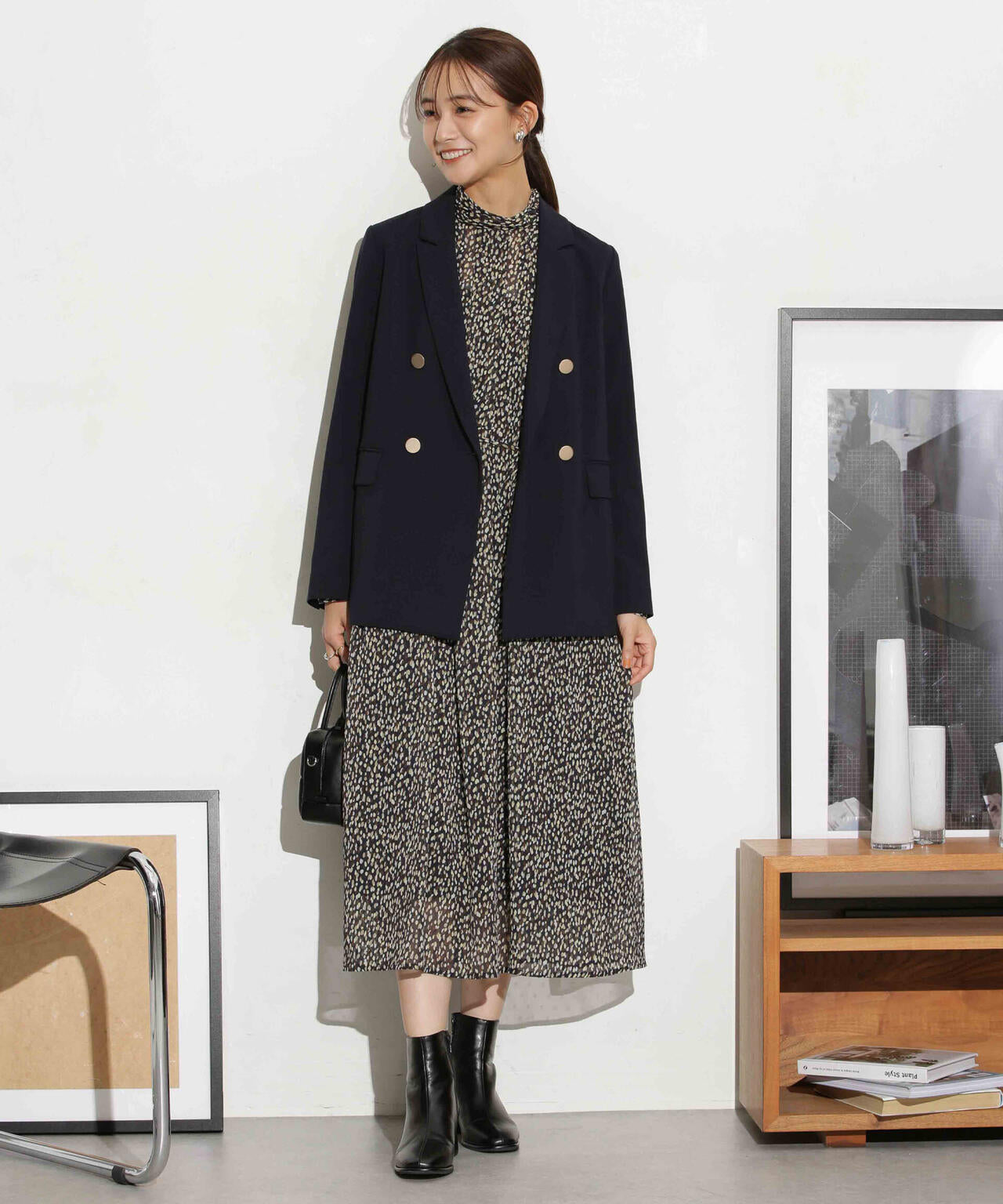 クラシック要素のある女性らしい柔らかな印象のプリントワンピース。身頃は襟元からタックできれいに広がるシルエットでハイネックがくたっと落ちたような衿がポイント。ウエストリボンで結ぶキレイめな着方やリボンを外してデニムなどのカジュアルなボトムとレイヤードコーデも◎。一枚着はもちろん、シアー感のあるワンピースにジャケットやニットカーデなどの冬らしい素材と合わせるスタイリングが今年のオススメです。