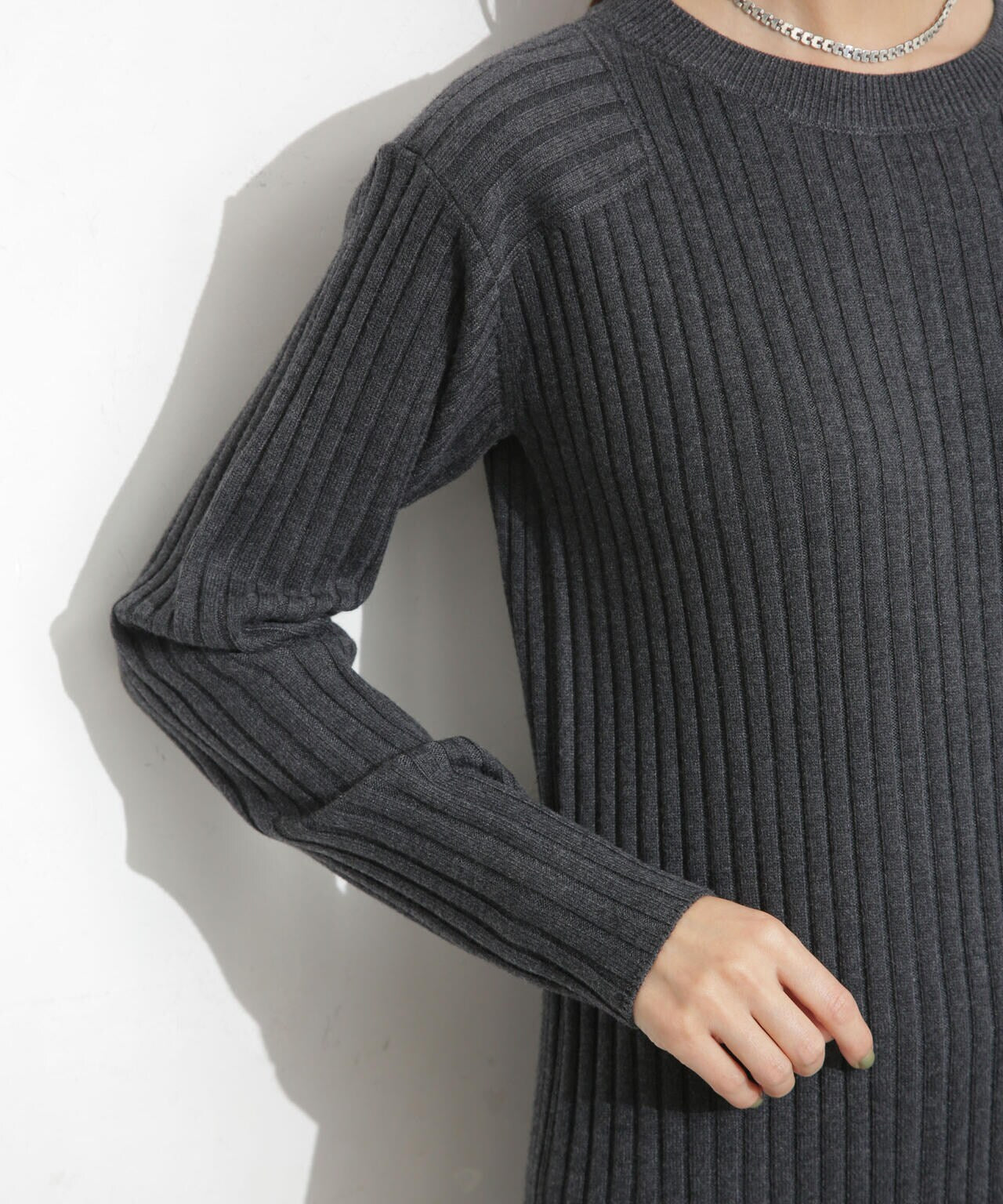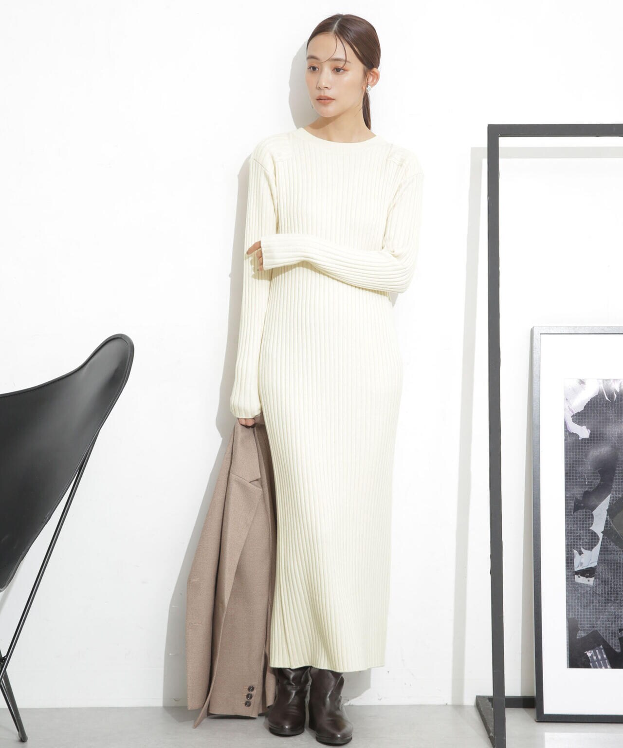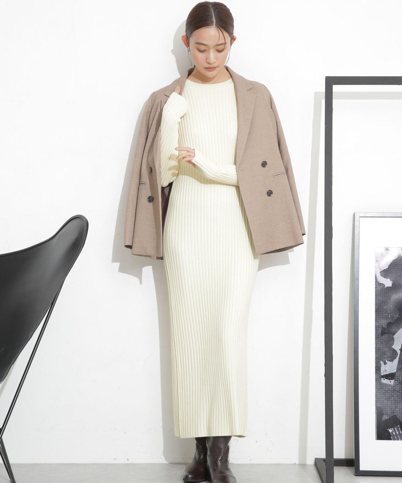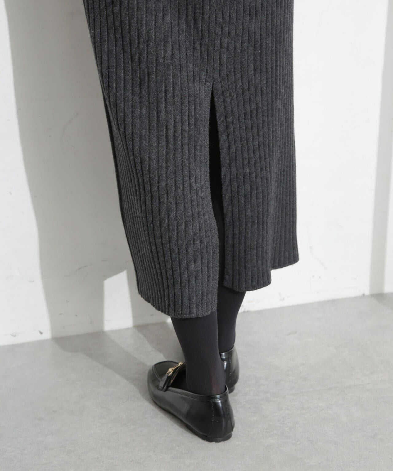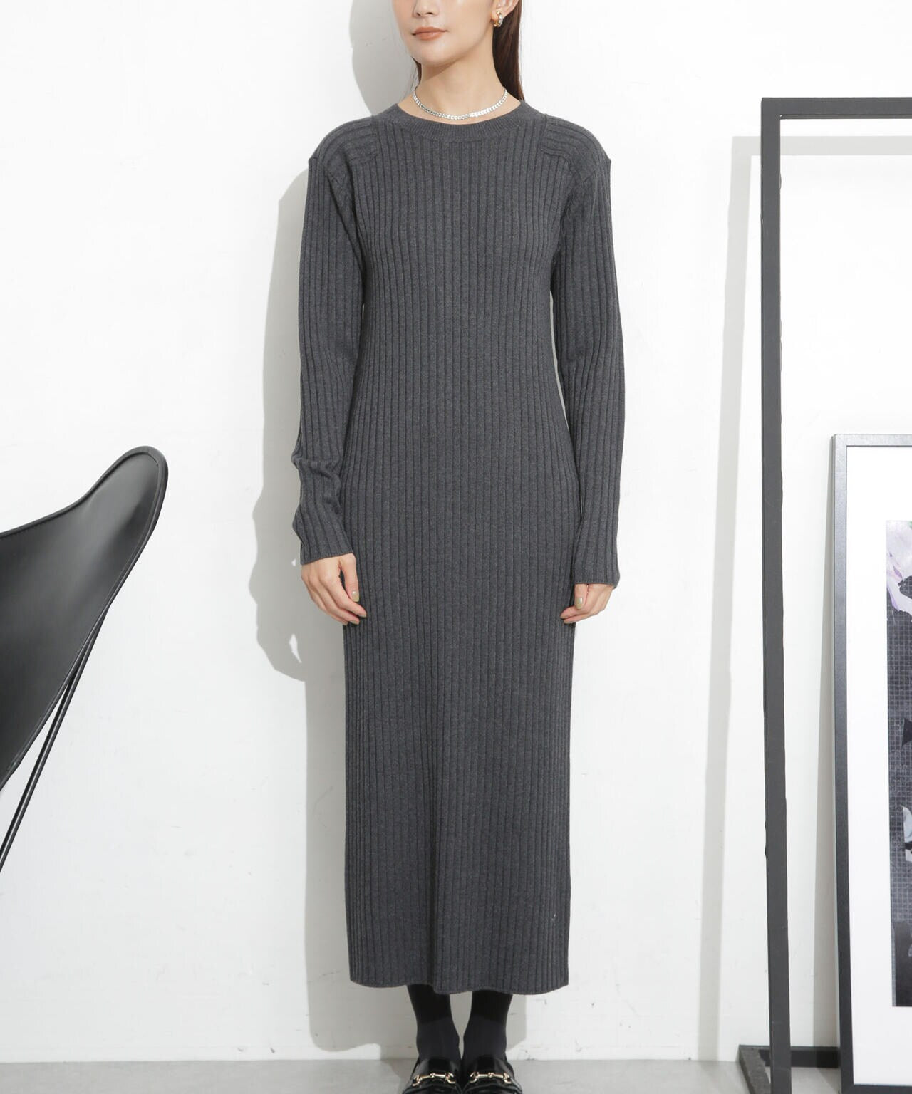 ・すっきりとしたIラインシルエットが大人っぽくトレンド見えするリブワンピース