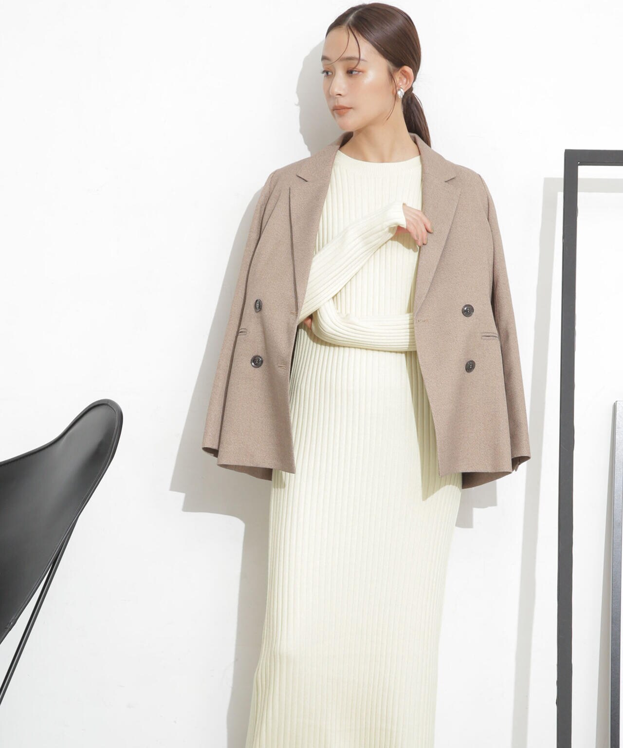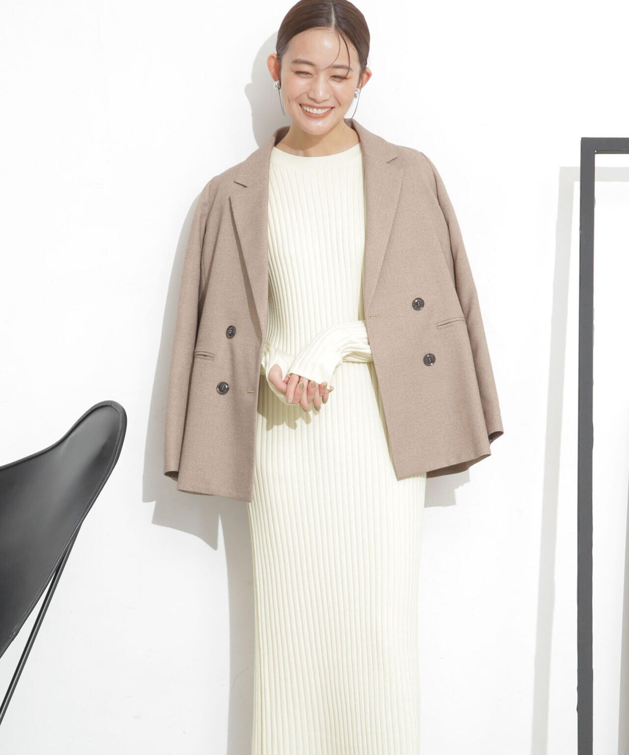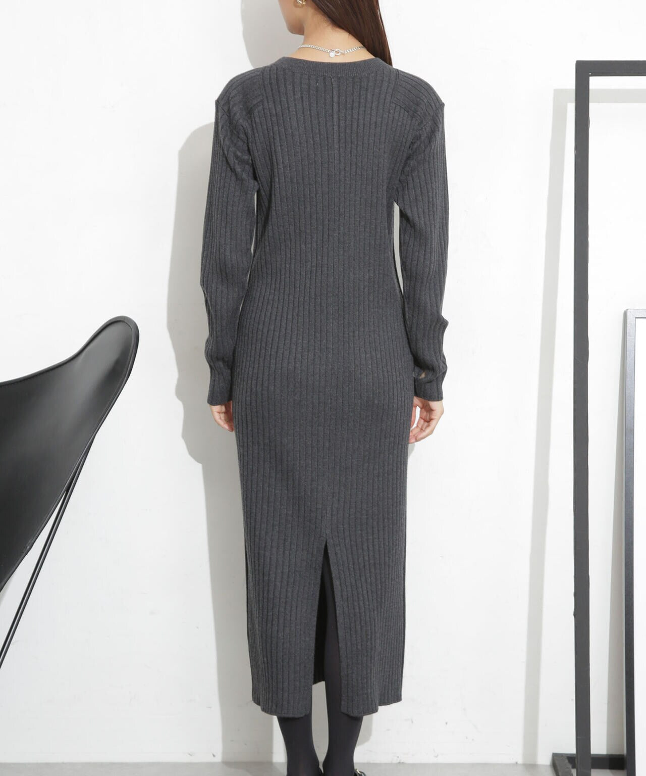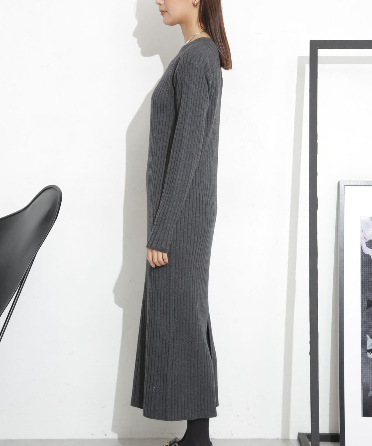 ・すっきりとしたIラインシルエットが大人っぽくトレンド見えするリブワンピース