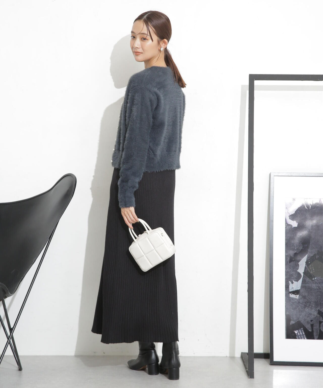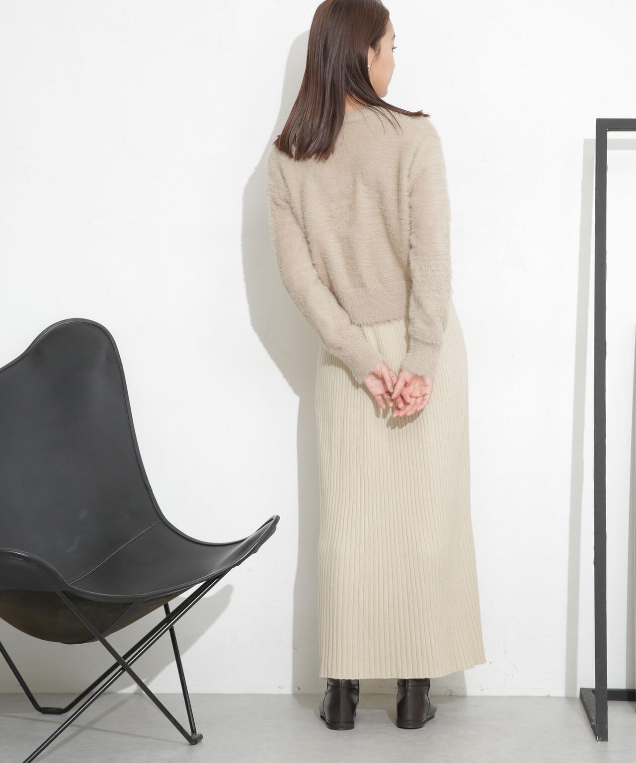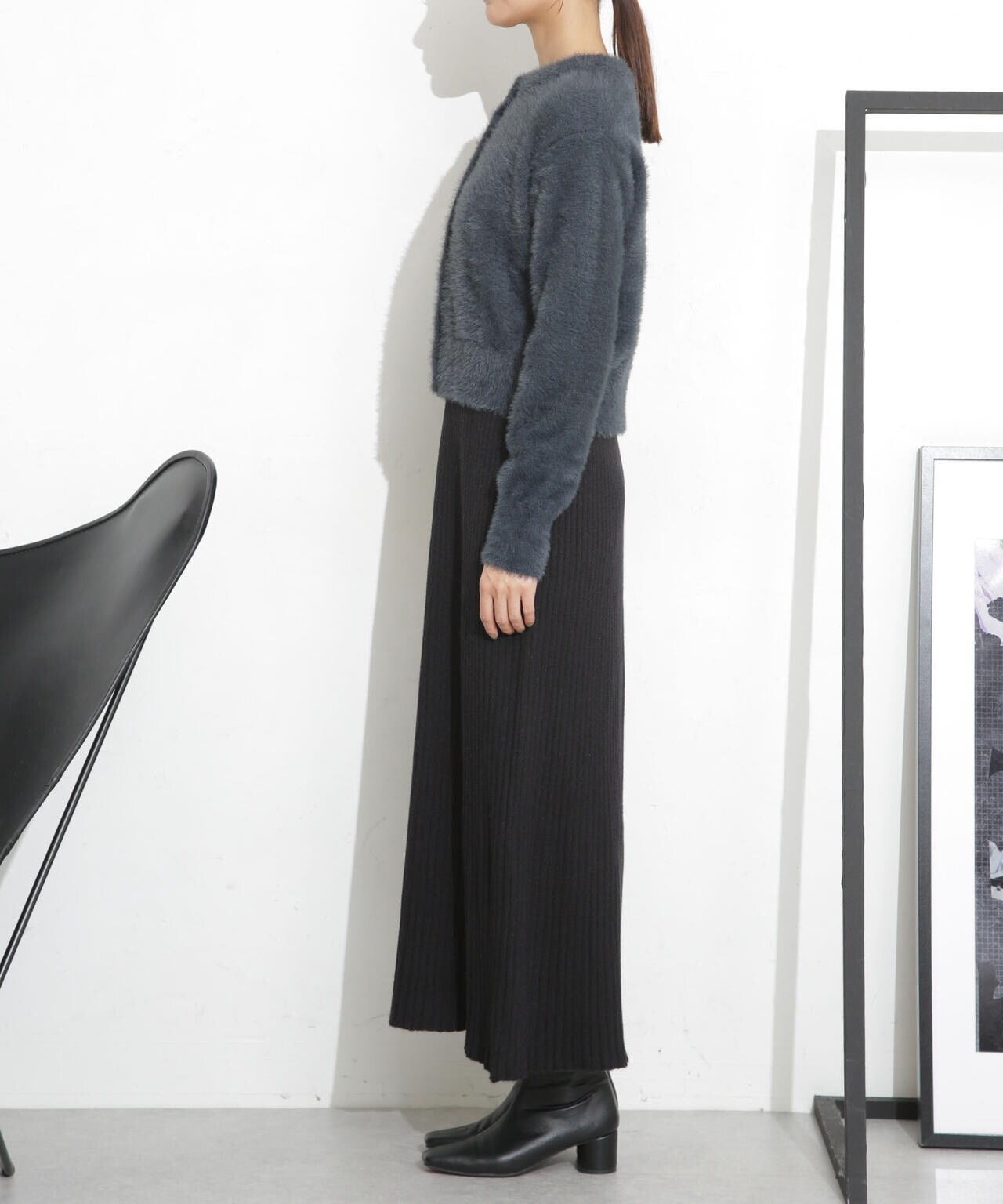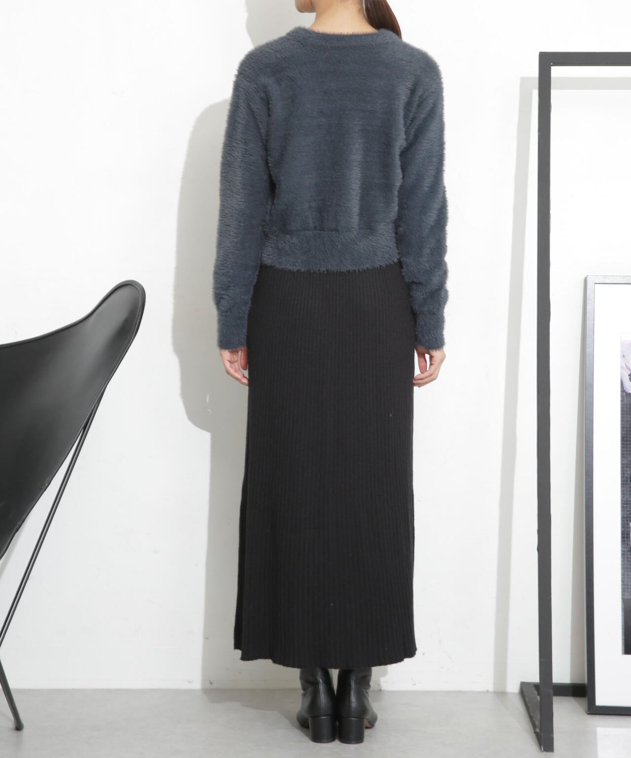 ・毛足の長いフェザーニットカーデとリブワンピのセットアイテム