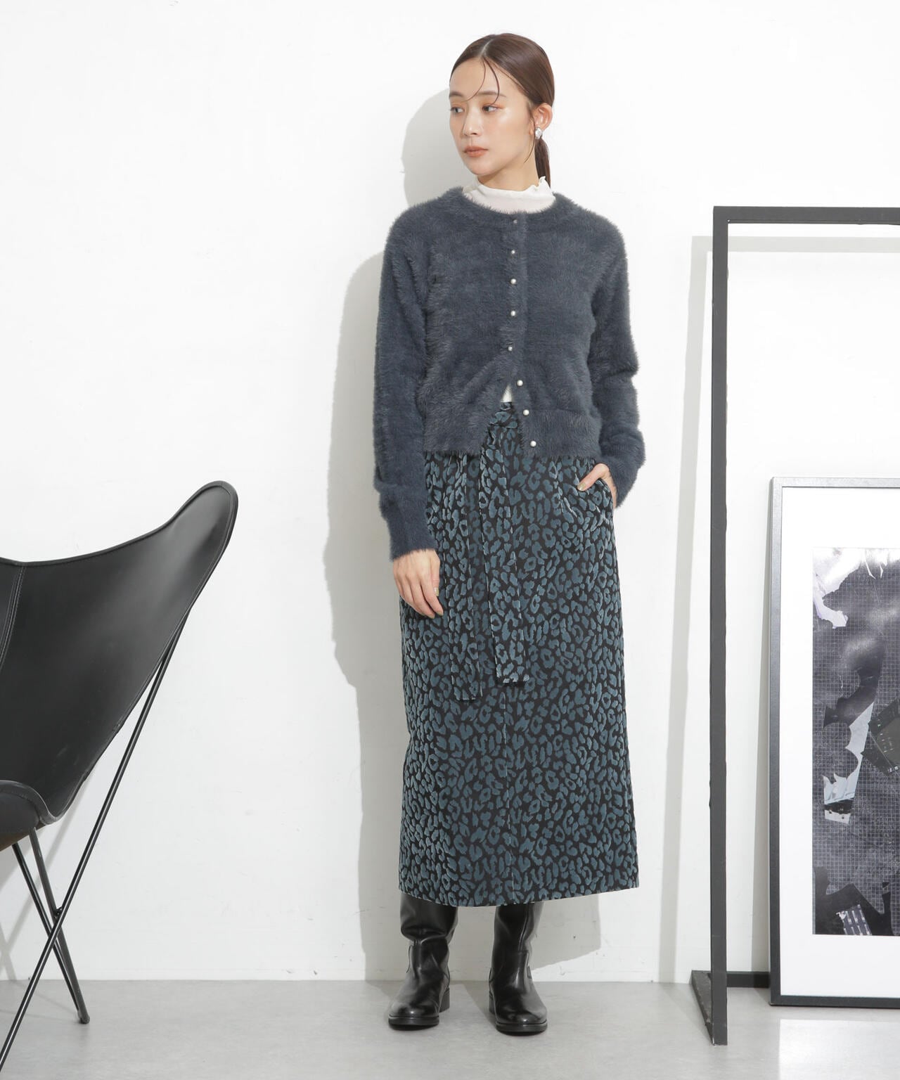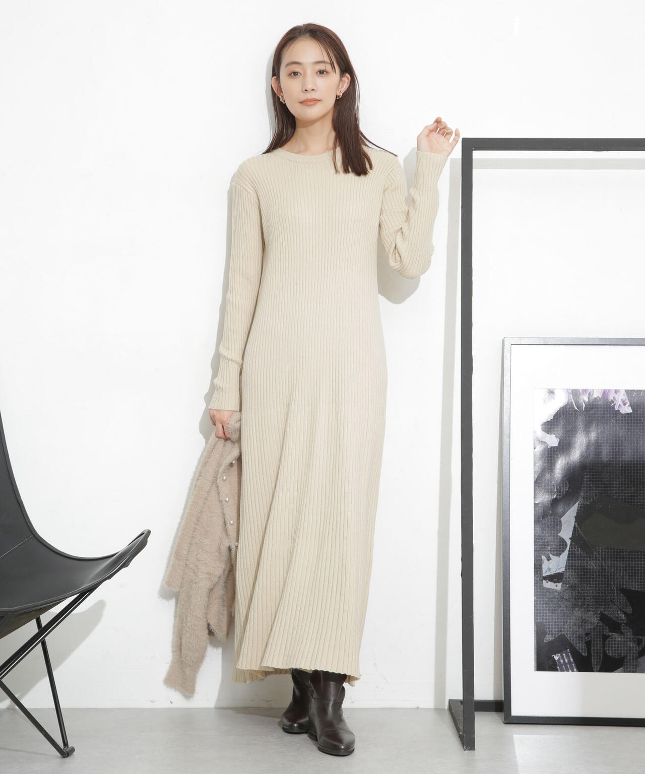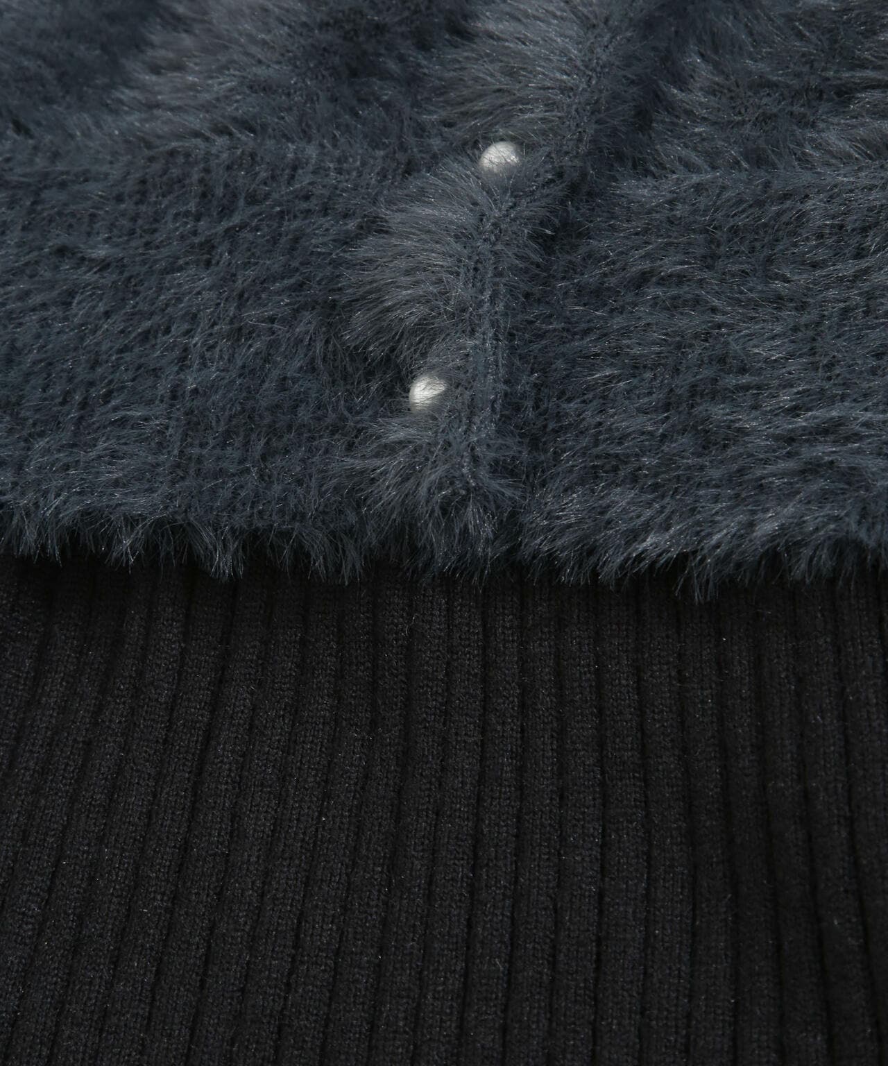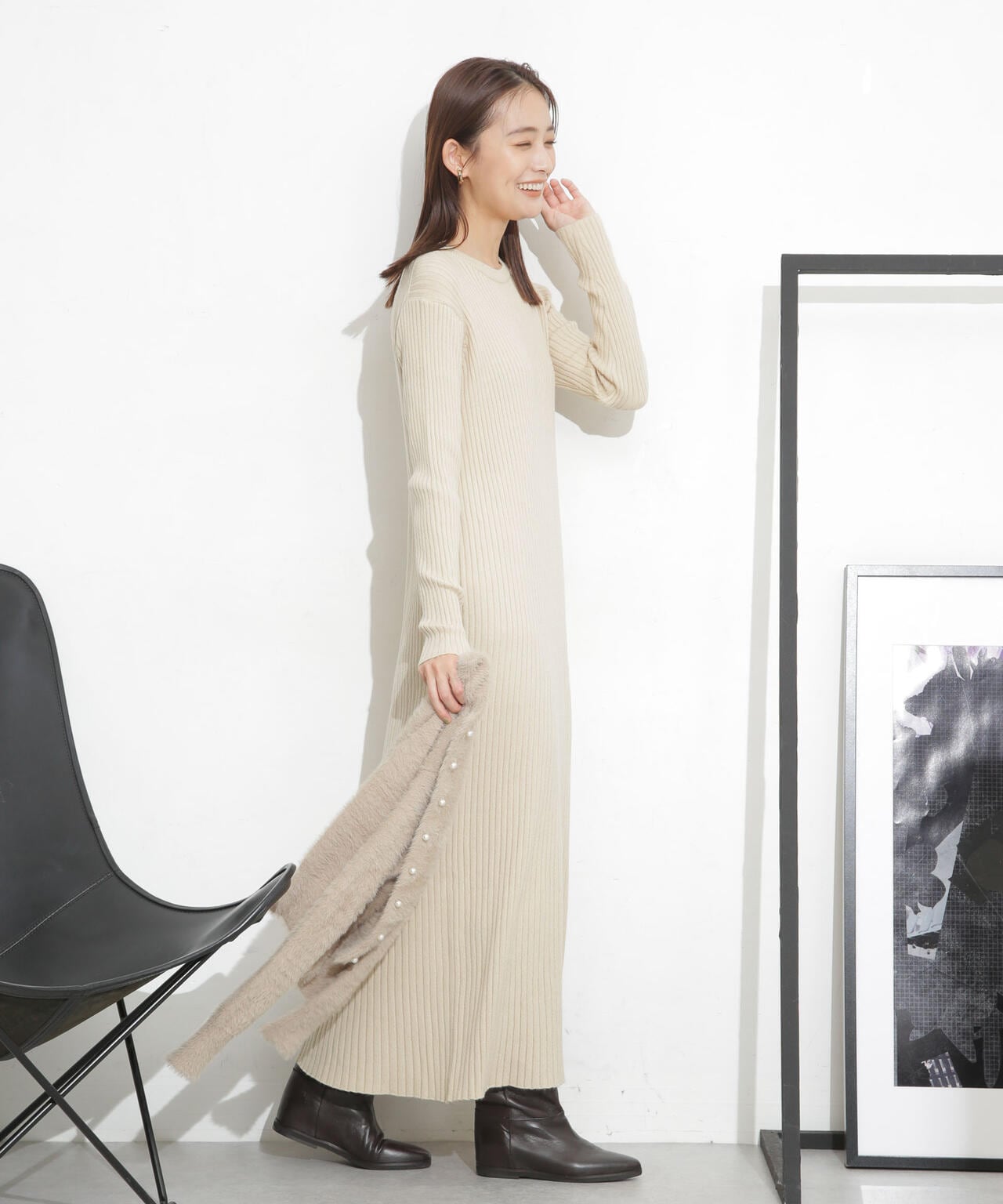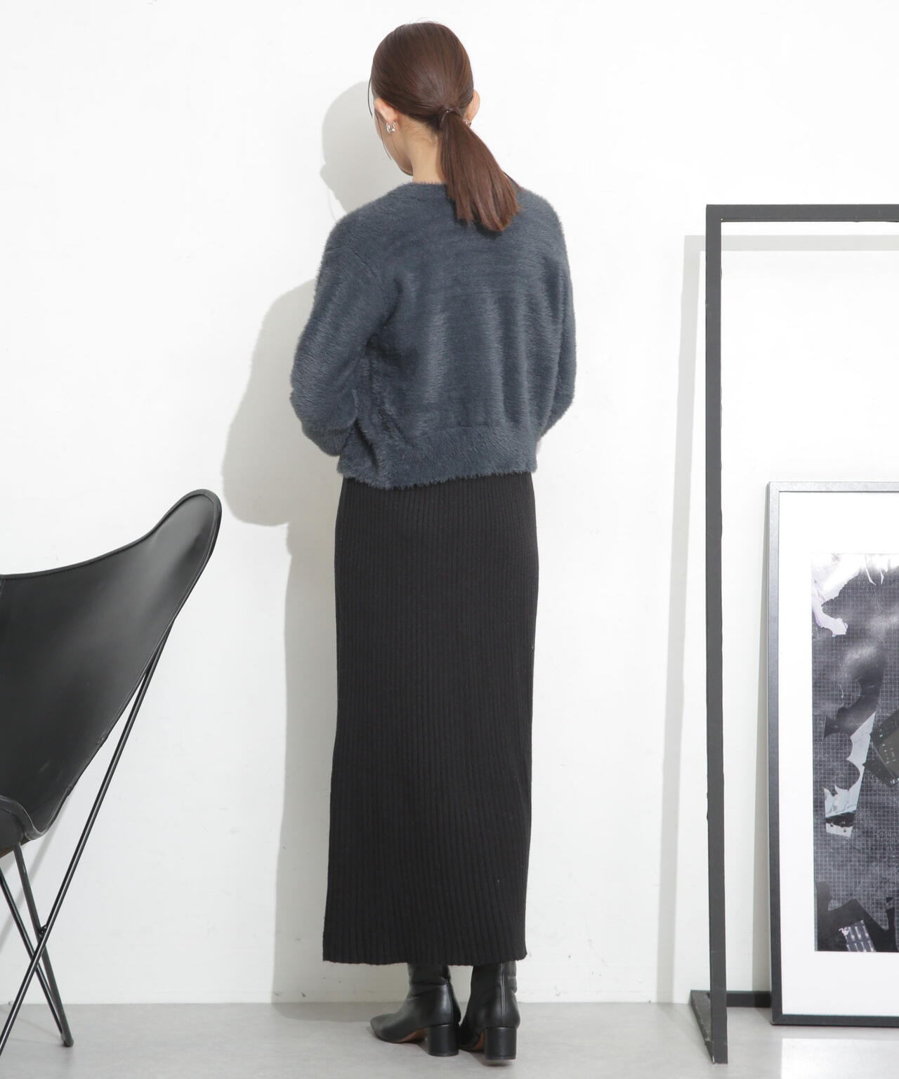 ・毛足の長いフェザーニットカーデとリブワンピのセットアイテム