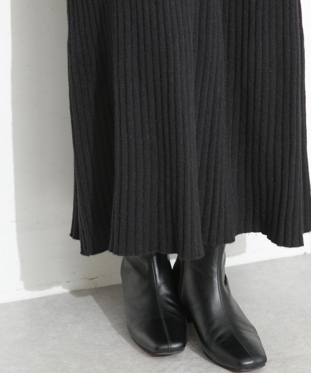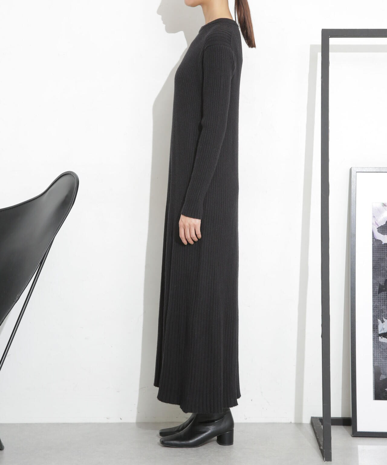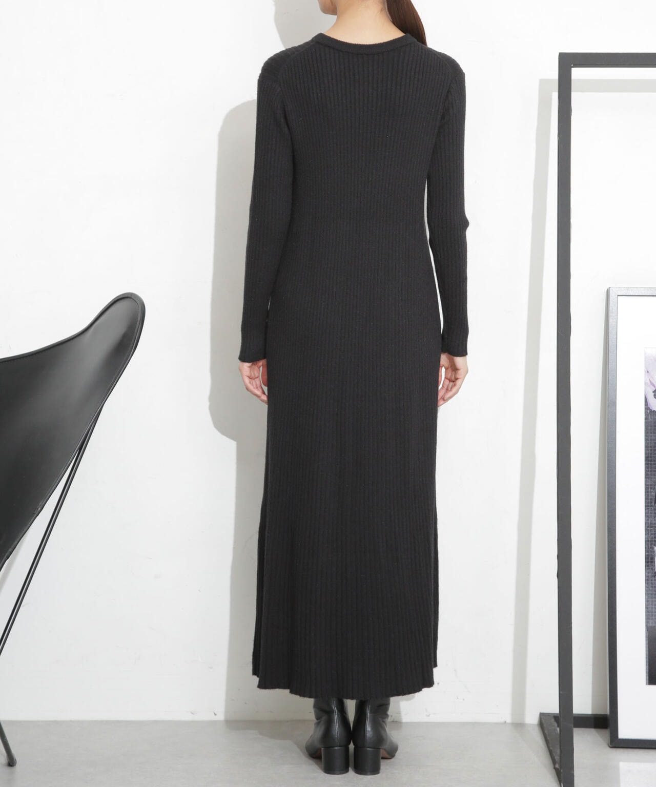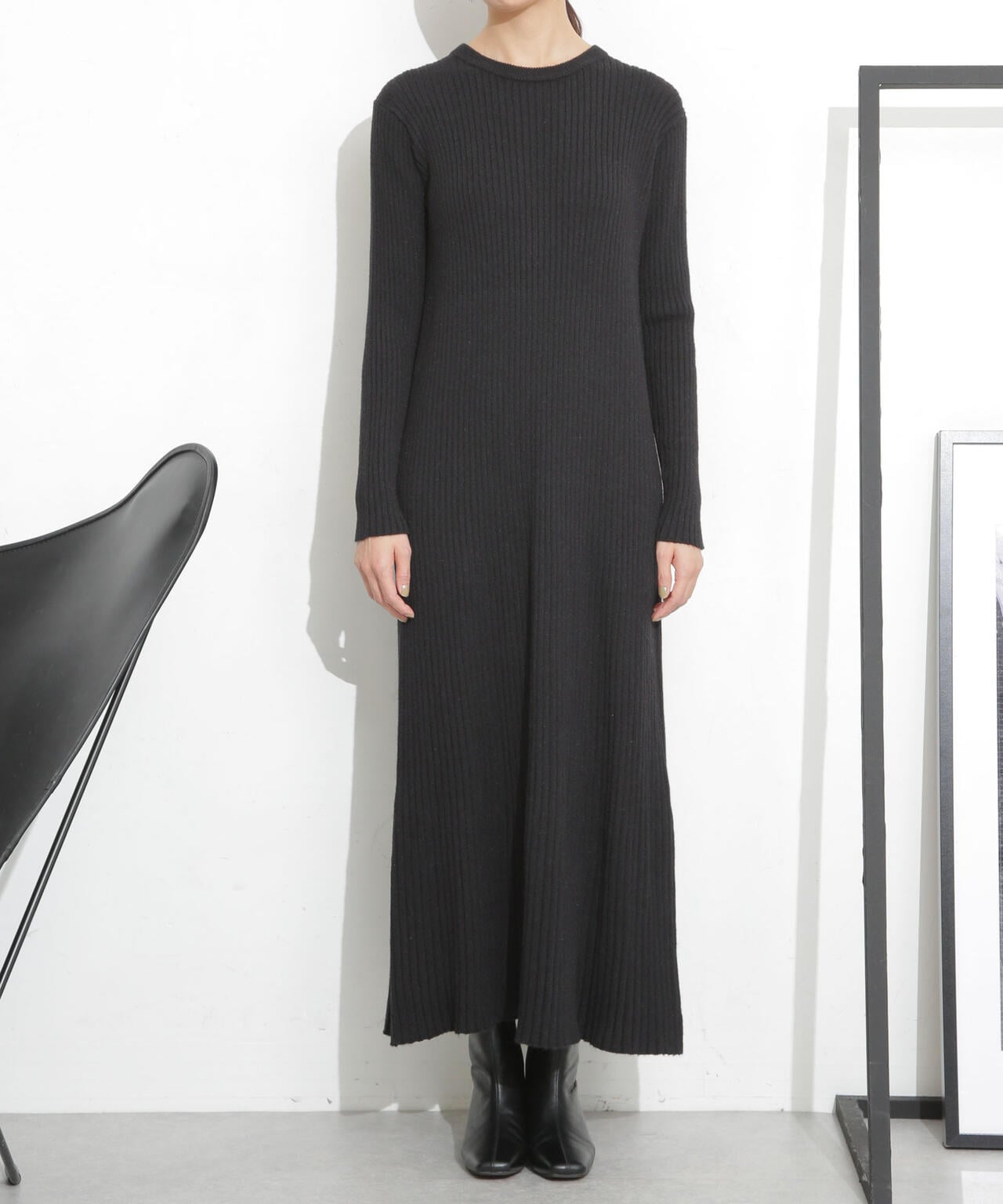 ・毛足の長いフェザーニットカーデとリブワンピのセットアイテム