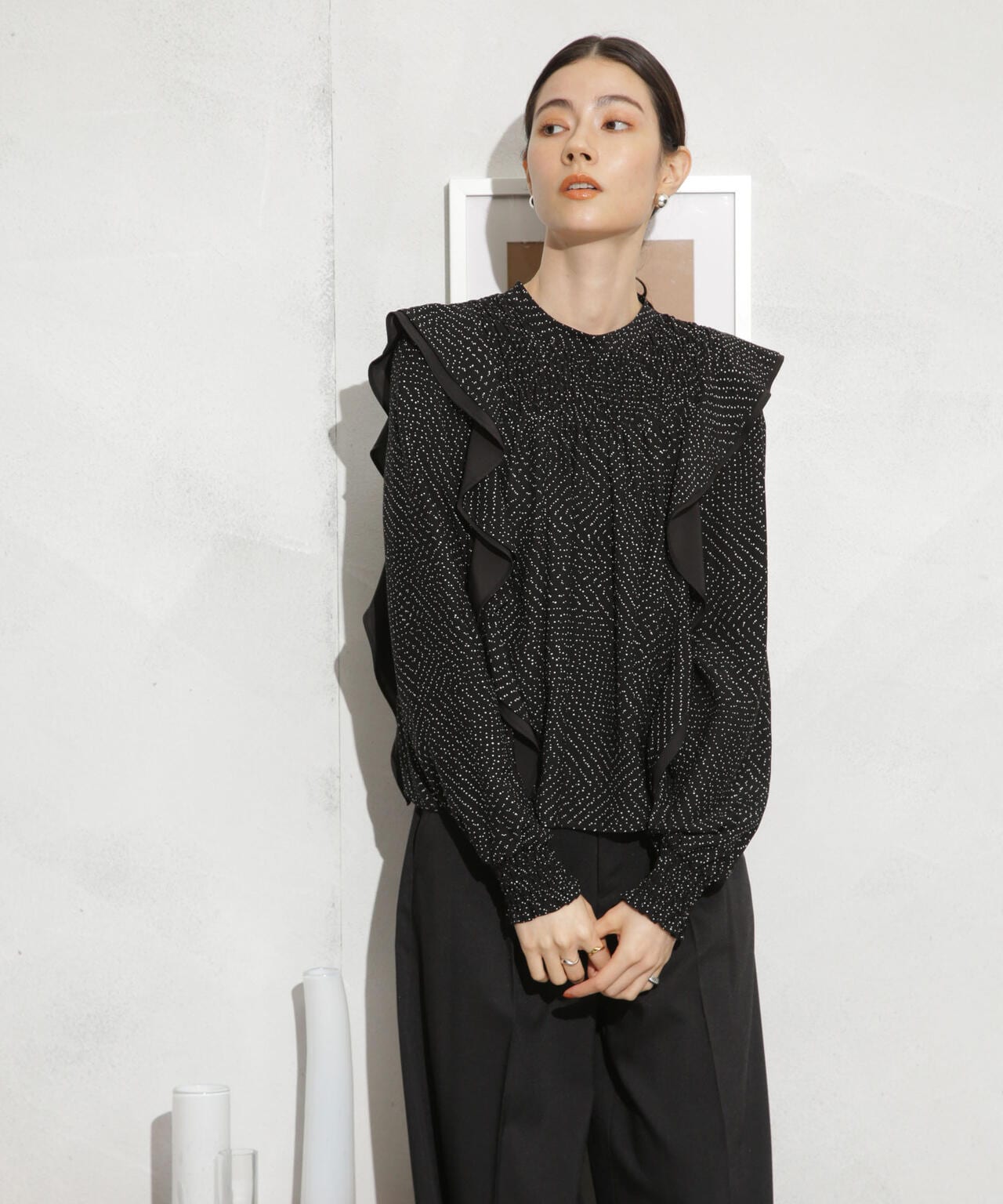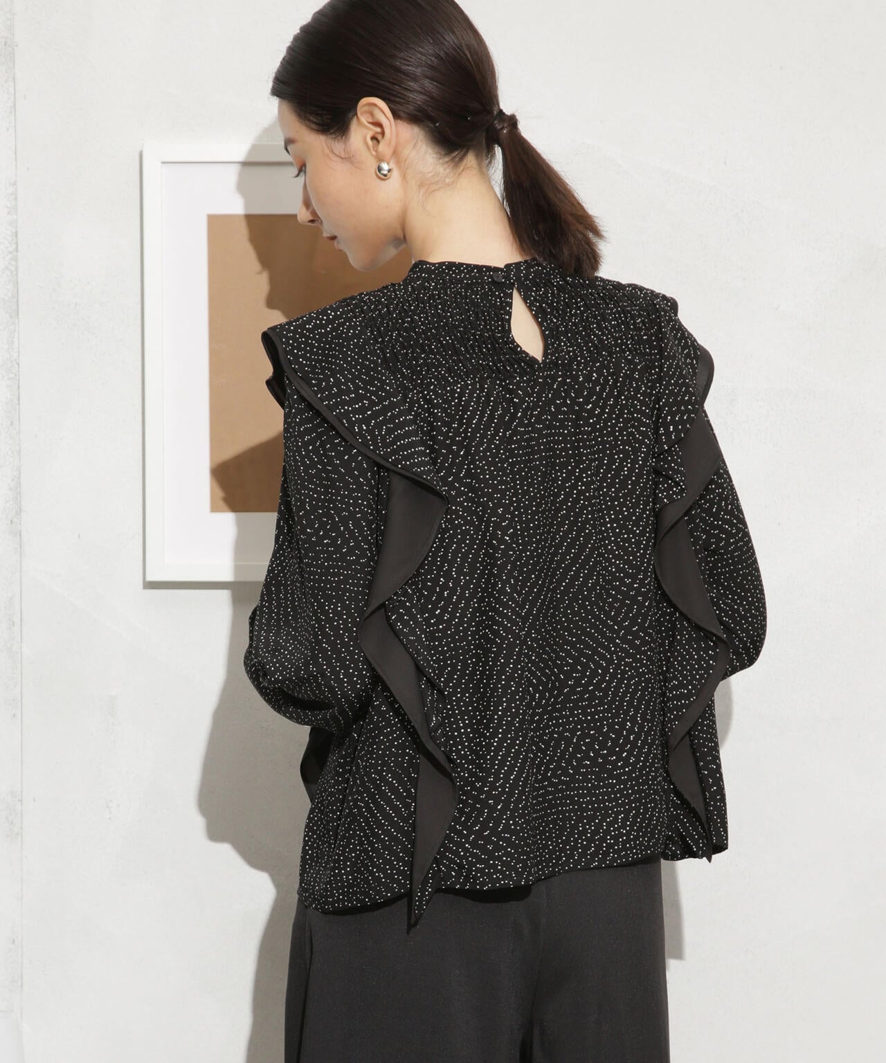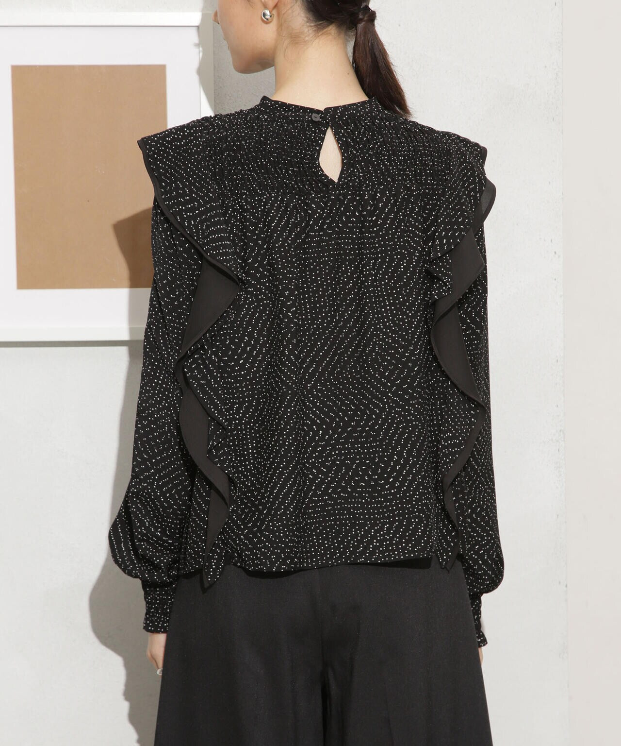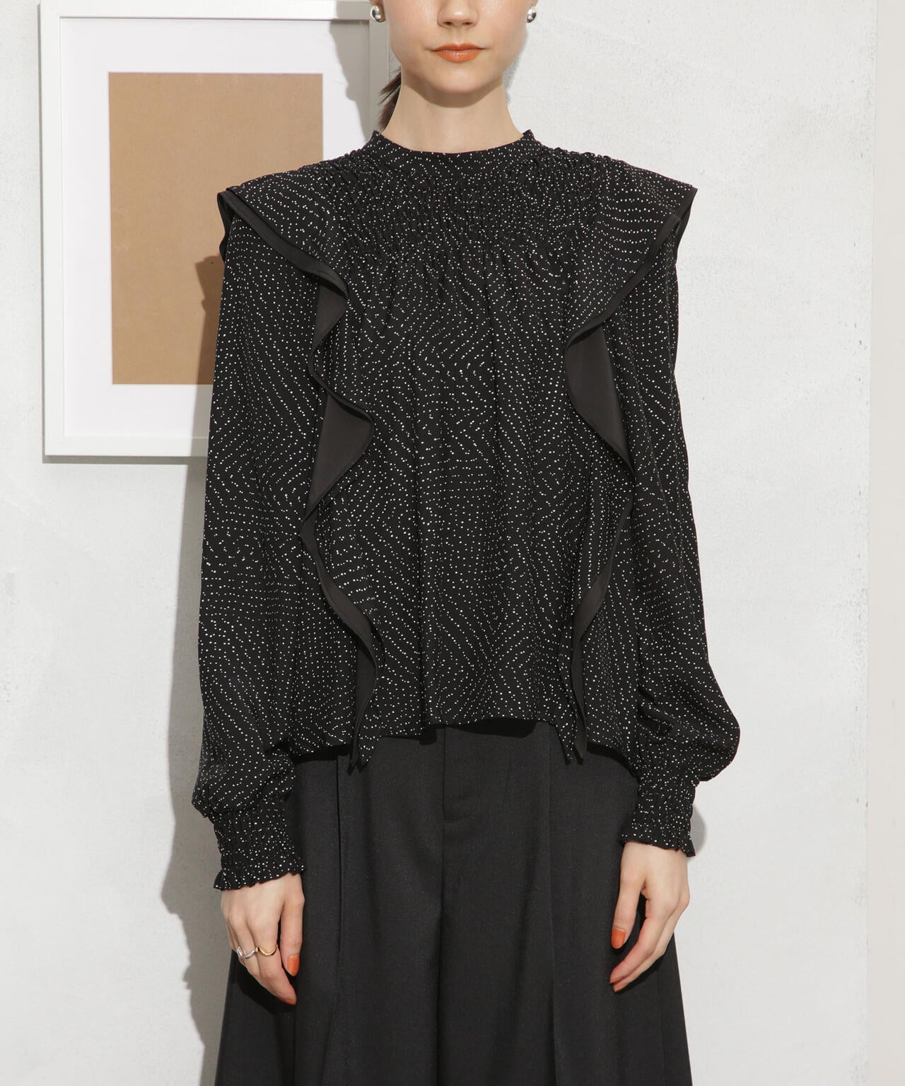 ・肩のフリルディテールが華やかな印象のブラウス