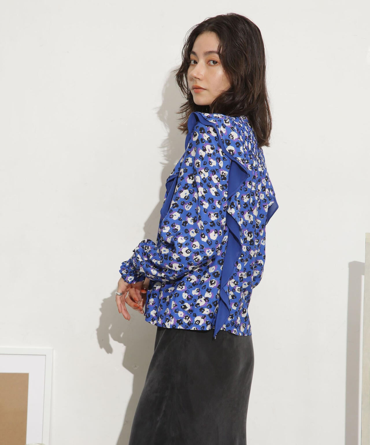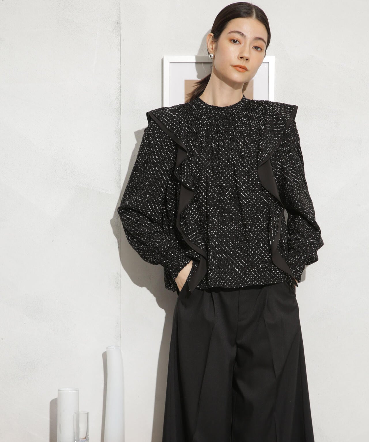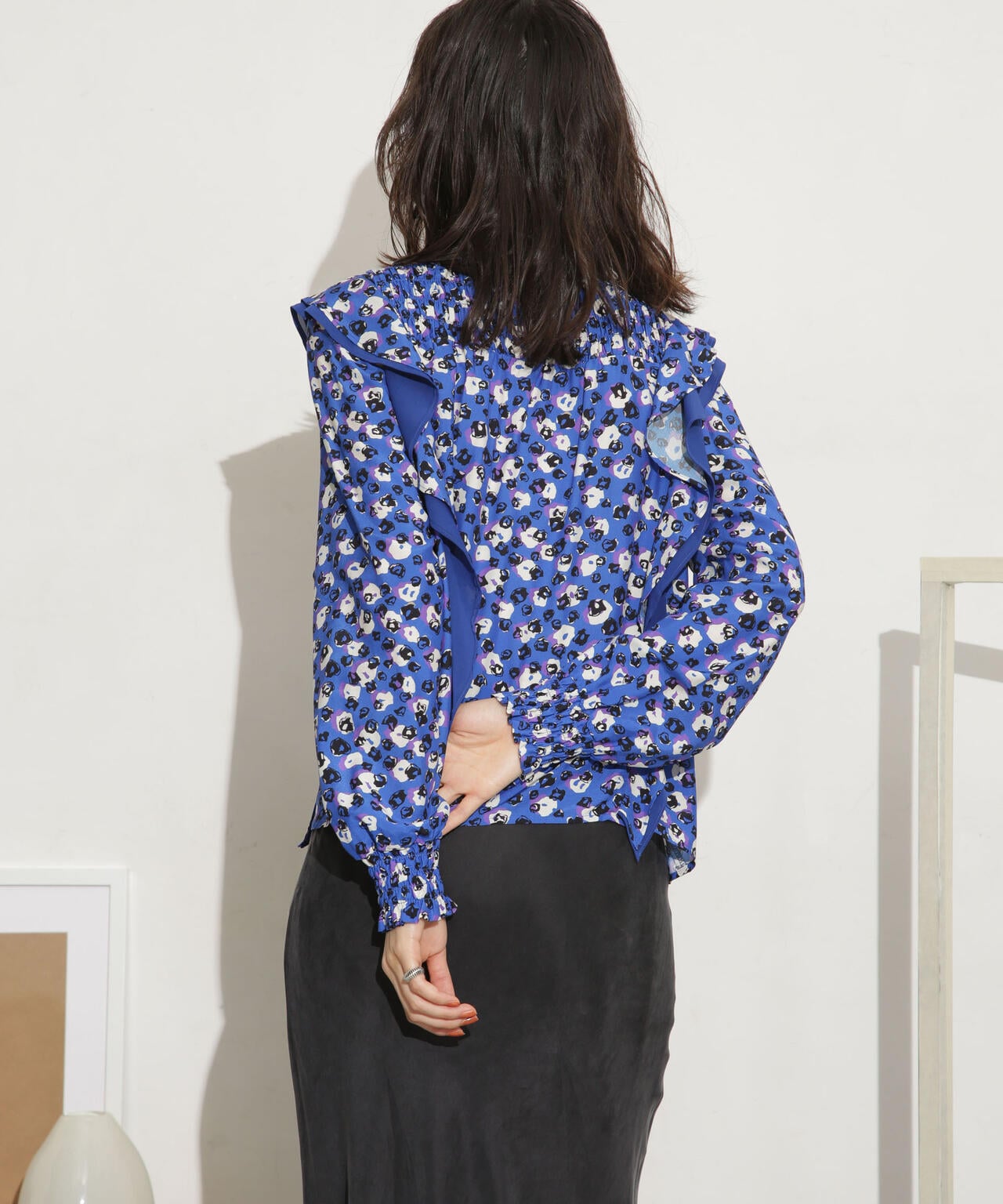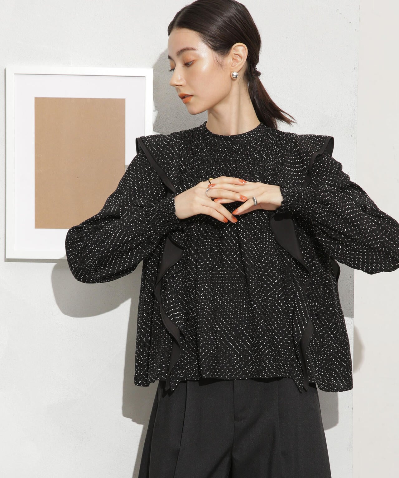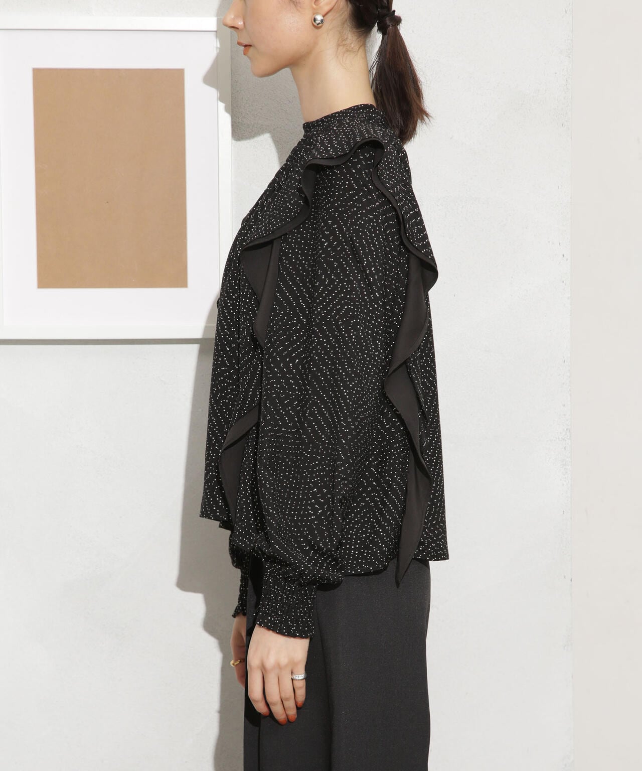 ・肩のフリルディテールが華やかな印象のブラウス