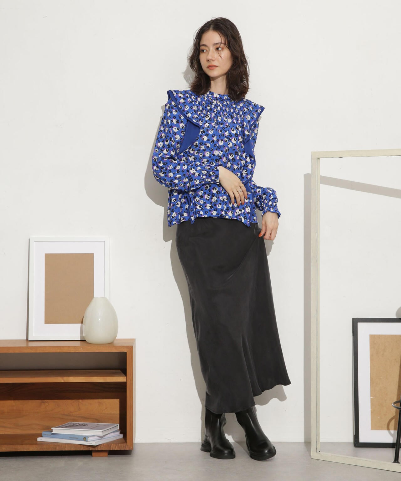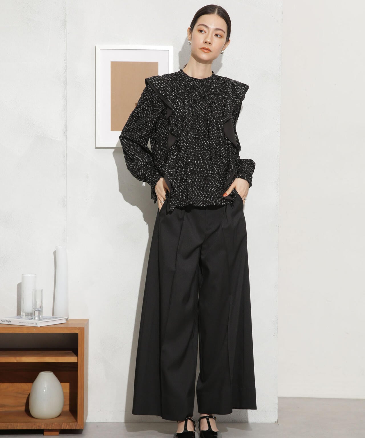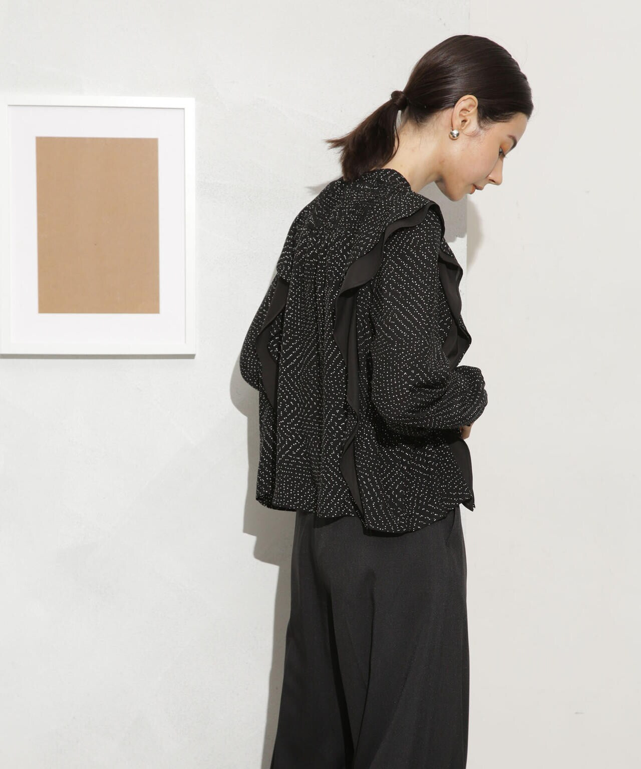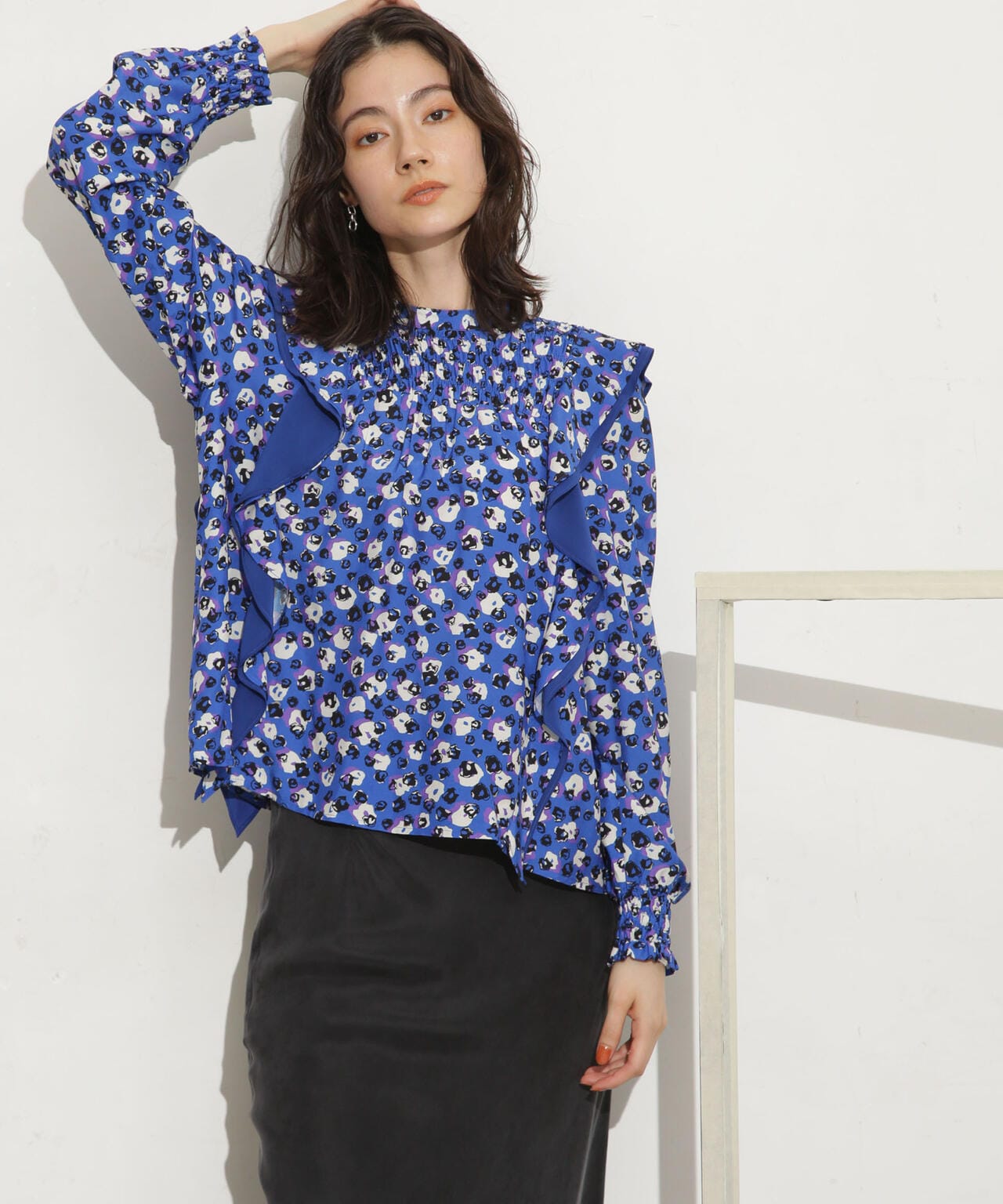 ・肩のフリルディテールが華やかな印象のブラウス