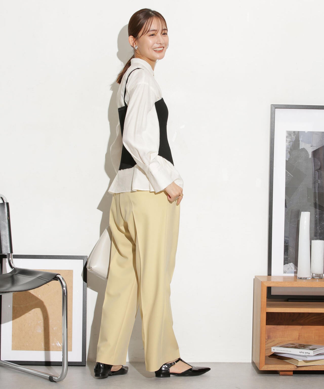 ・ウエストタックブラウス+ワイドパンツのコーディネートも◎