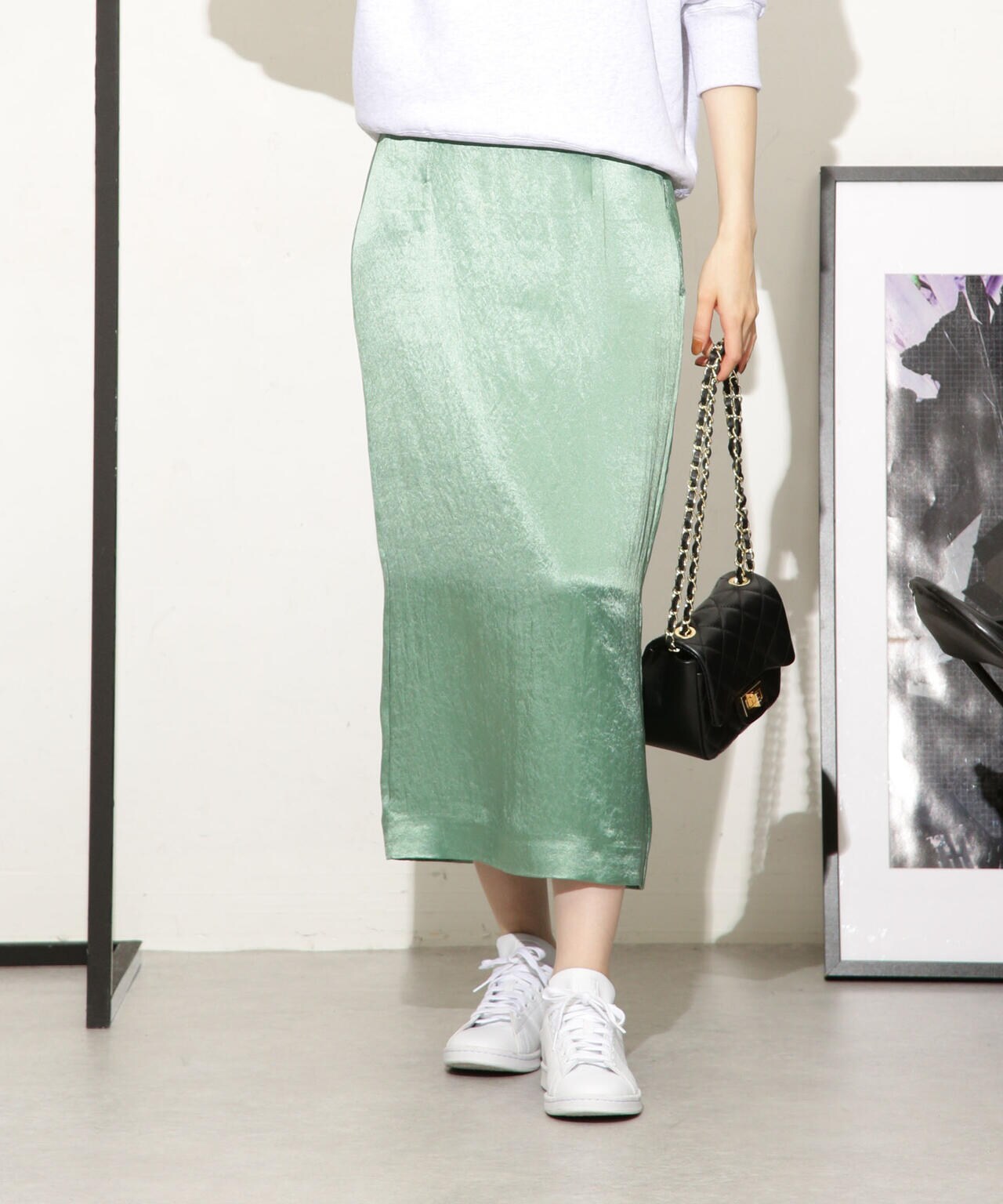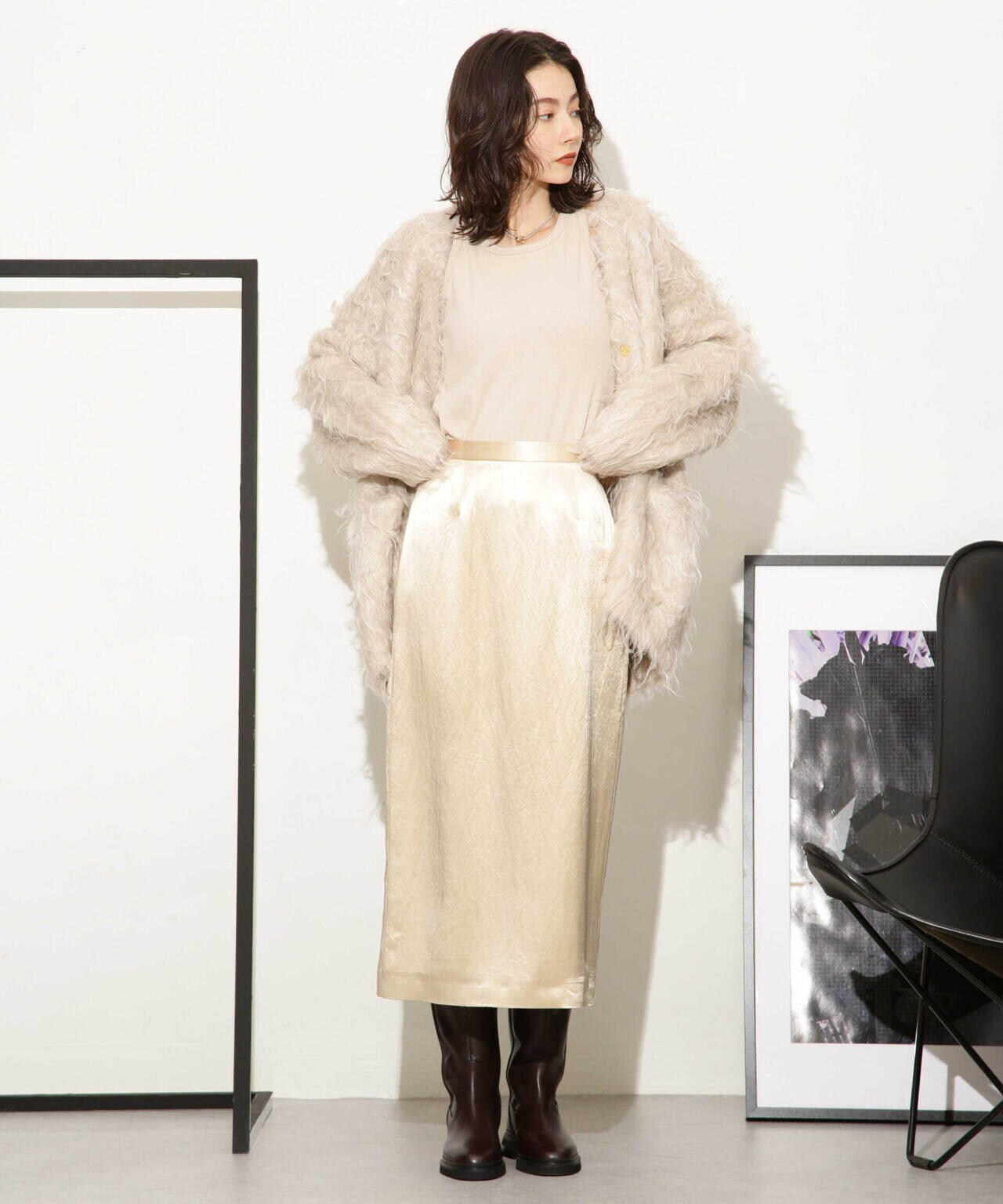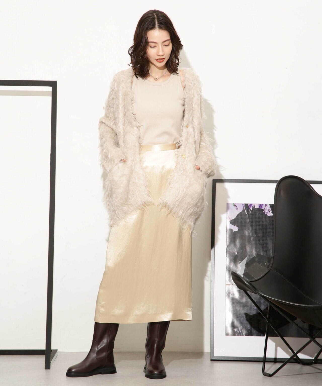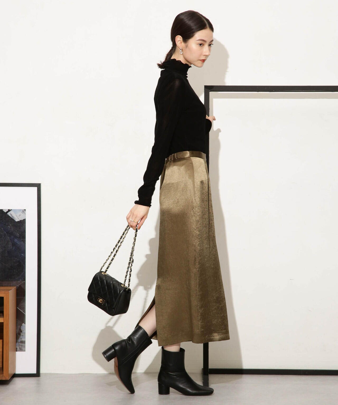 Iラインのすっきりとしたシルエットが都会的なロングスカート。ふわふわニットやウォーム感のあるアウターなどと合わせても重くならないように、素材感の違いでメリハリ見せできるスカートに仕上げました。縦のラインを強調してくれるIラインシルエットなので、スタイルアップが期待できる便利アイテムです。