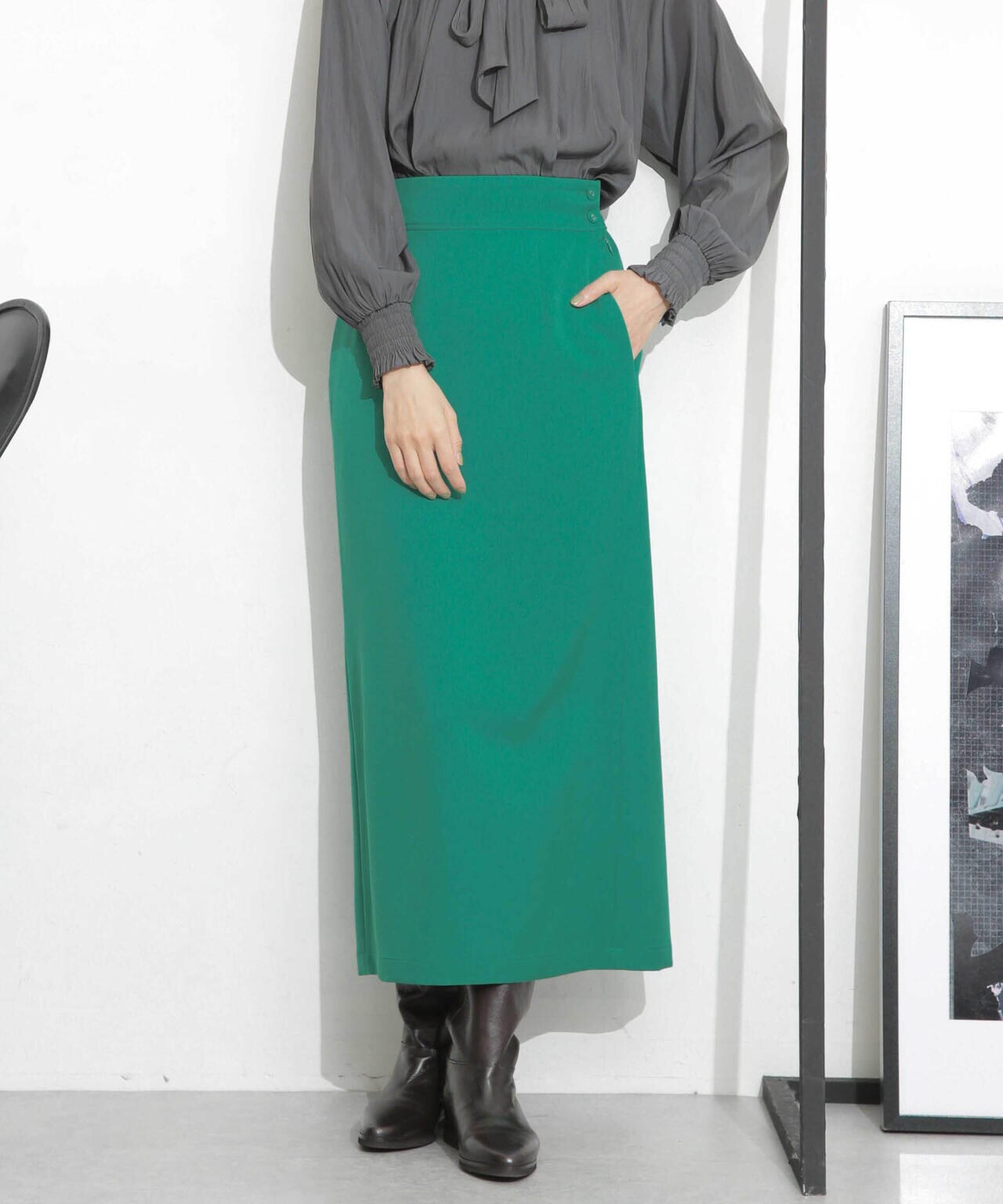 すっきりと着こなせるストレートシルエットのスカート。着脱も着心地もイージーな後ろウエストゴム仕様に、腰位置高めでスタイルアップも期待できるデザイン。トレンド感あるヘアリーニットとコーディネートしたり、ウォッシャブルフォックスシリーズやMUSICウールカシミヤシリーズと合わせる着こなしもおすすめです。