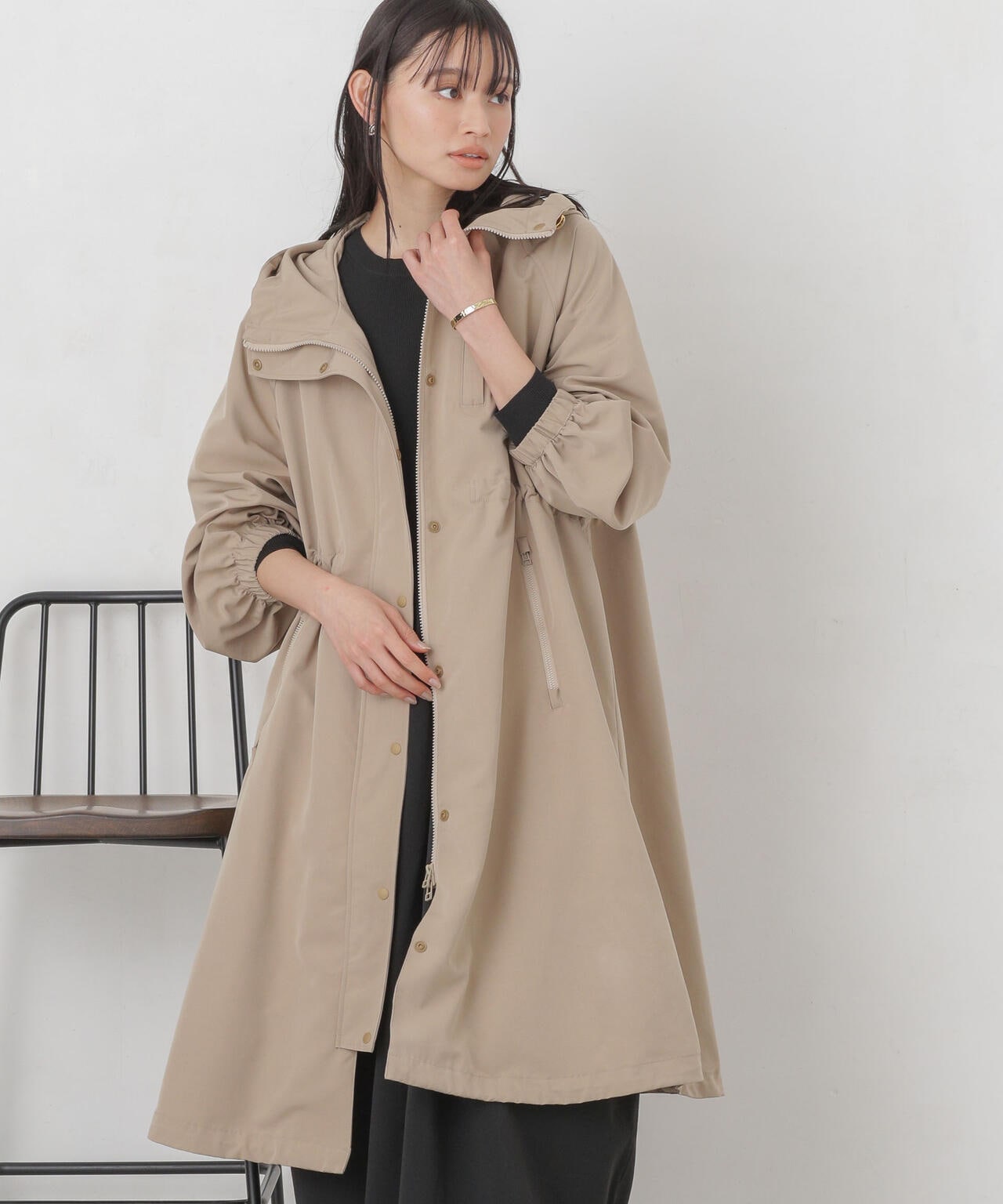 一枚仕立てのスポーティーなフード付きロングコート。スポーティーなディテールに拘りながらもややAラインのシルエットやフードのフォルムなどカジュアルすぎない女性らしさを感じさせるバランスが魅力◎。ばさっと羽織ったり、ウエスト内側や裾のコードを絞って様々なシルエットを楽しんでいただくのもオススメなアイテムです。