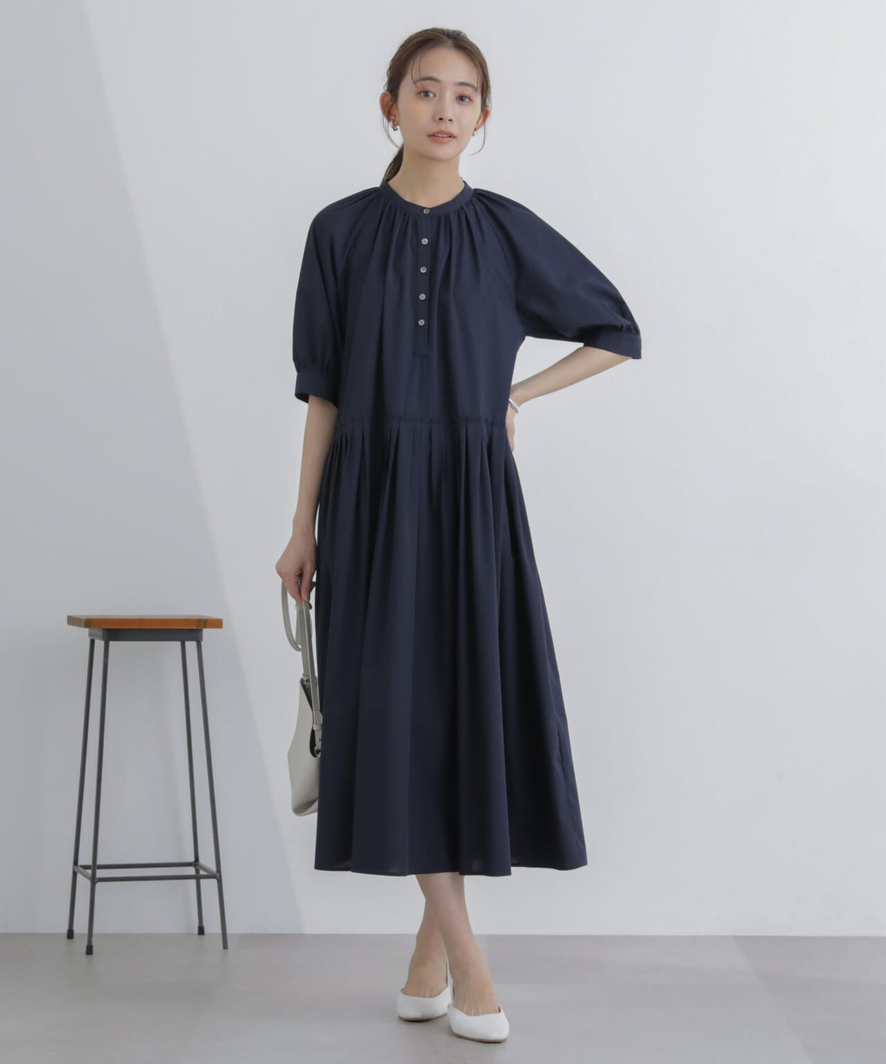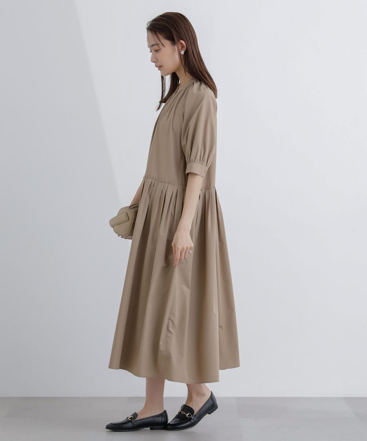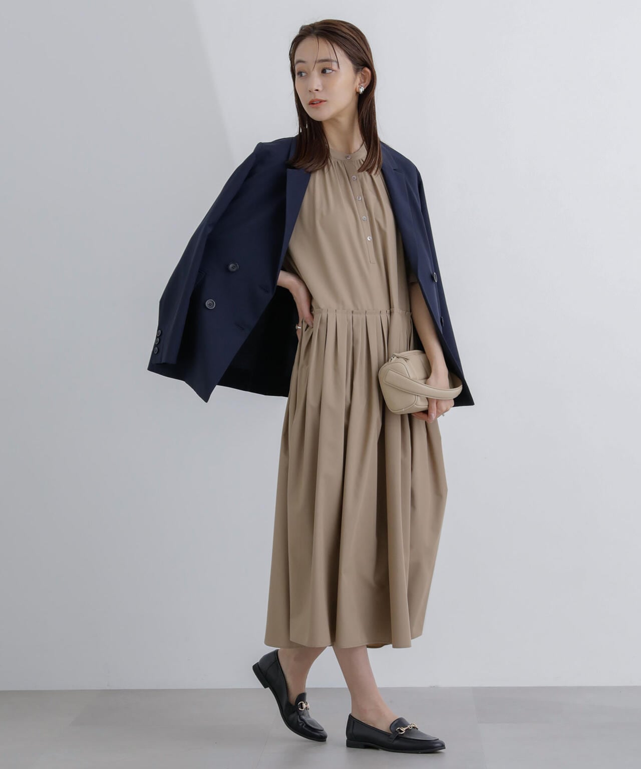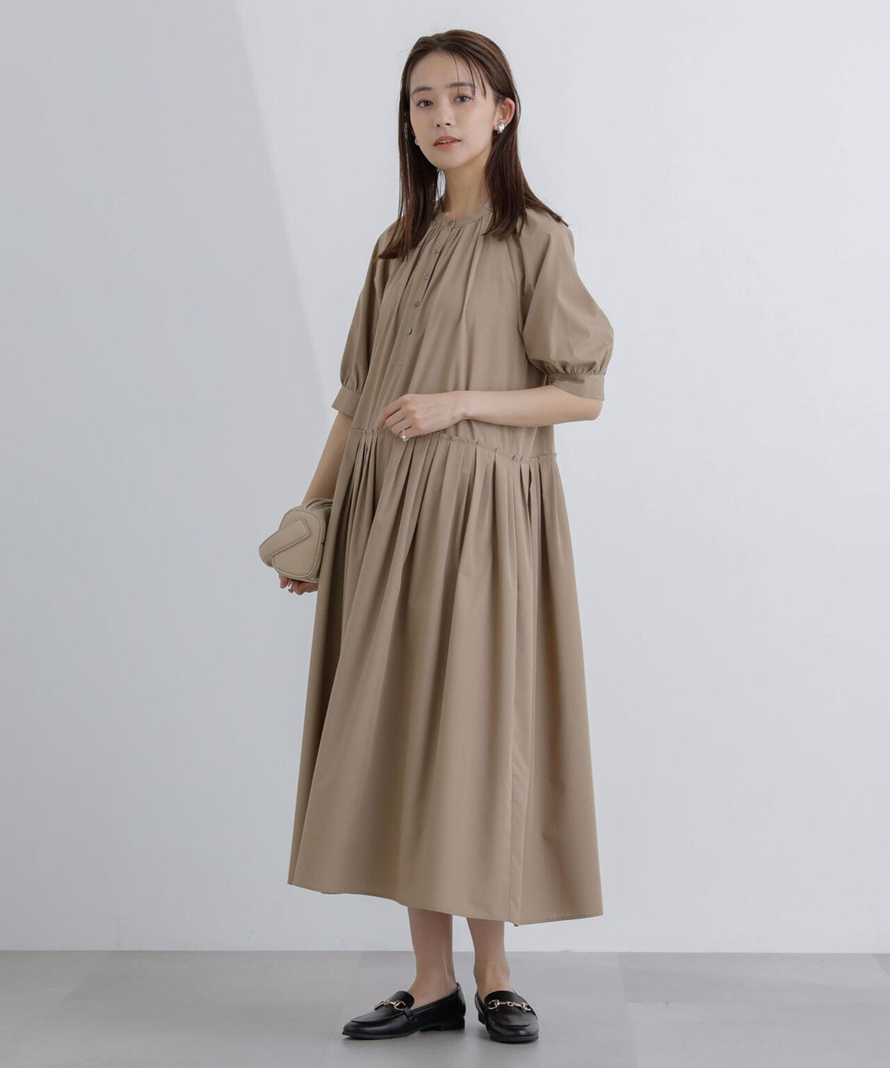 着るだけでサマになる上品なシャツワンピース。ウエストでプリーツの太さが切り替わるランダムなプリーツ&タックディテールが、大人モードな抜け感を演出。足元はヒールもスニーカーも合わせやすく、デイリーからちょっとしたお出掛けシーンまで幅広く活躍します。