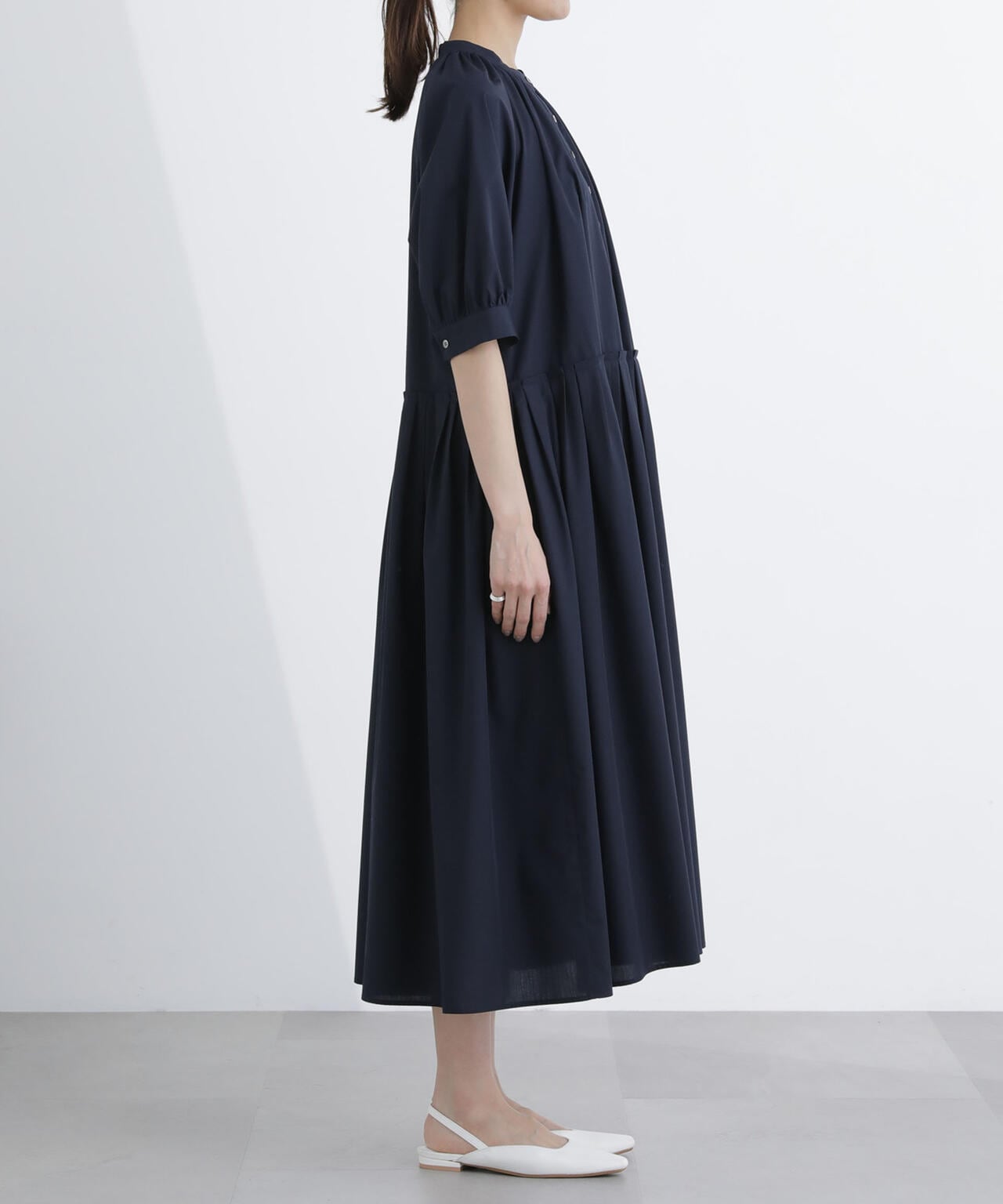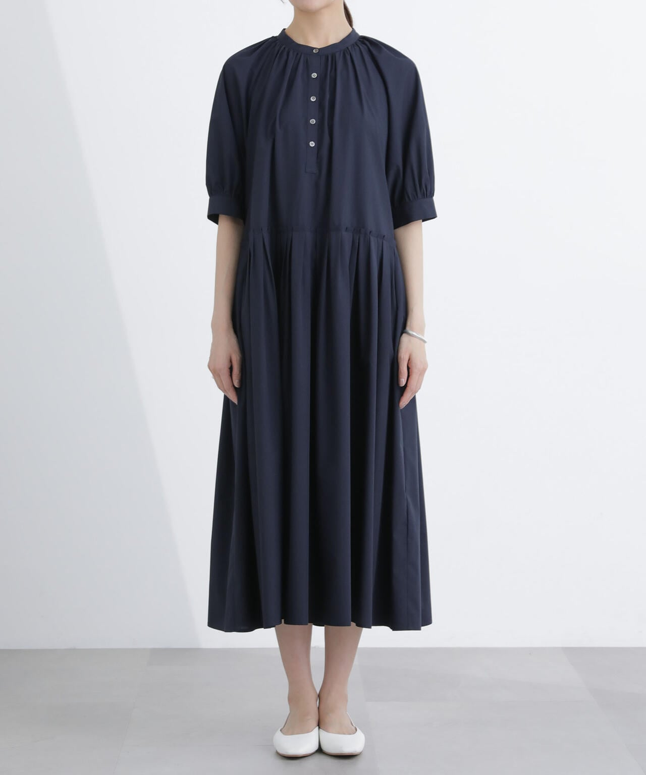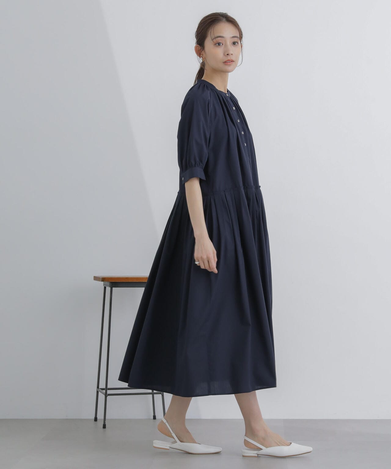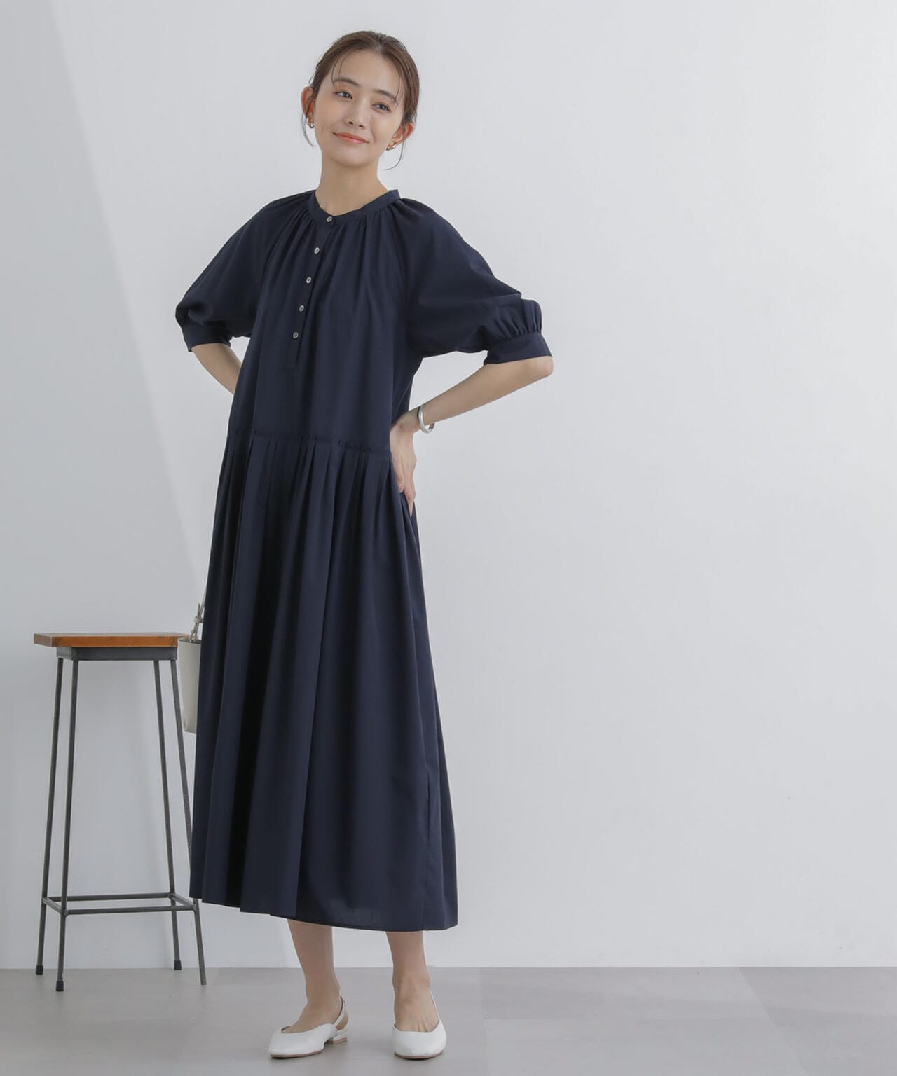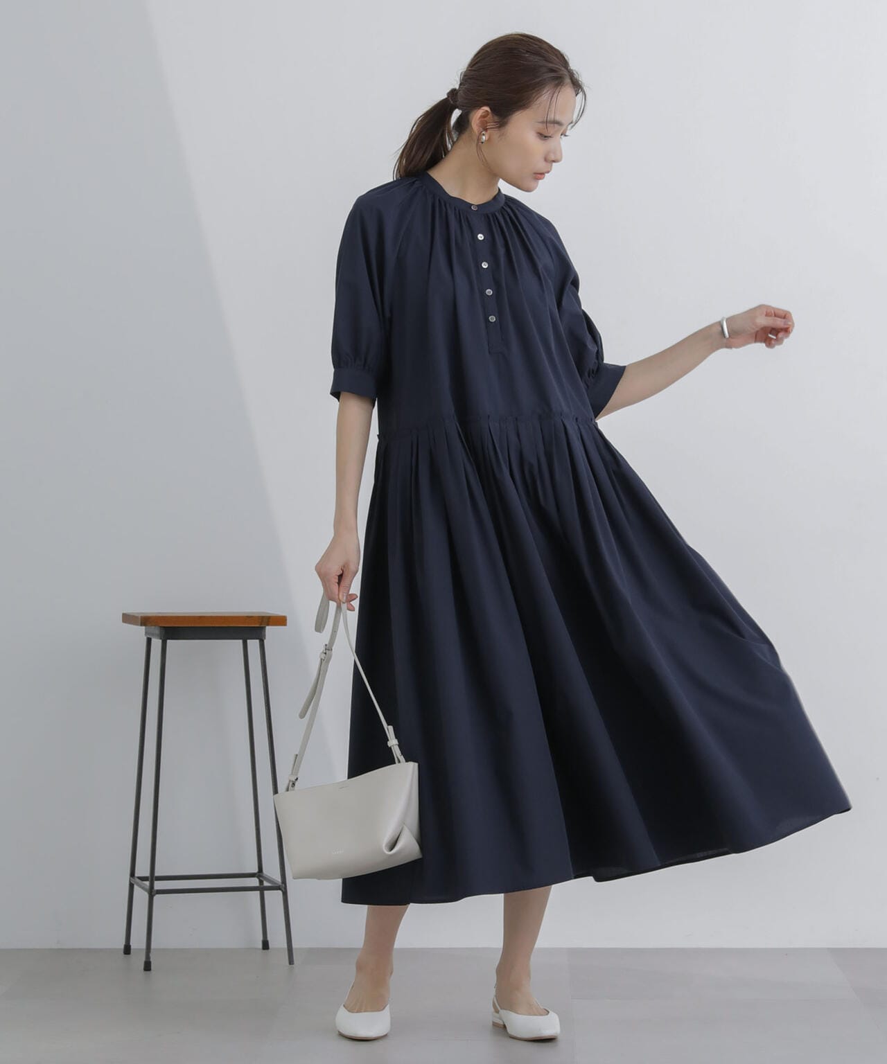 着るだけでサマになる上品なシャツワンピース。ウエストでプリーツの太さが切り替わるランダムなプリーツ&タックディテールが、大人モードな抜け感を演出。足元はヒールもスニーカーも合わせやすく、デイリーからちょっとしたお出掛けシーンまで幅広く活躍します。