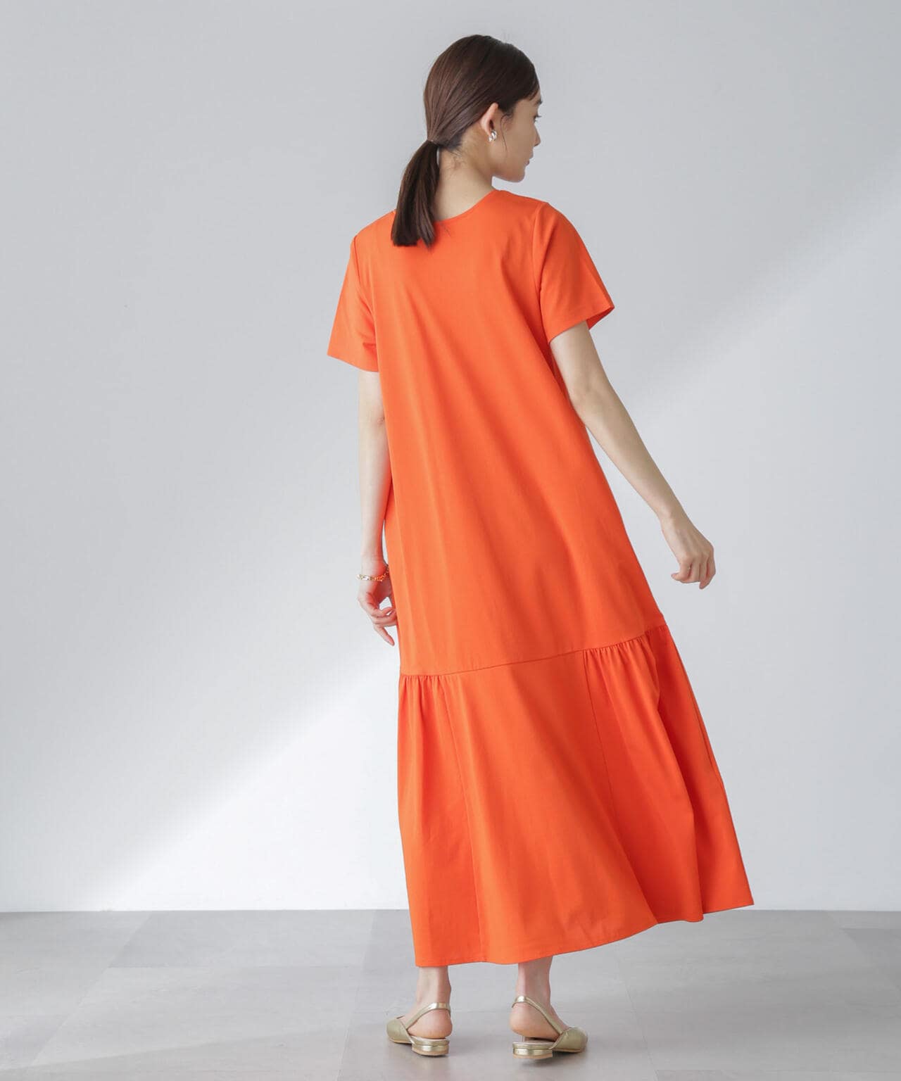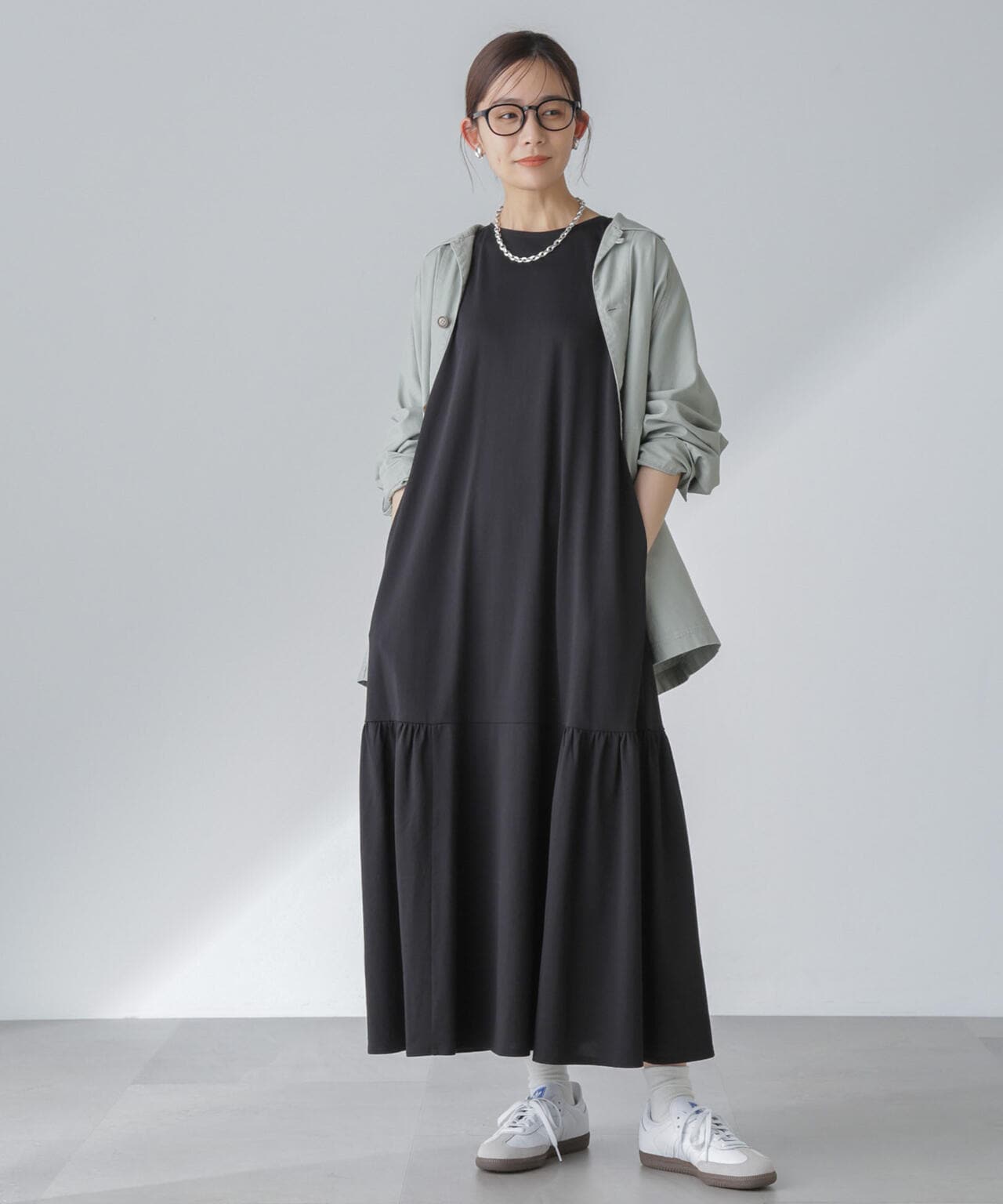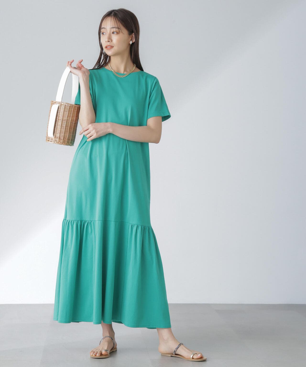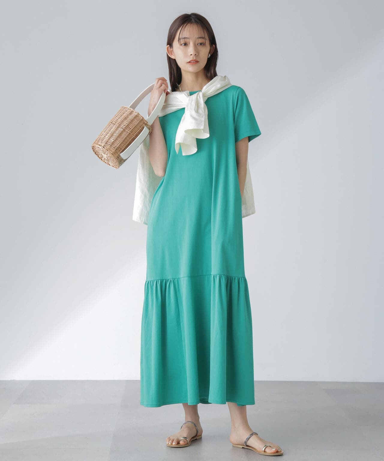 暑い季節にさらっと着られるカットソーワンピース。ボートネックとVネック、前後2wayで着用可能な一着。ティアード切替デザインで下にボリュームのあるAラインシルエットで、上身はすっきり見えするのも嬉しいポイント◎。コットンジャケットやリネンシャツなどカジュアルな羽織りと合わせるスタイリングがおすすめです!