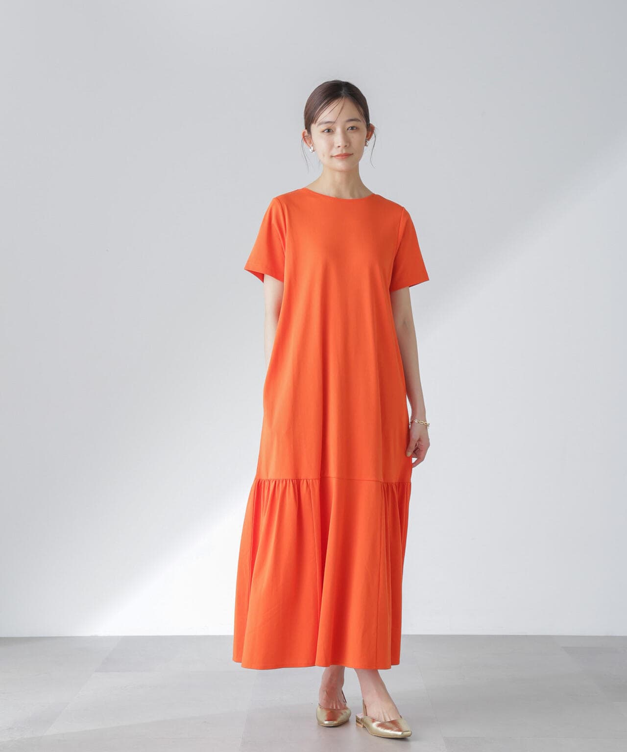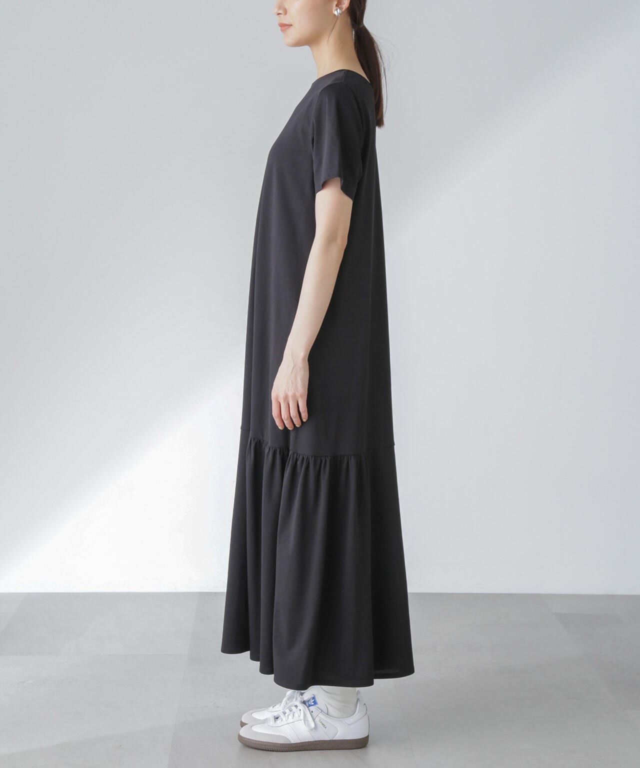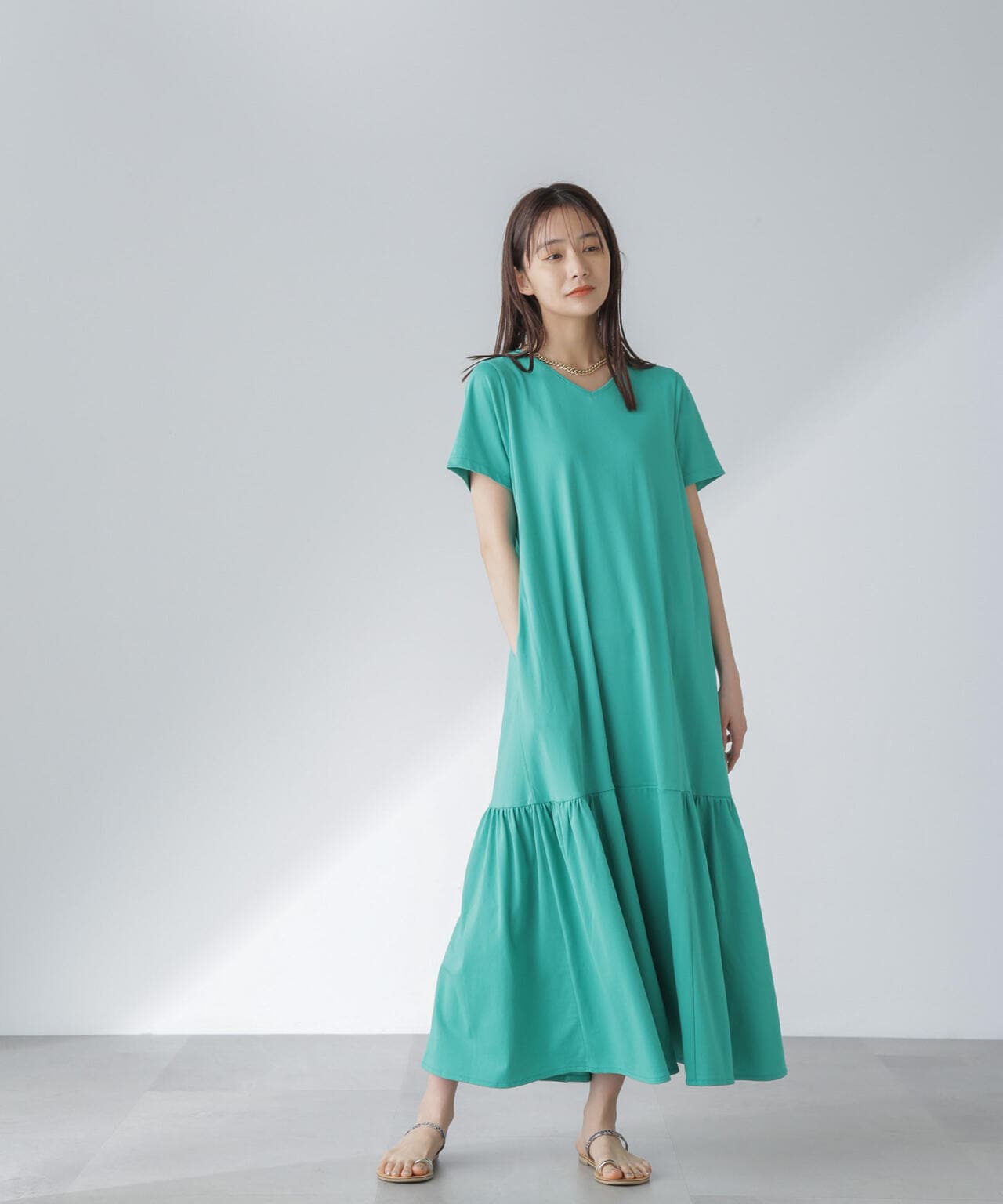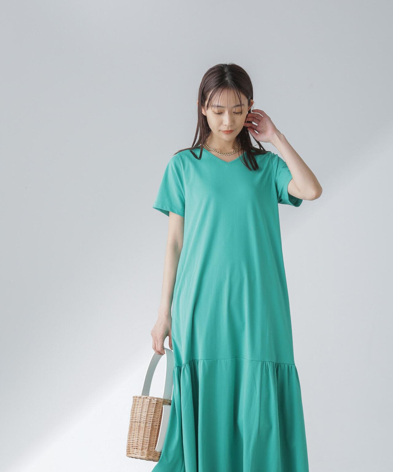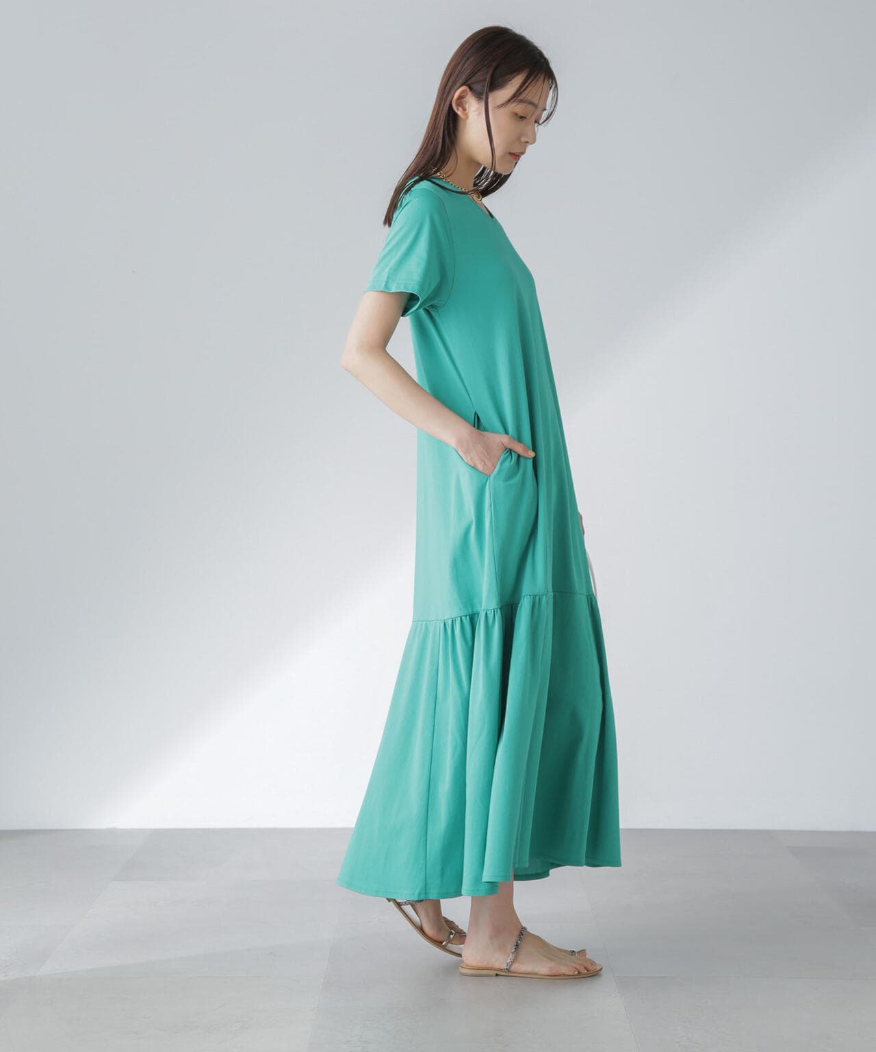 暑い季節にさらっと着られるカットソーワンピース。ボートネックとVネック、前後2wayで着用可能な一着。ティアード切替デザインで下にボリュームのあるAラインシルエットで、上身はすっきり見えするのも嬉しいポイント◎。コットンジャケットやリネンシャツなどカジュアルな羽織りと合わせるスタイリングがおすすめです!