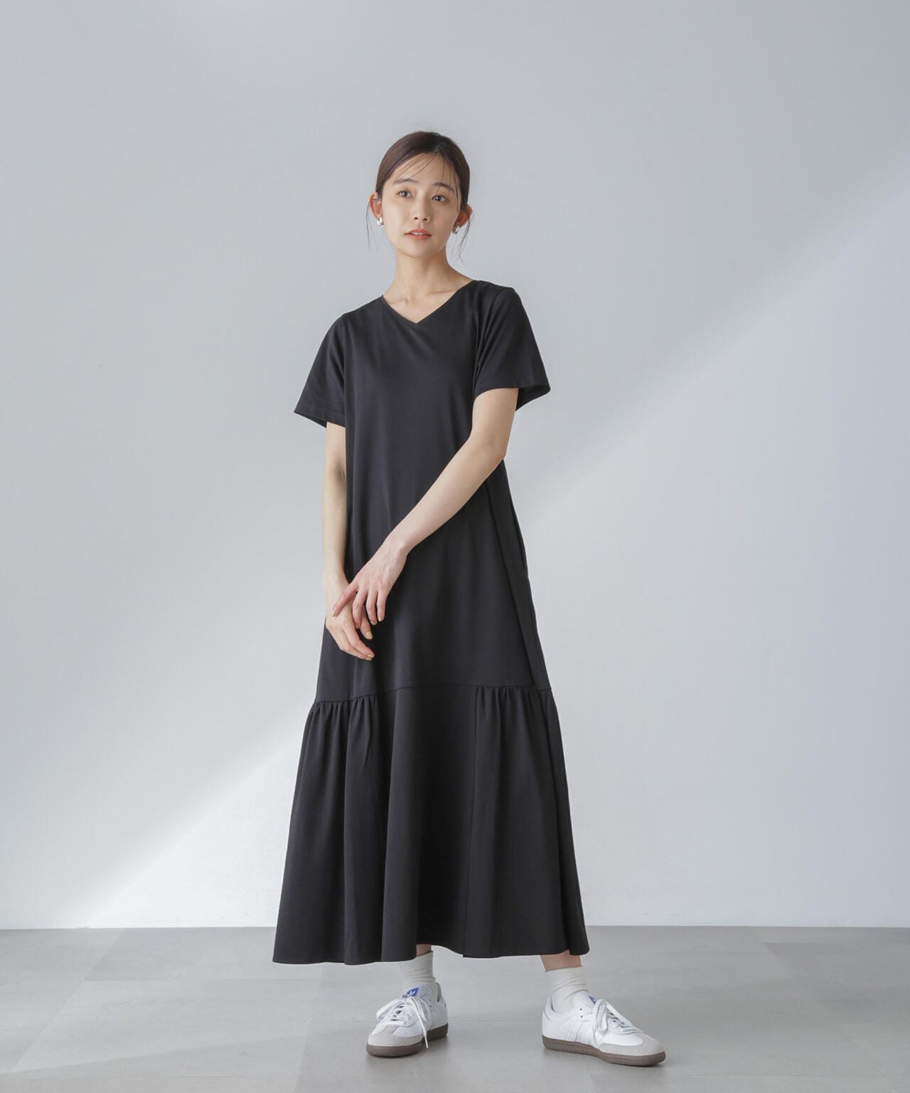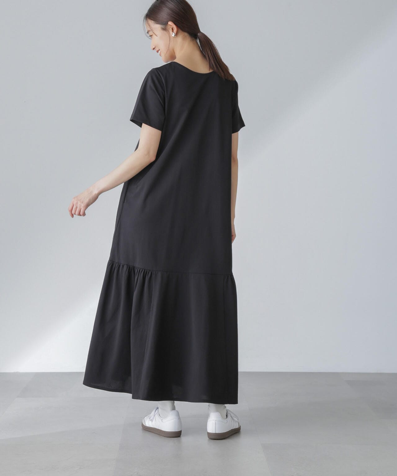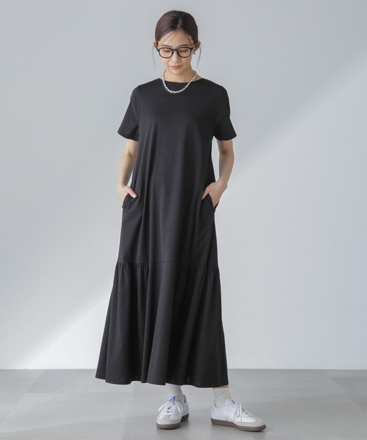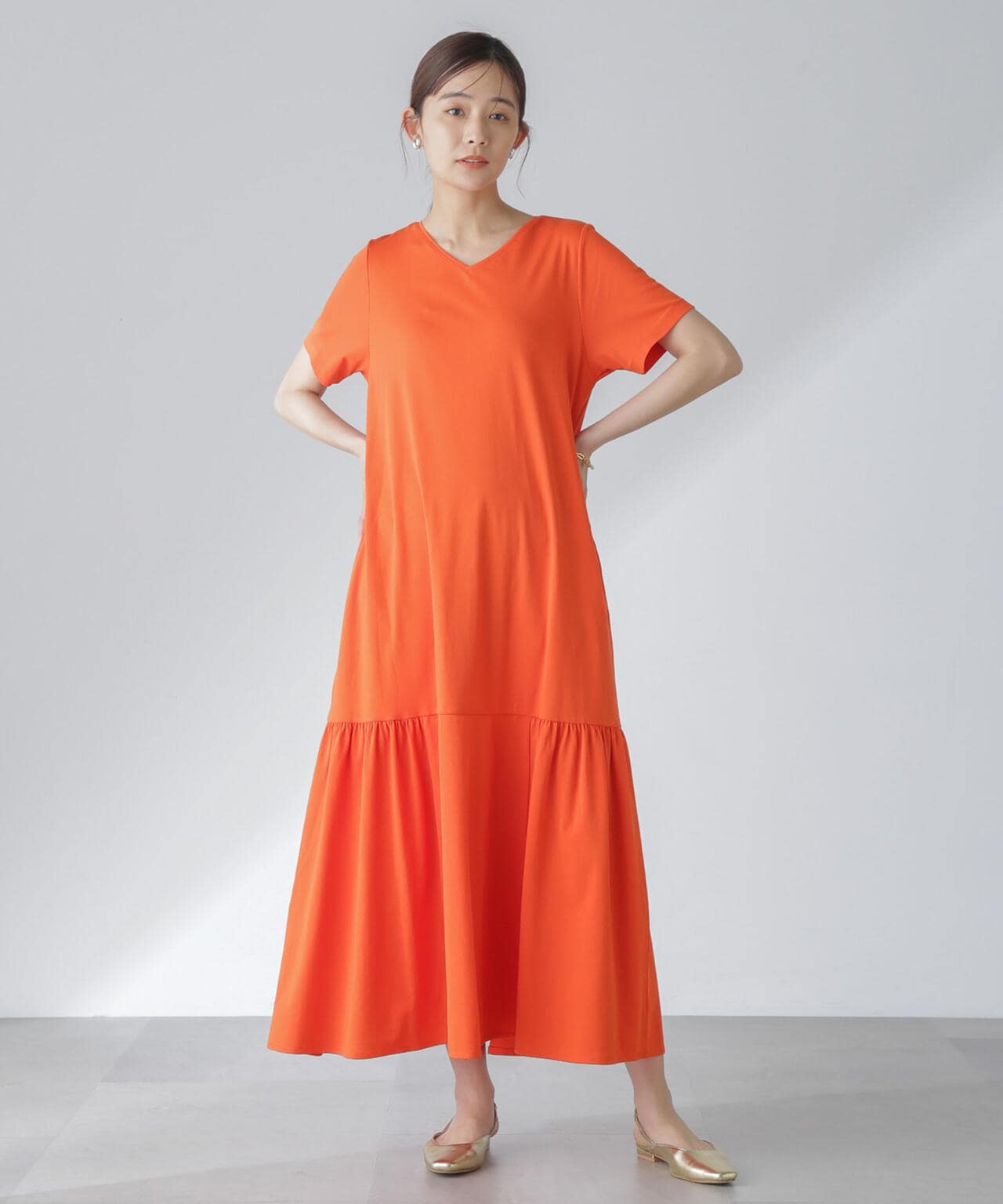 暑い季節にさらっと着られるカットソーワンピース。ボートネックとVネック、前後2wayで着用可能な一着。ティアード切替デザインで下にボリュームのあるAラインシルエットで、上身はすっきり見えするのも嬉しいポイント◎。コットンジャケットやリネンシャツなどカジュアルな羽織りと合わせるスタイリングがおすすめです!