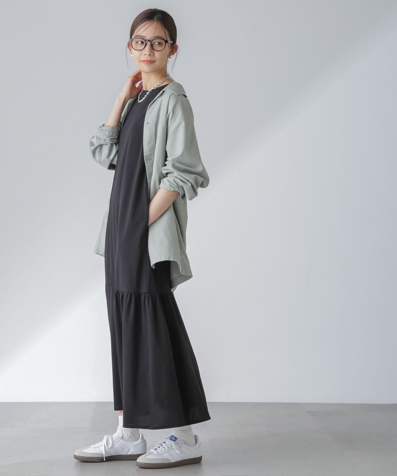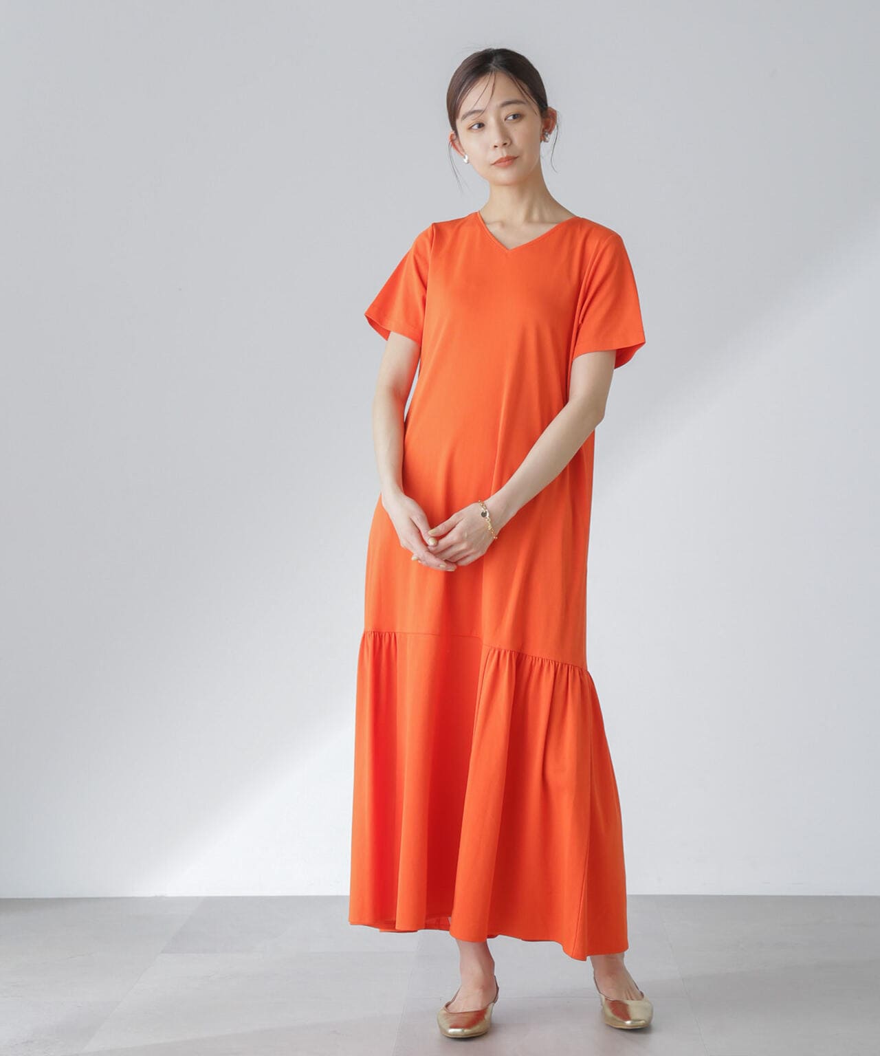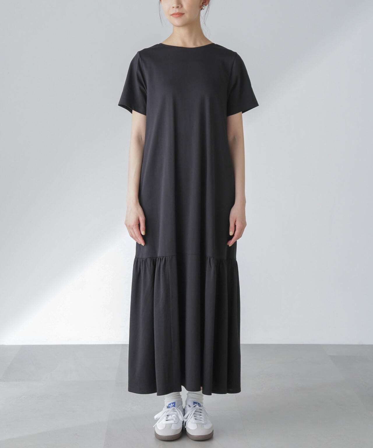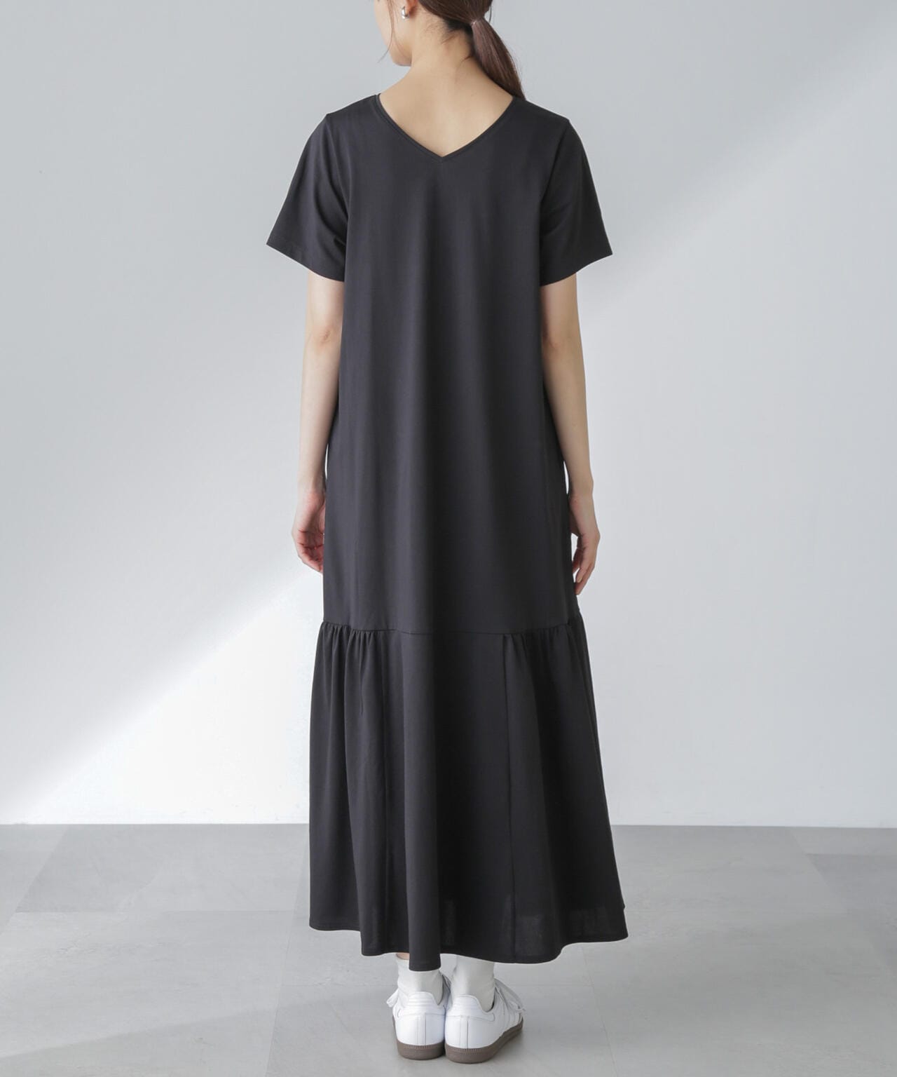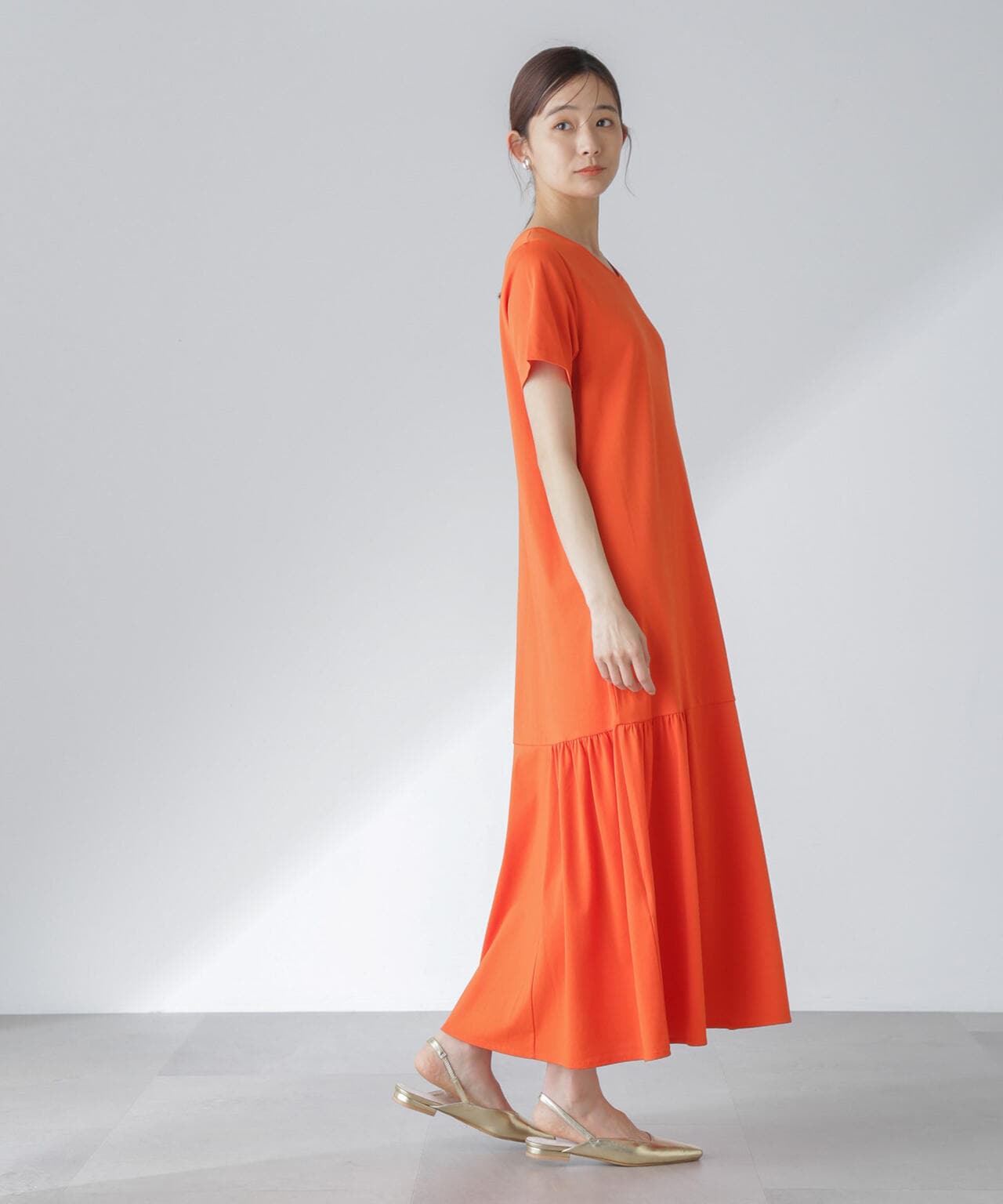 暑い季節にさらっと着られるカットソーワンピース。ボートネックとVネック、前後2wayで着用可能な一着。ティアード切替デザインで下にボリュームのあるAラインシルエットで、上身はすっきり見えするのも嬉しいポイント◎。コットンジャケットやリネンシャツなどカジュアルな羽織りと合わせるスタイリングがおすすめです!