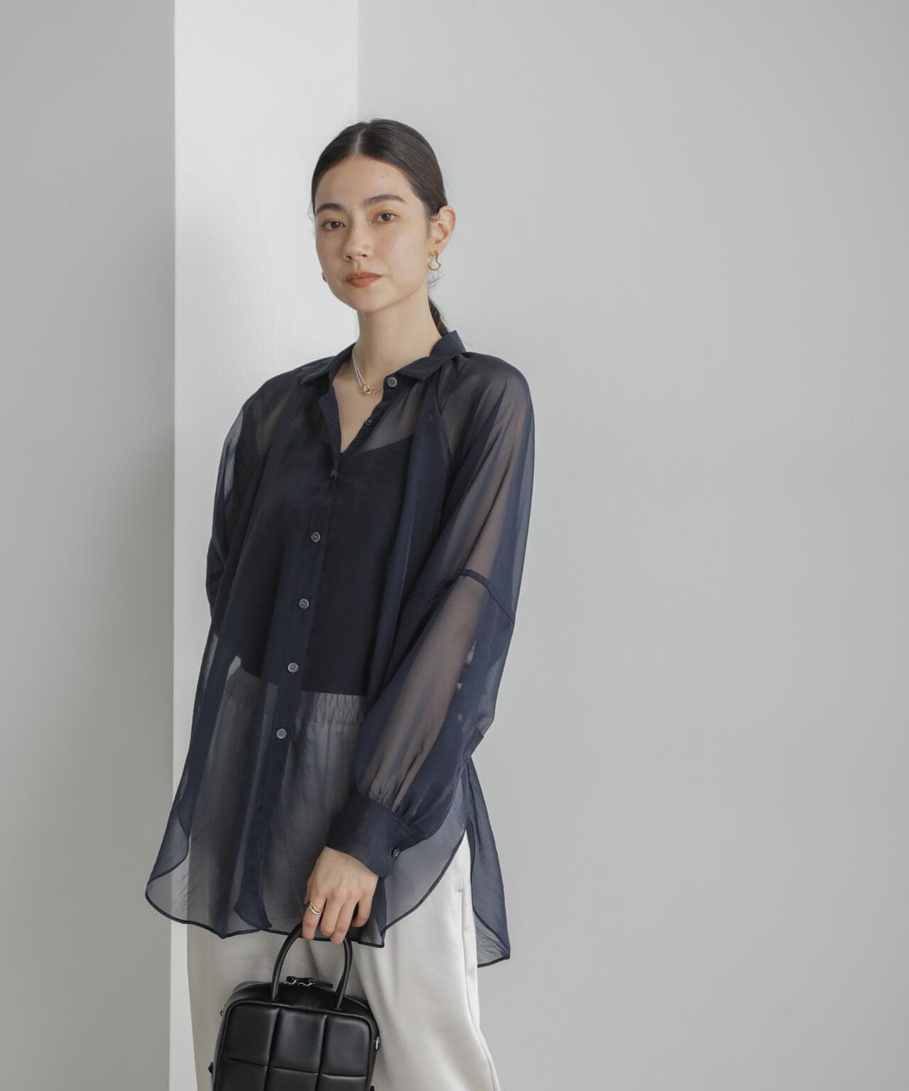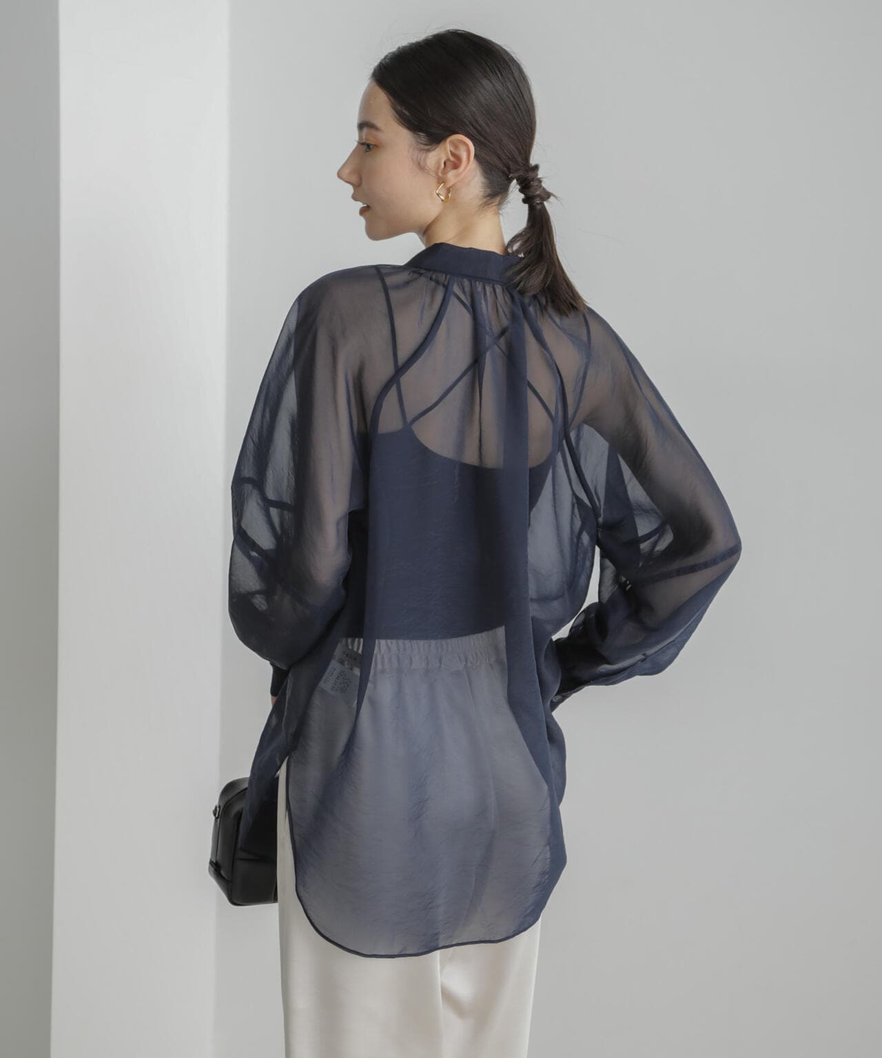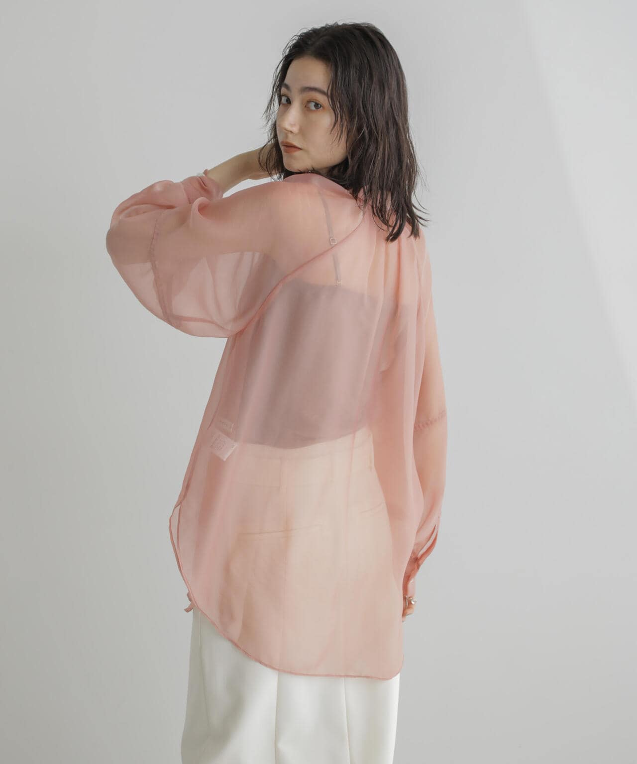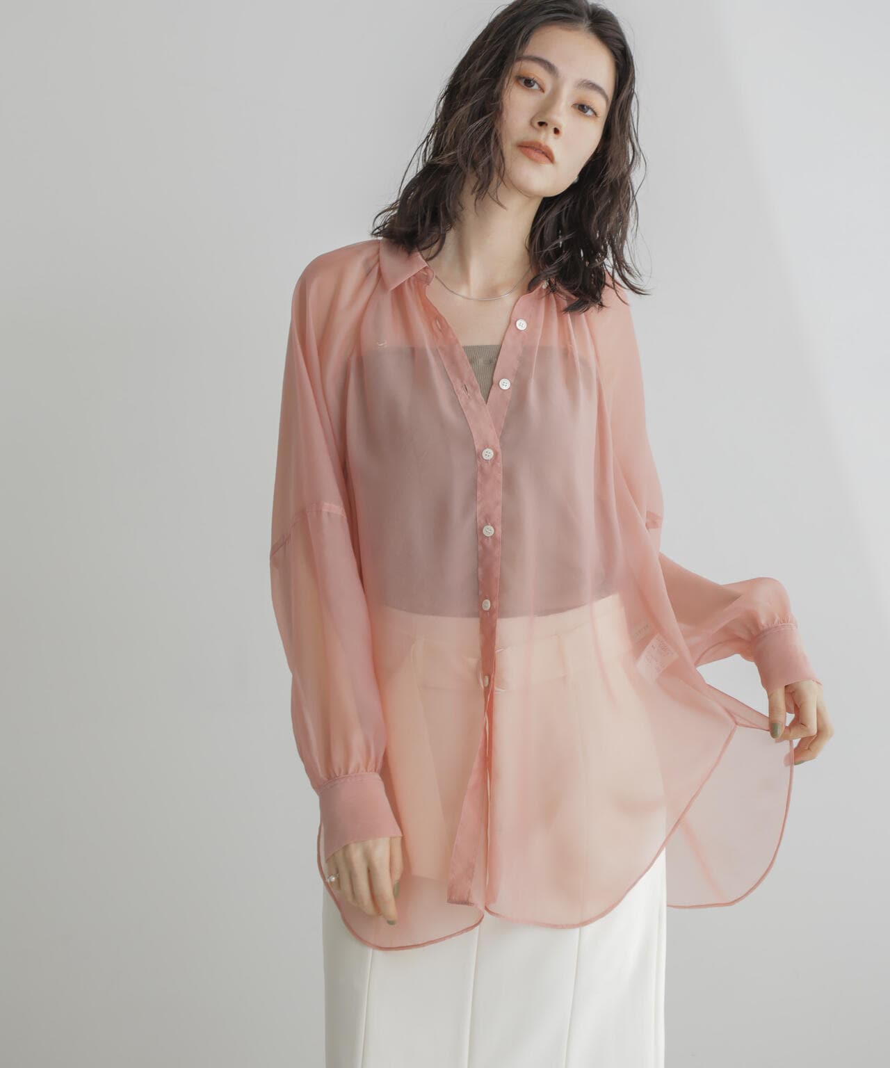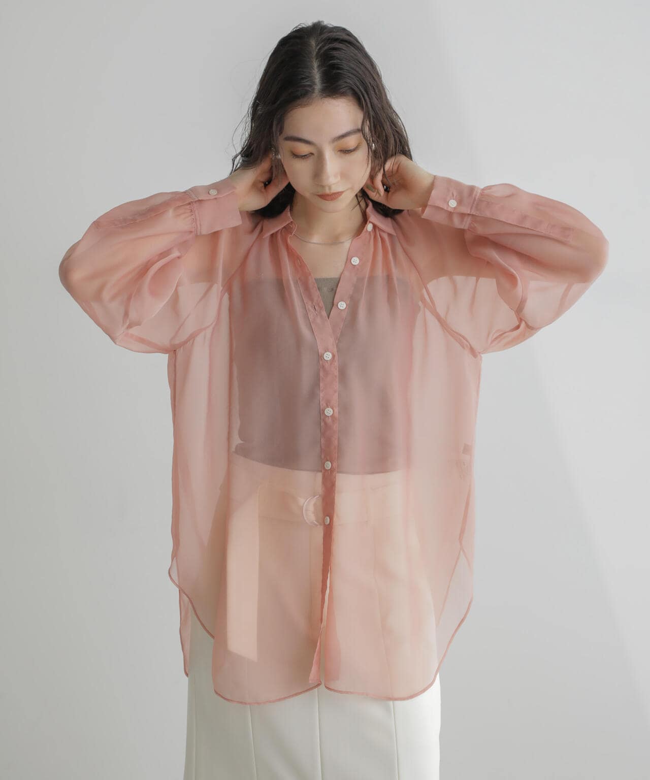 ・色の陰影や煌めきのあるオシャレな透け感のシアーシャツ