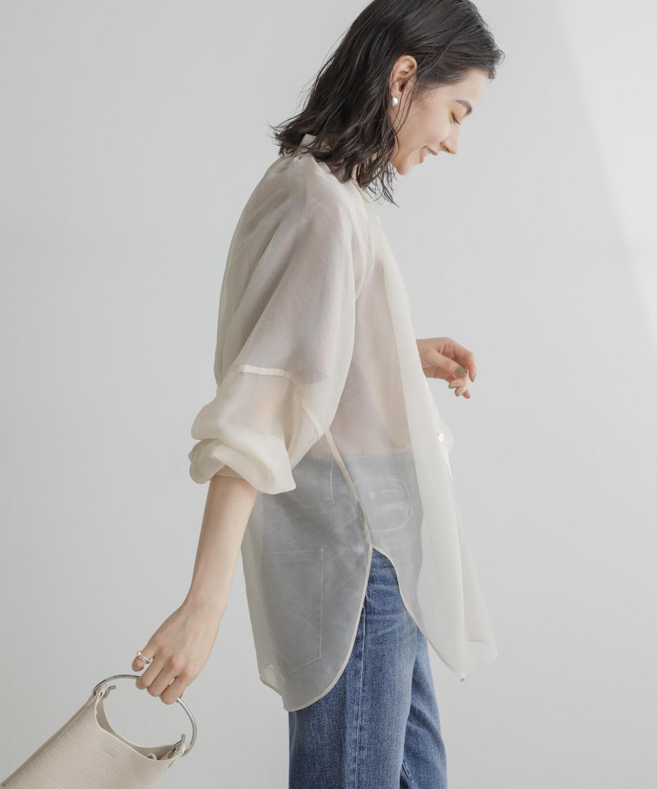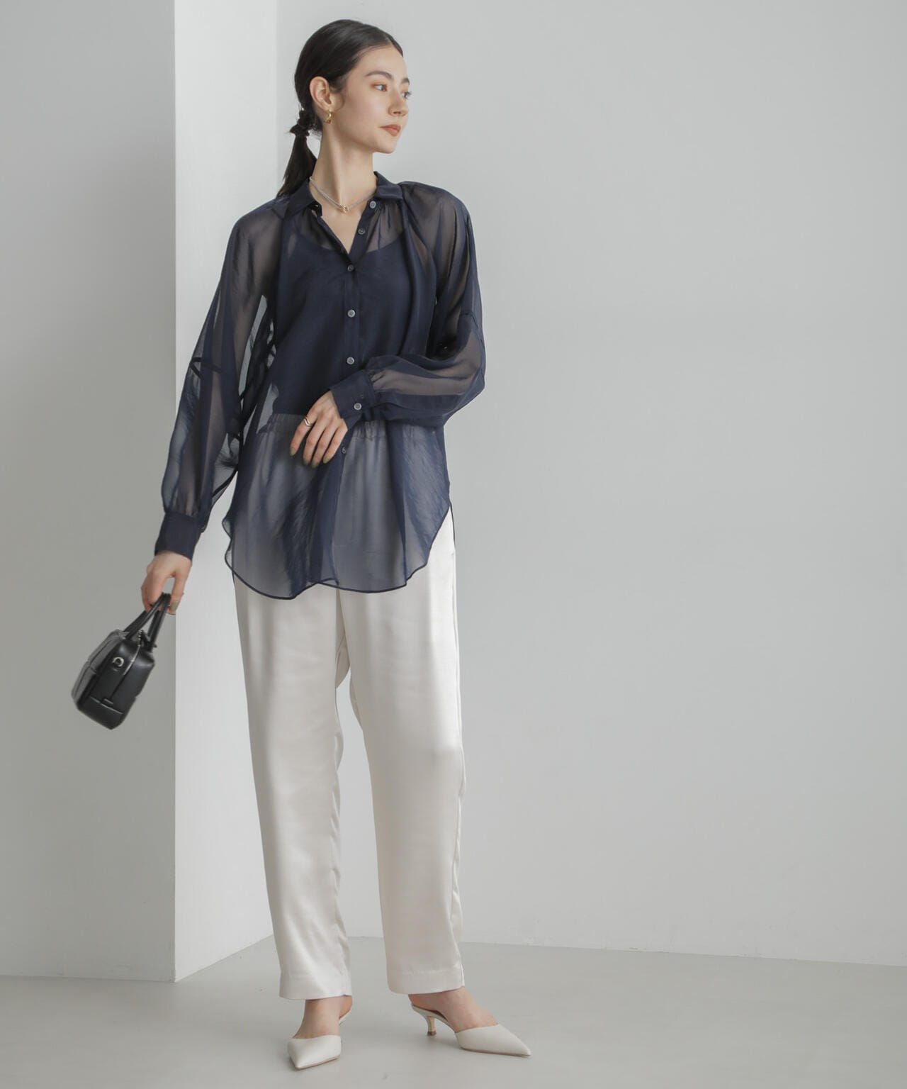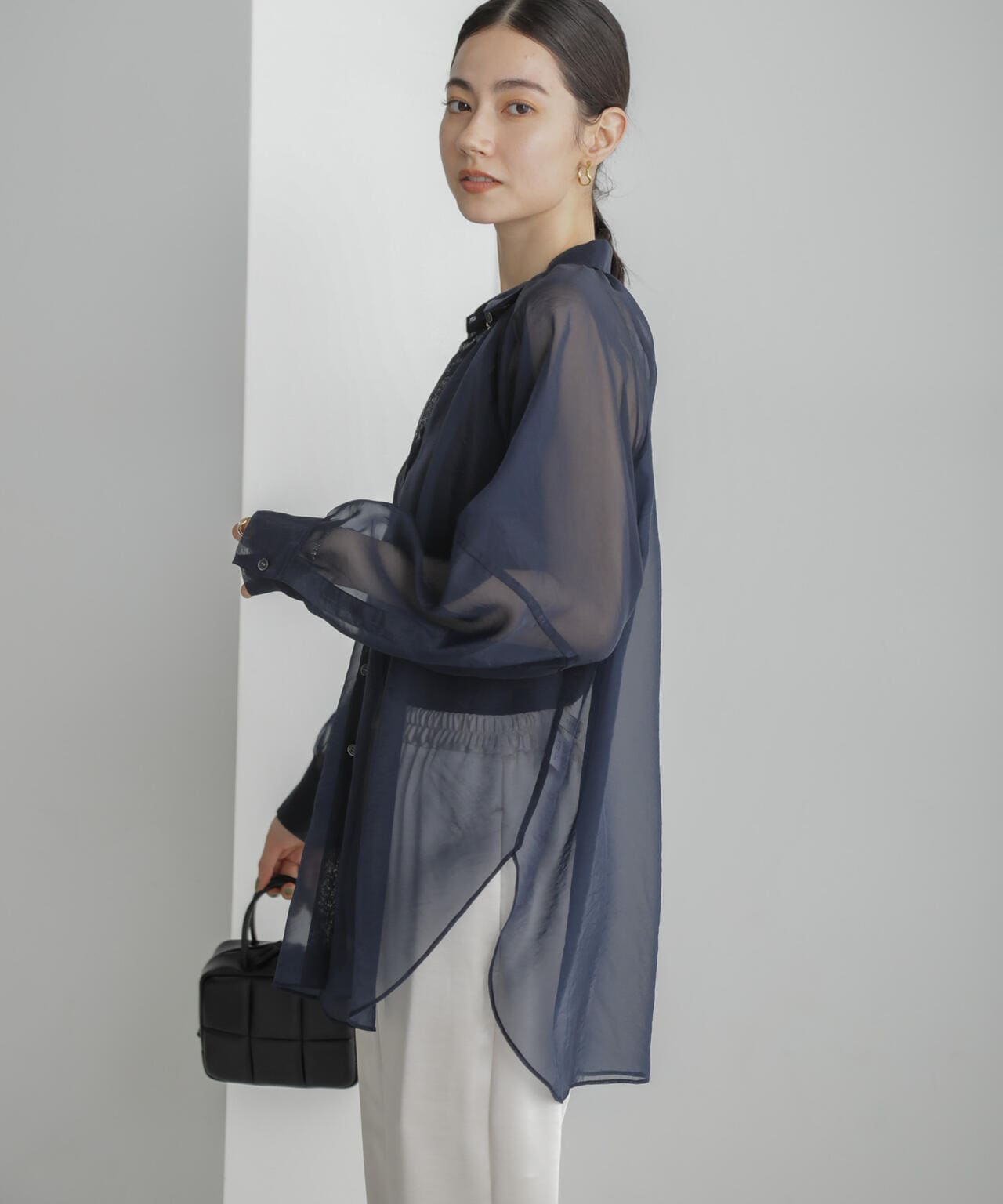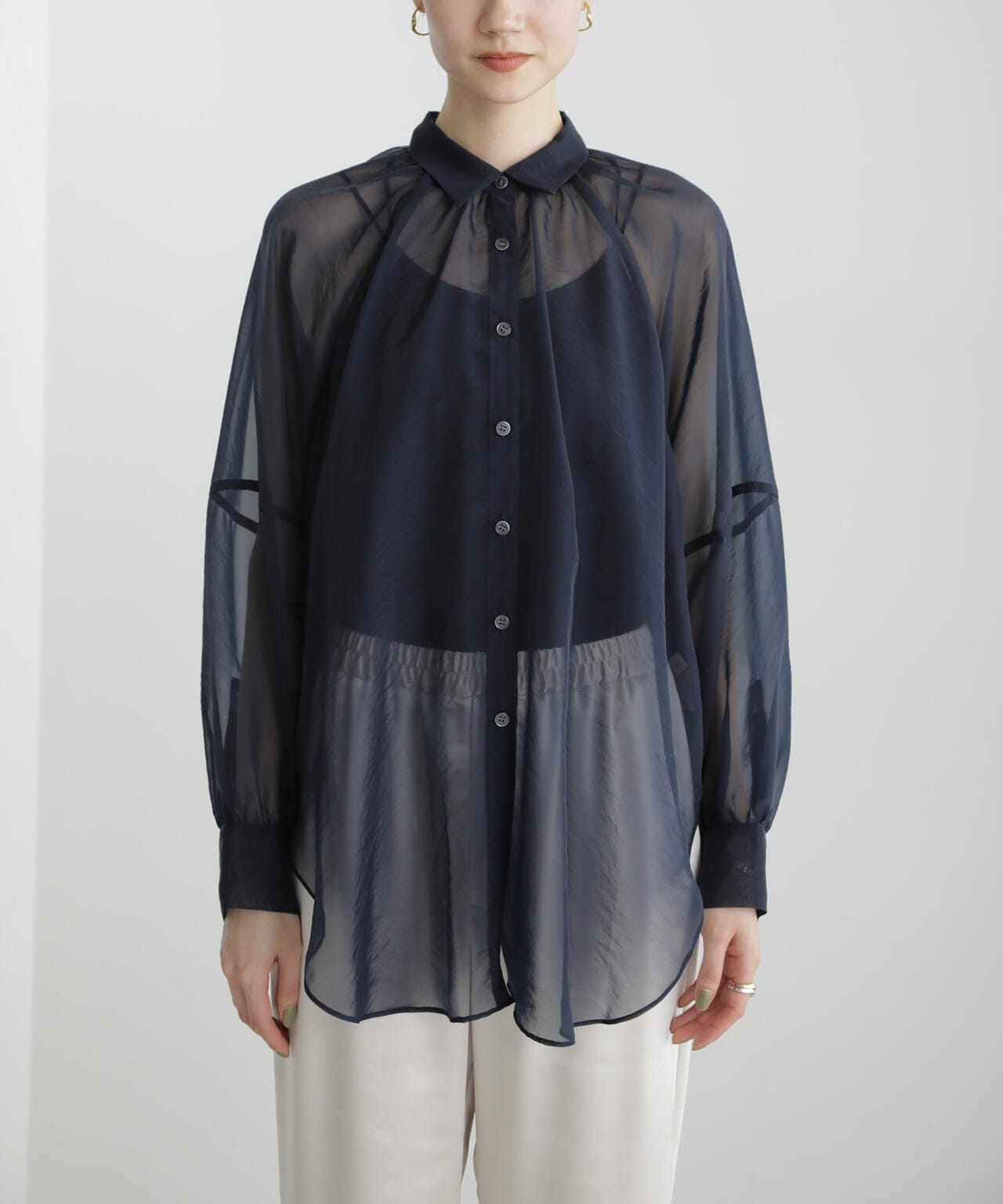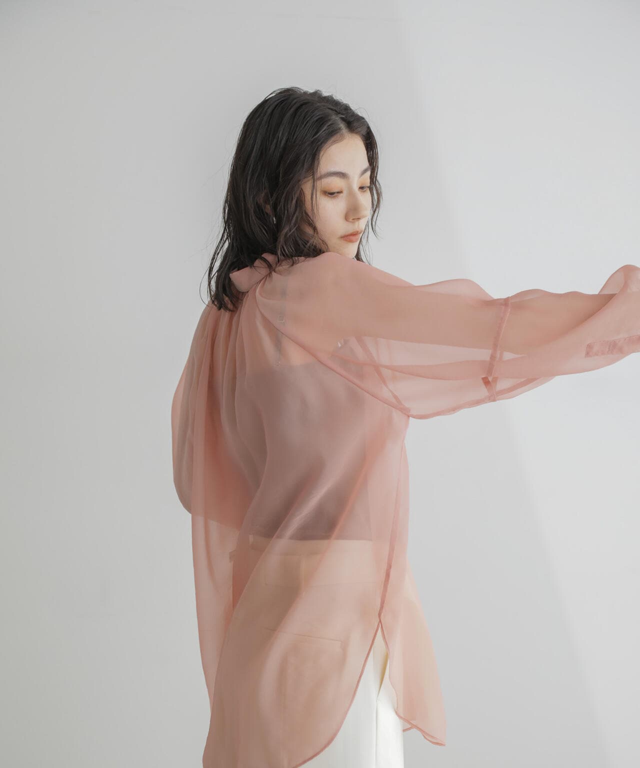・色の陰影や煌めきのあるオシャレな透け感のシアーシャツ