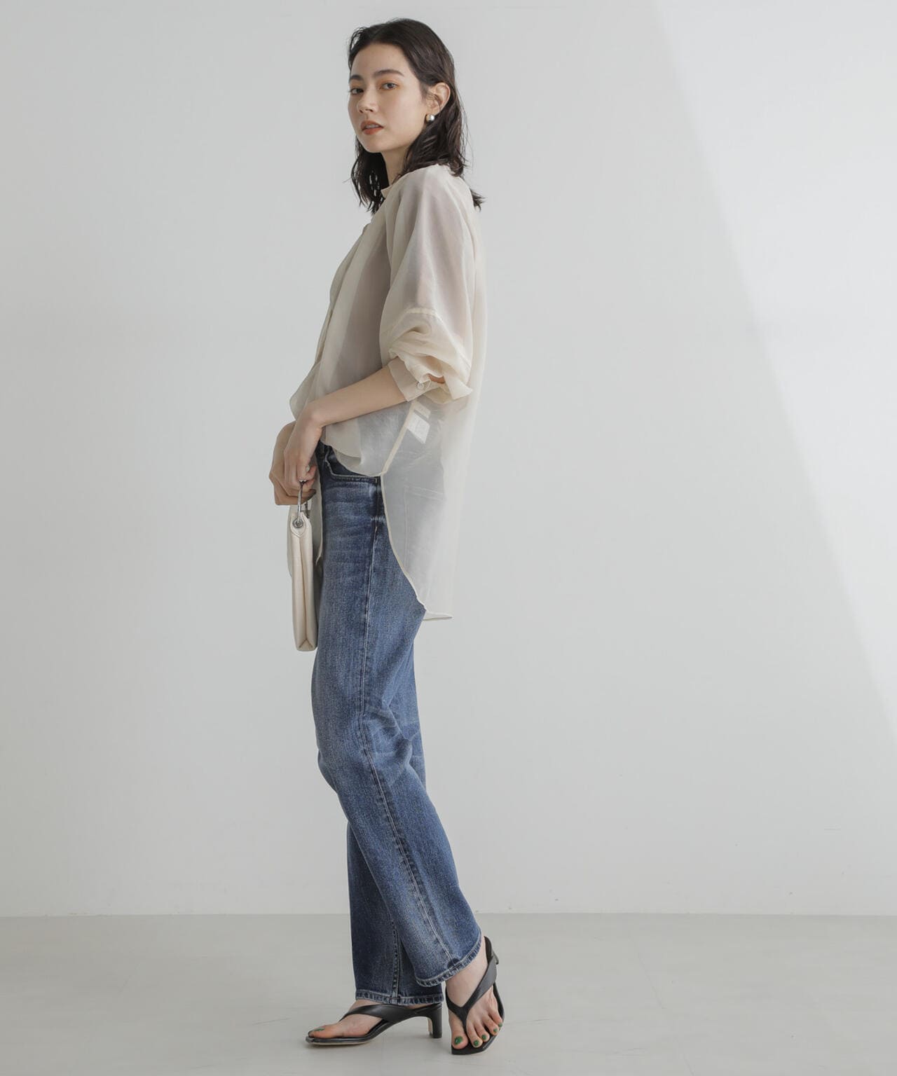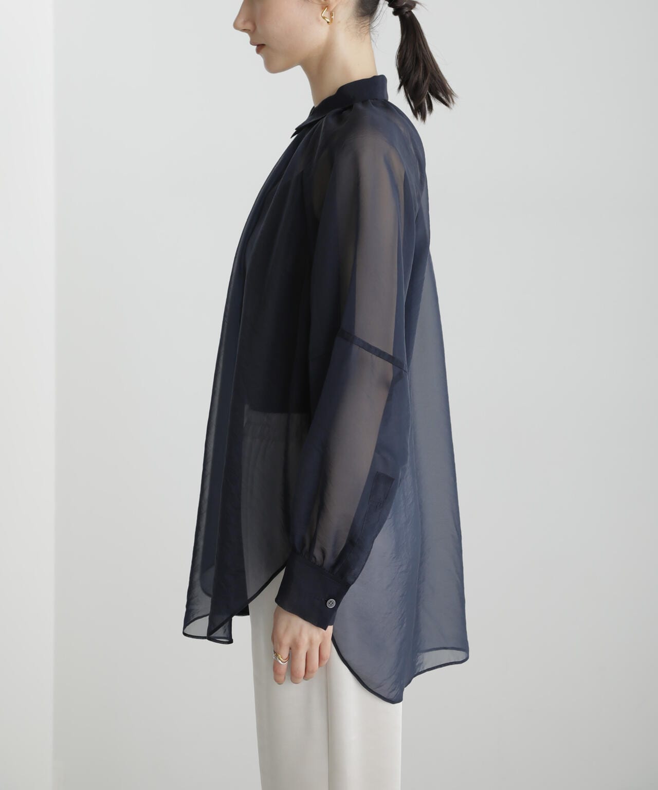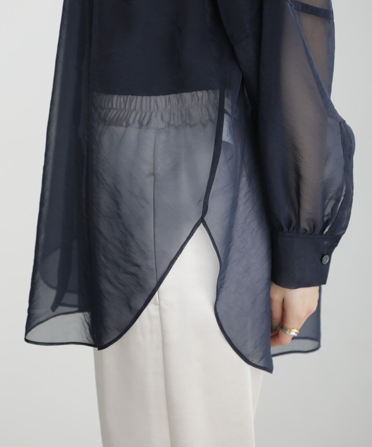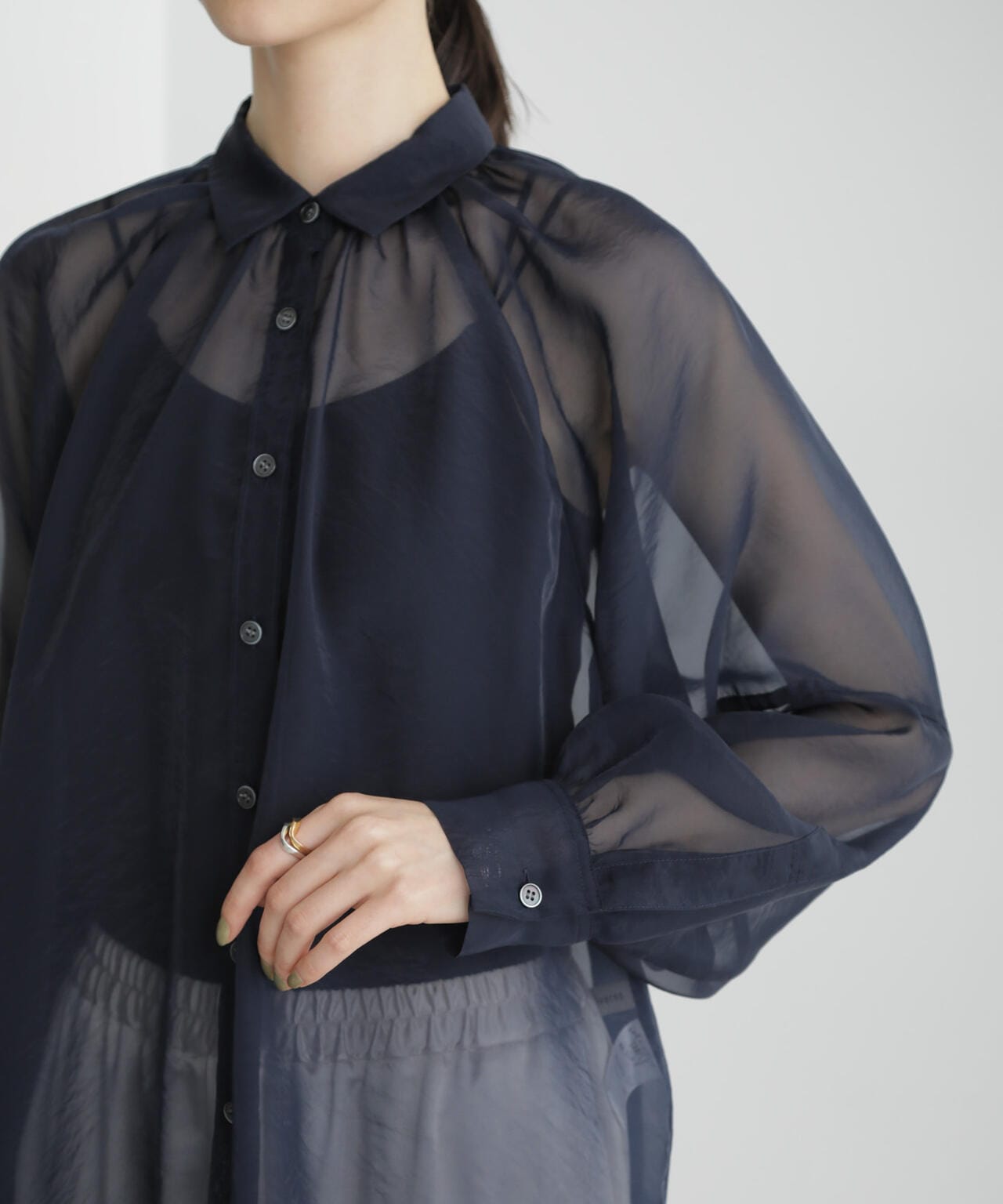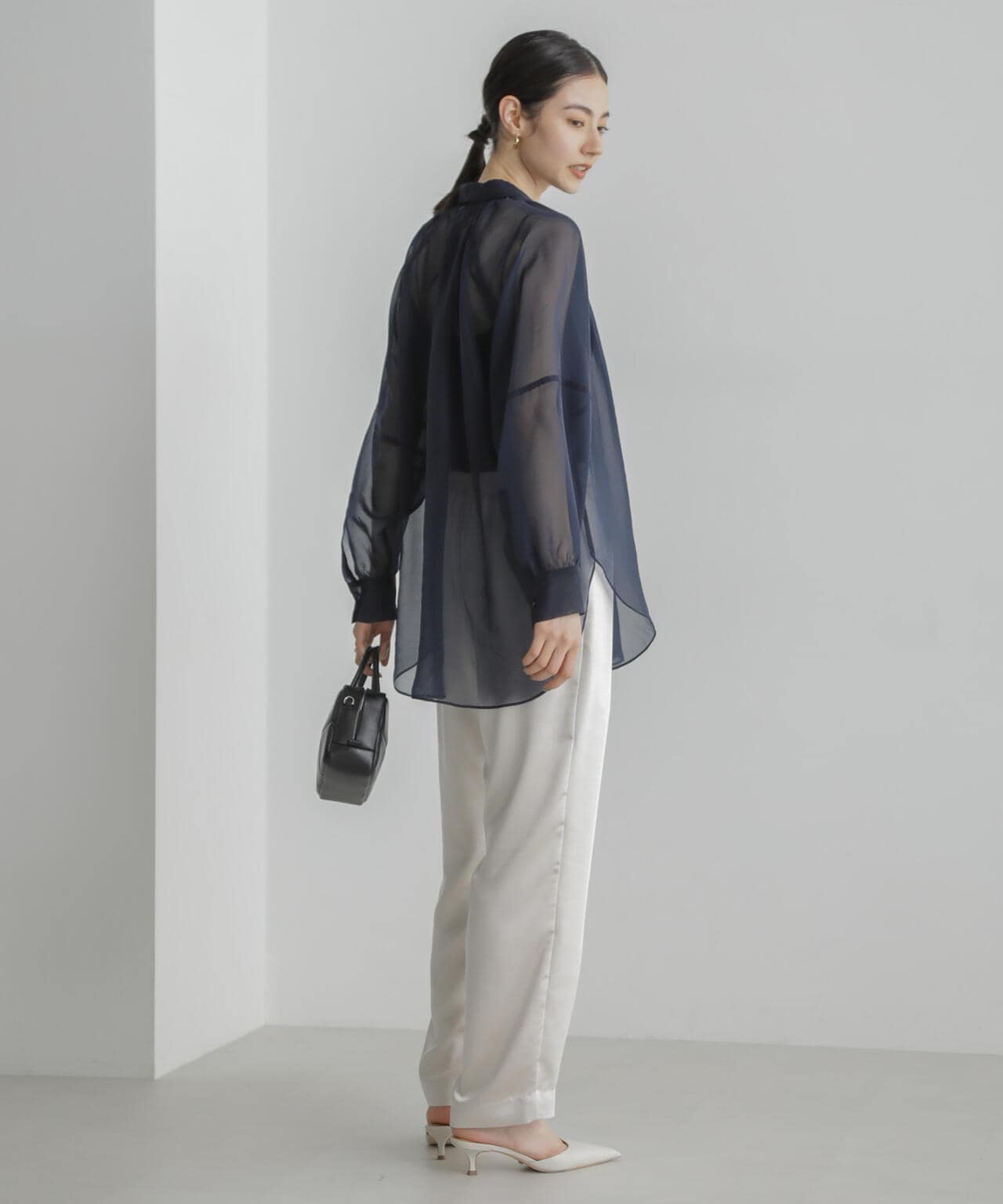 ・色の陰影や煌めきのあるオシャレな透け感のシアーシャツ