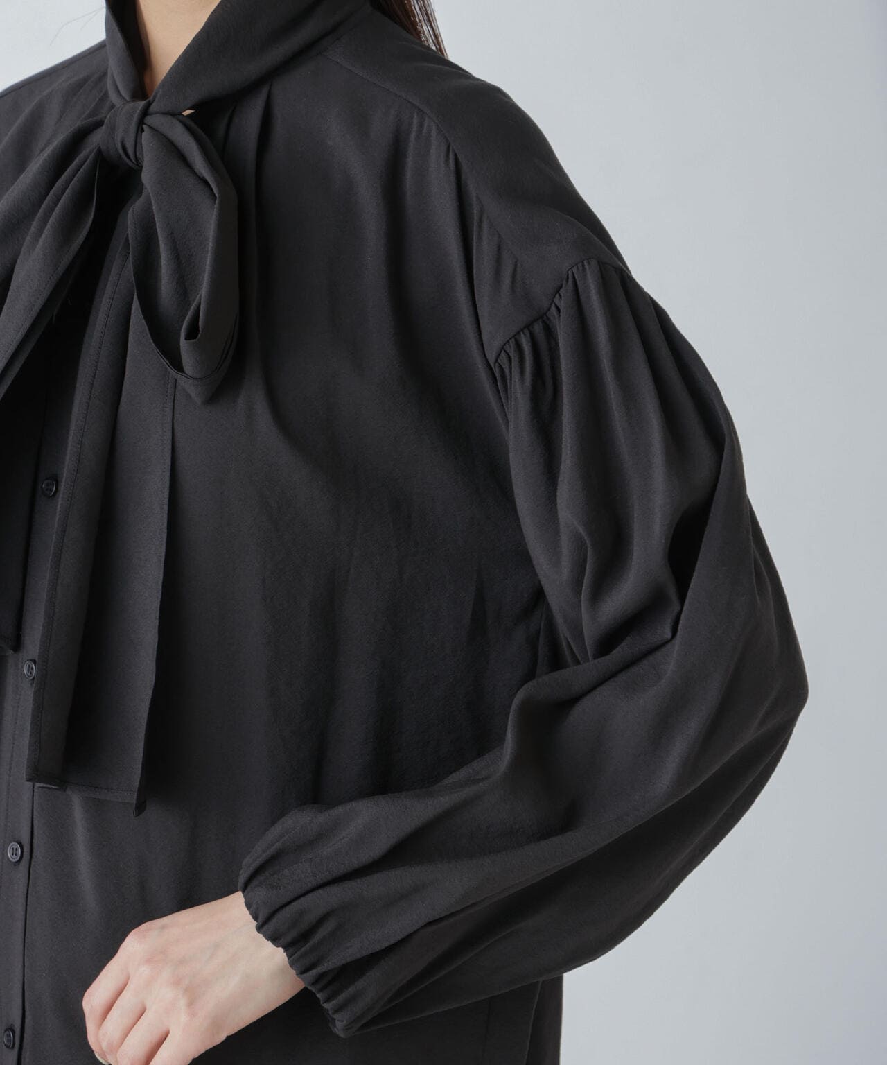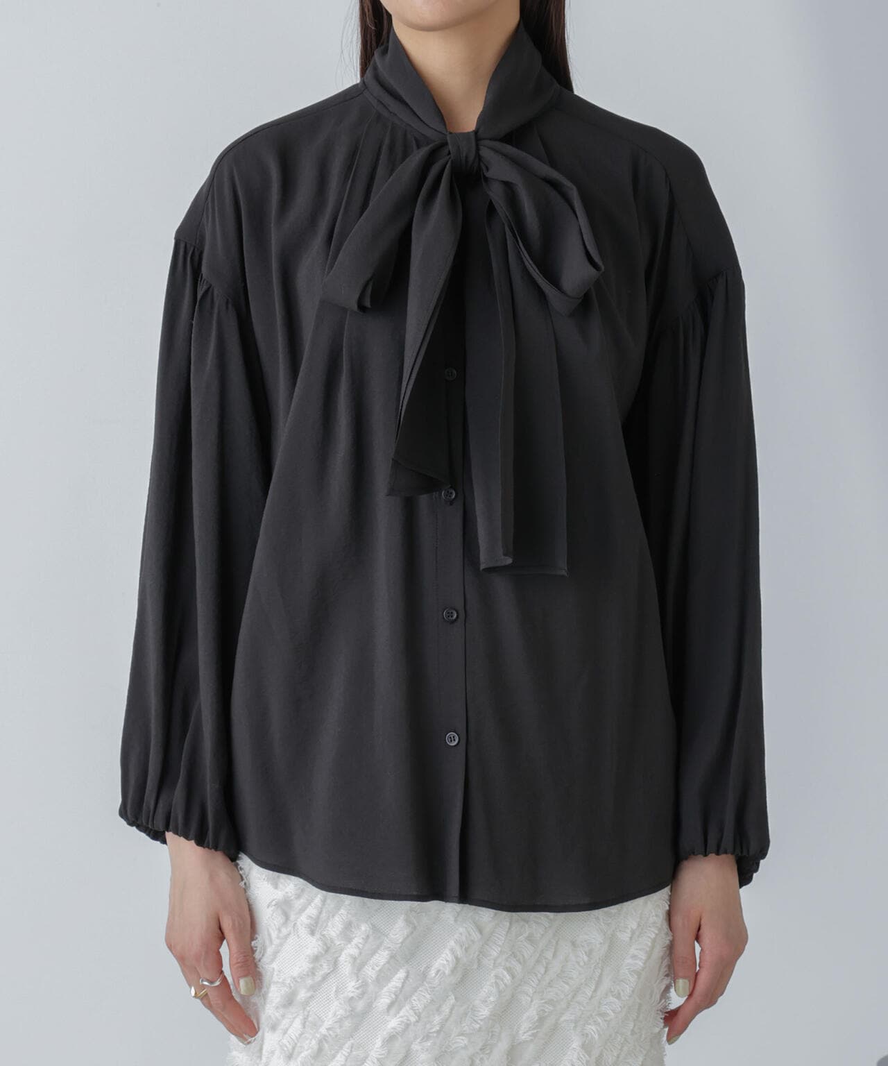 ・顔周りがクラシカルで華やかな印象に仕上がるリボンタイブラウス