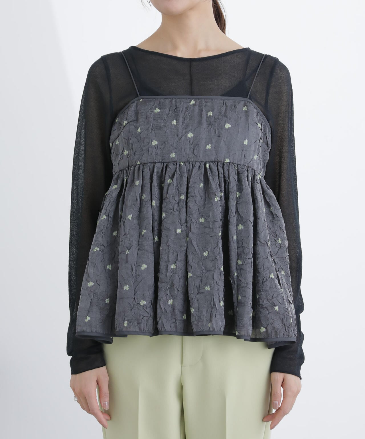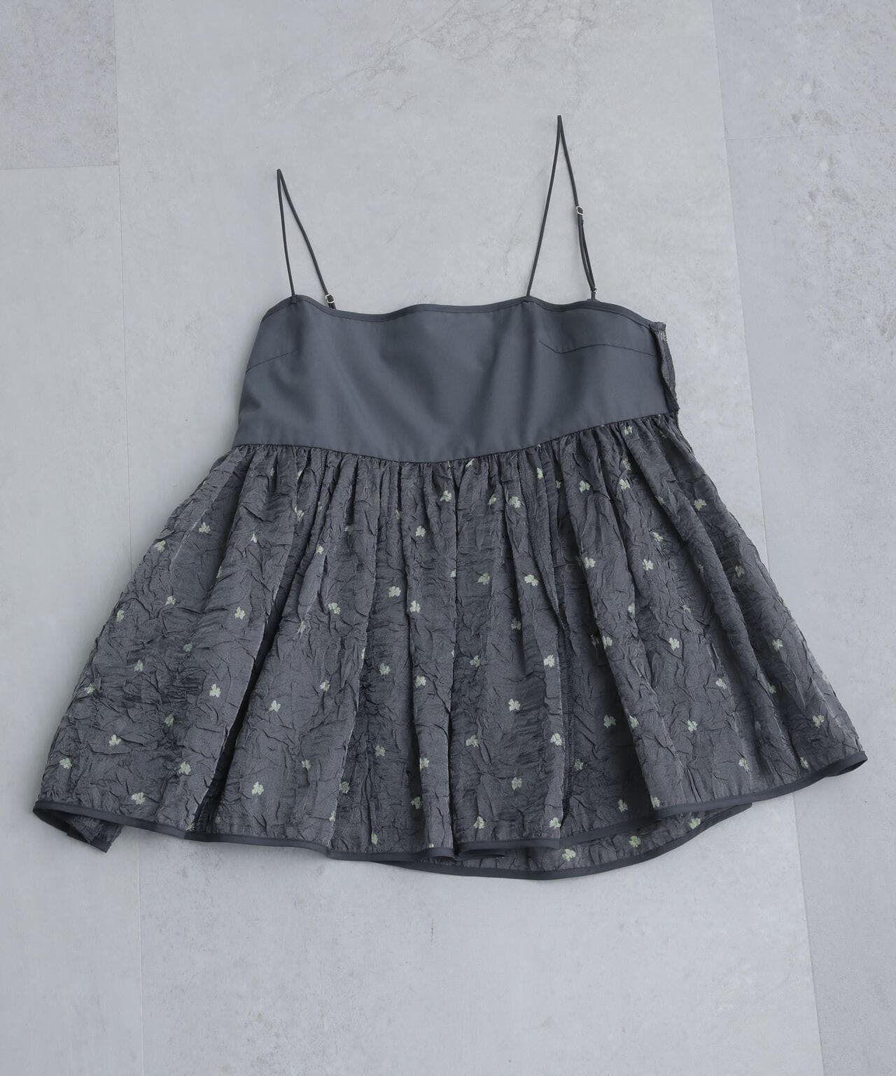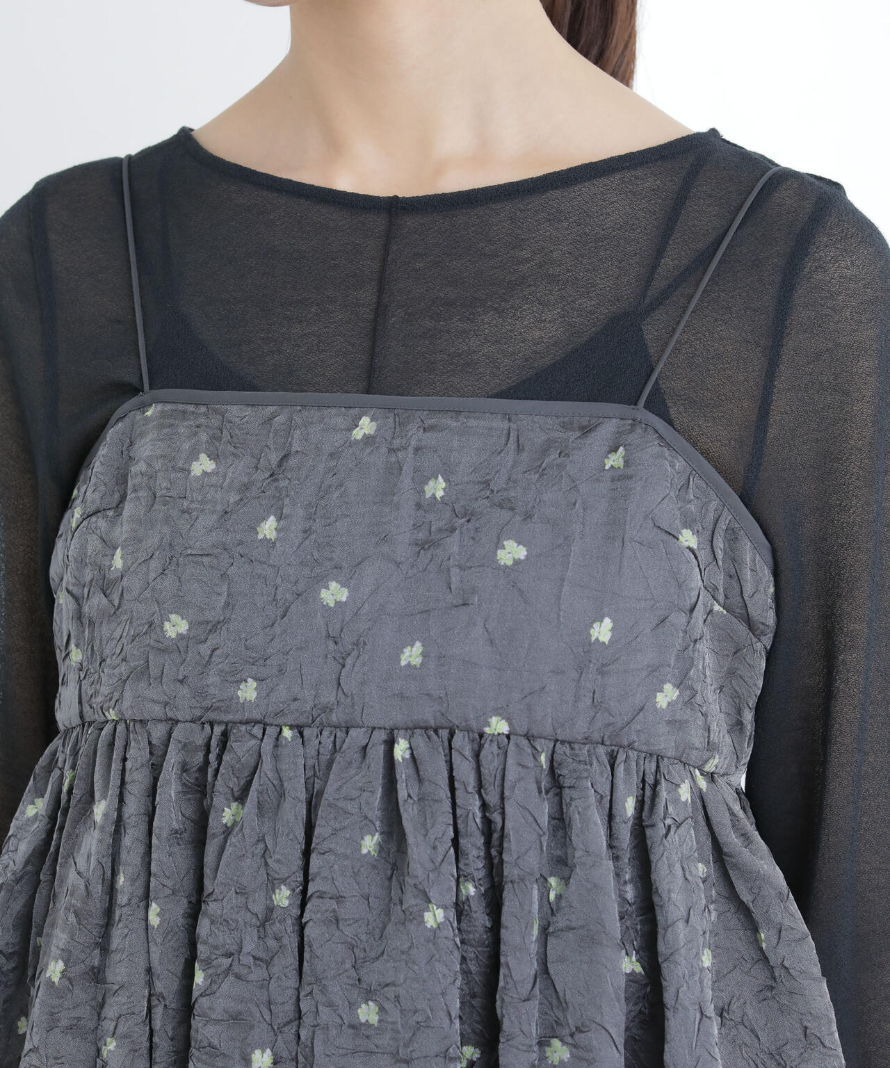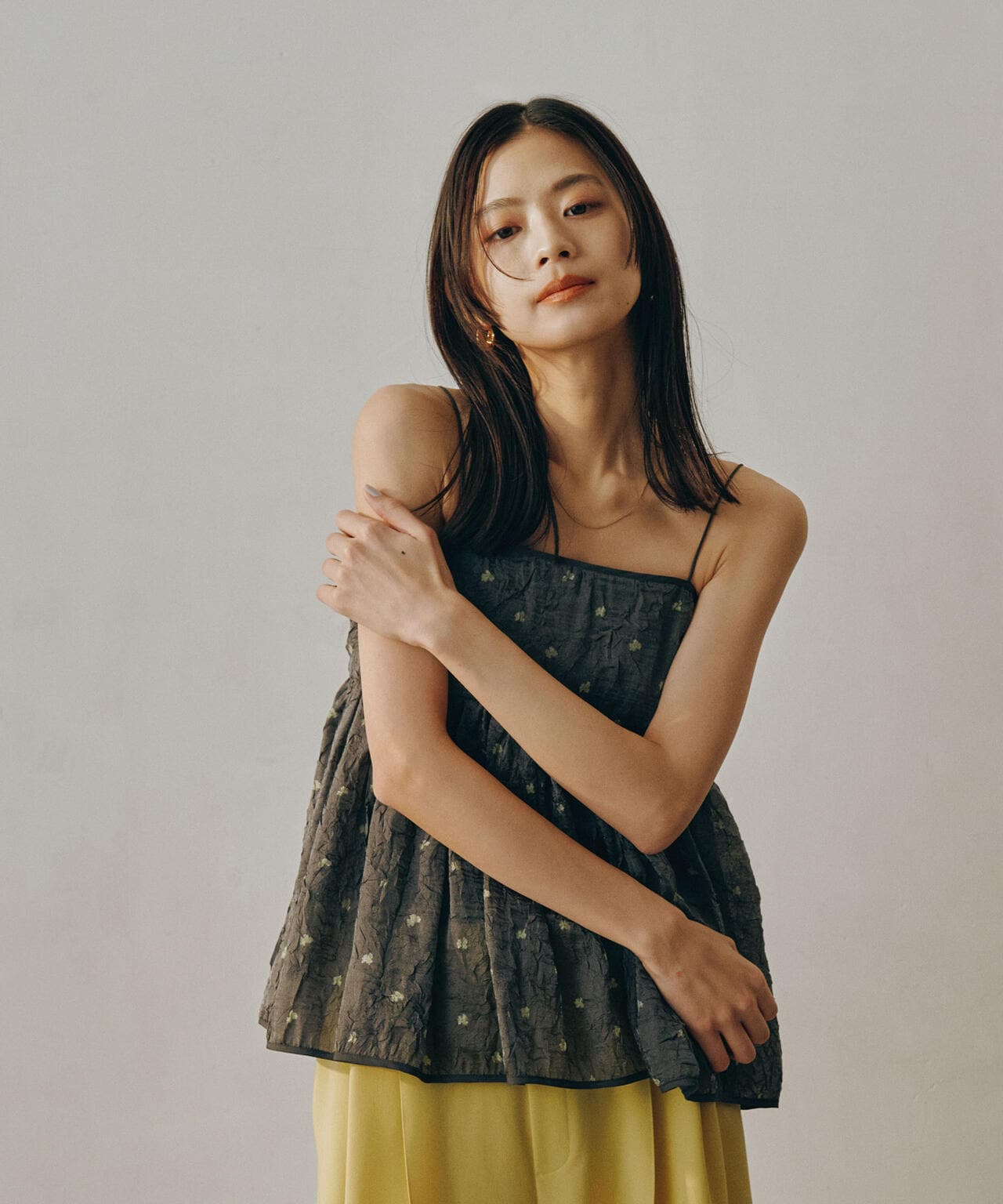 ・表面変化のあるシアープリント素材で仕立てたキャミソール