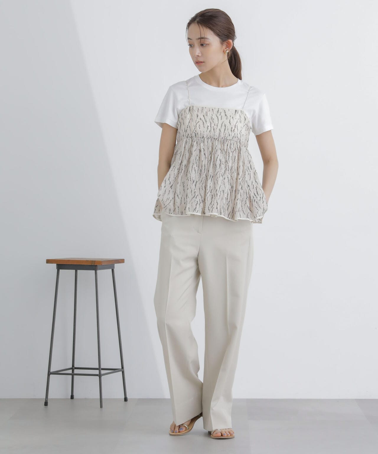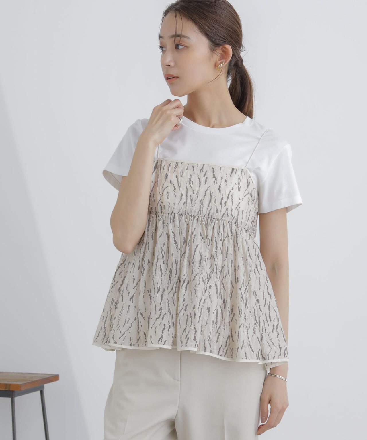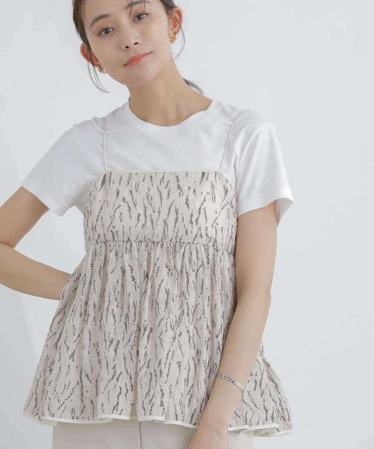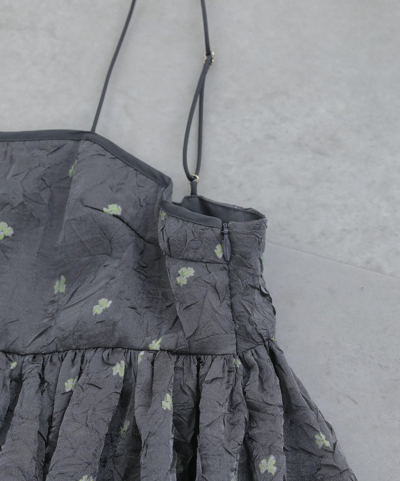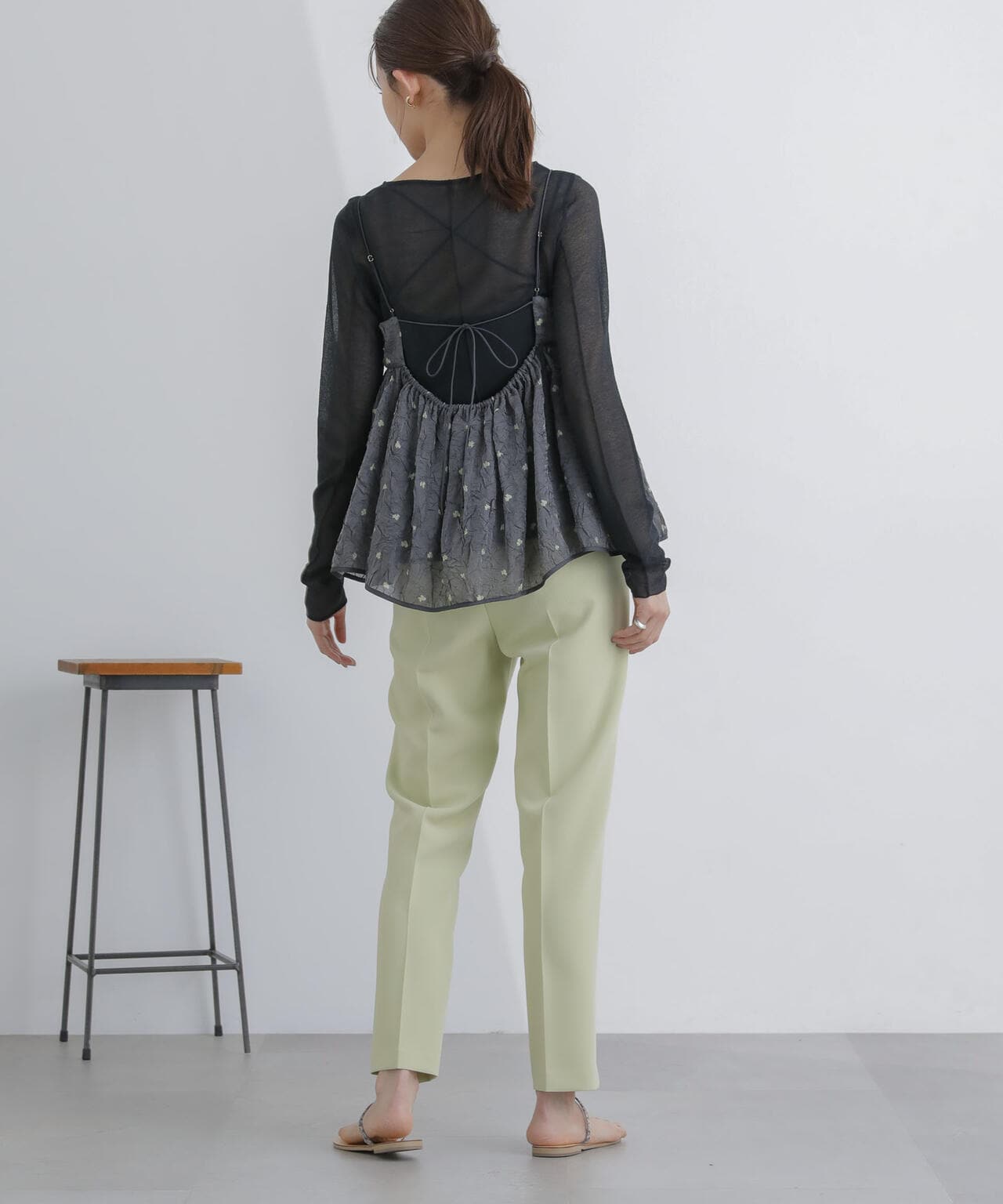 ・表面変化のあるシアープリント素材で仕立てたキャミソール