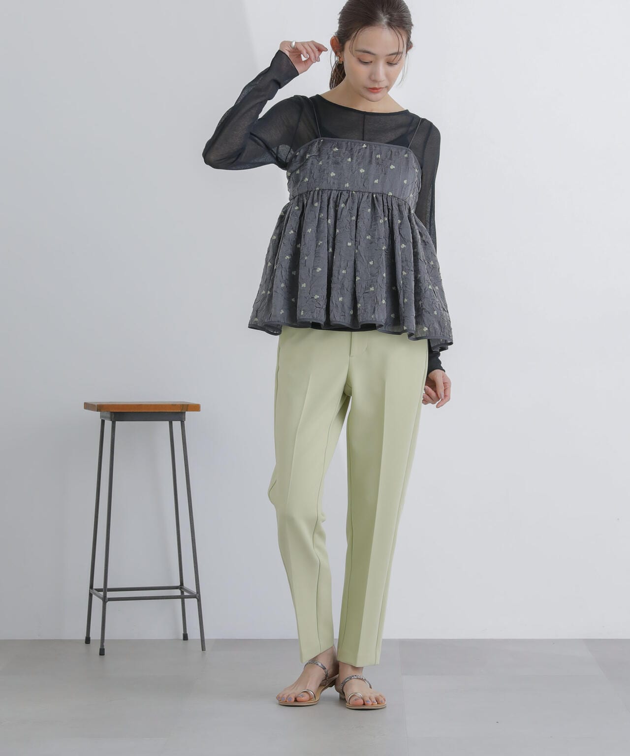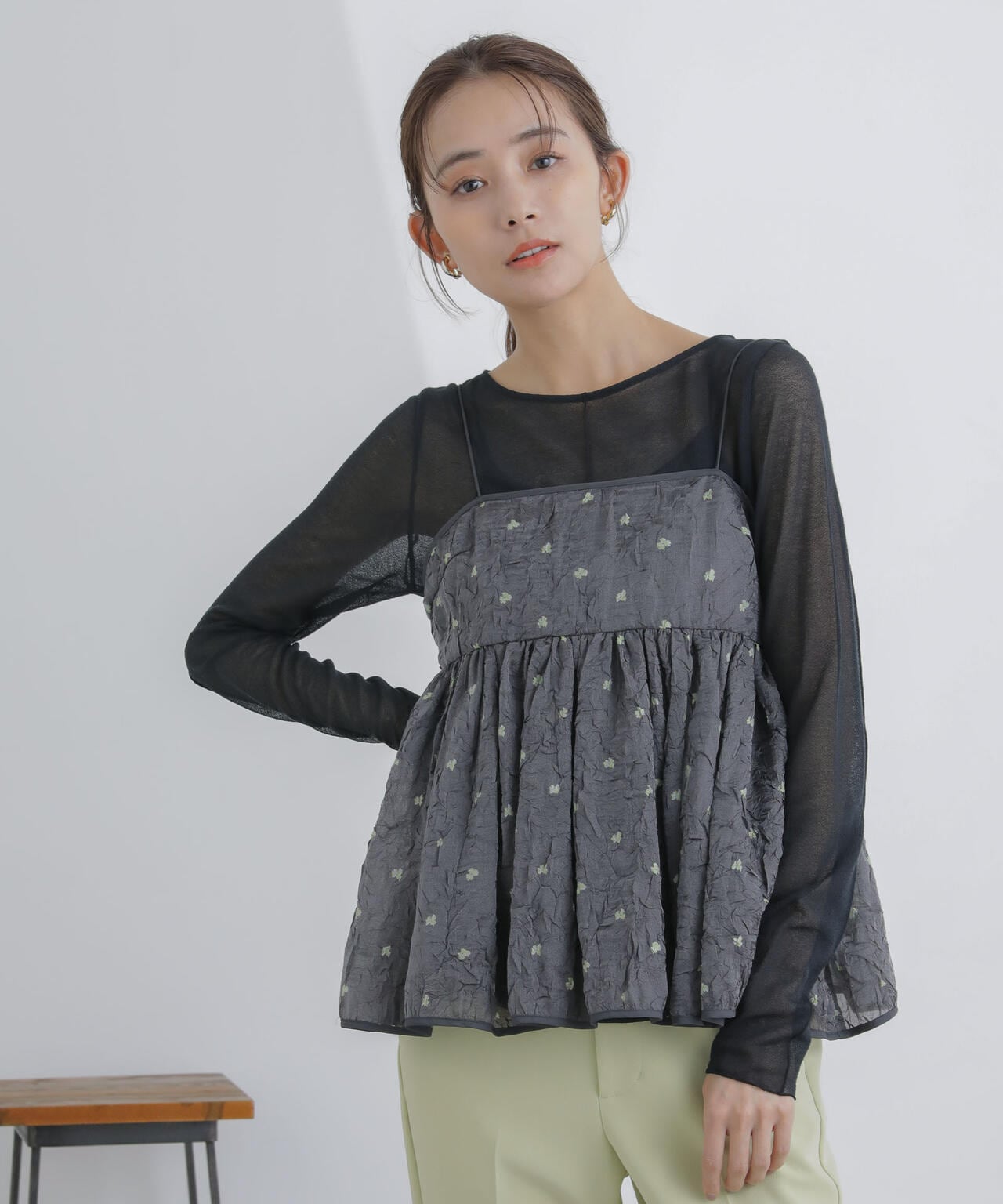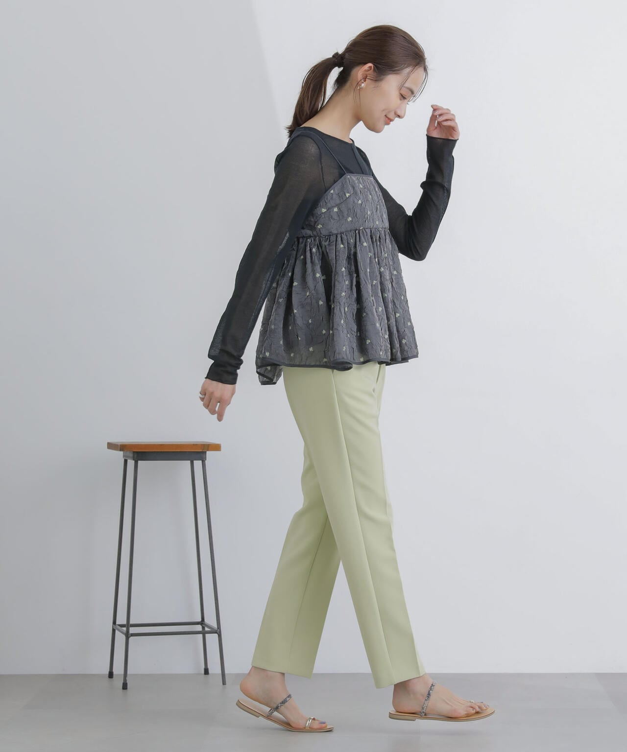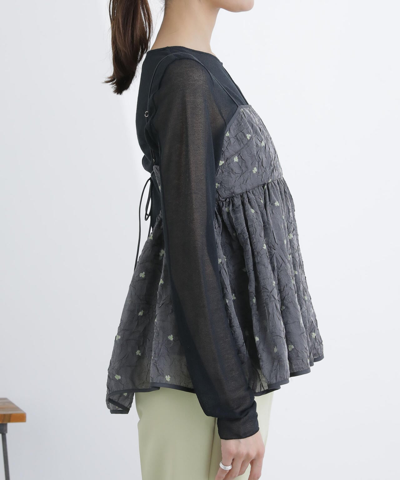 ・表面変化のあるシアープリント素材で仕立てたキャミソール
