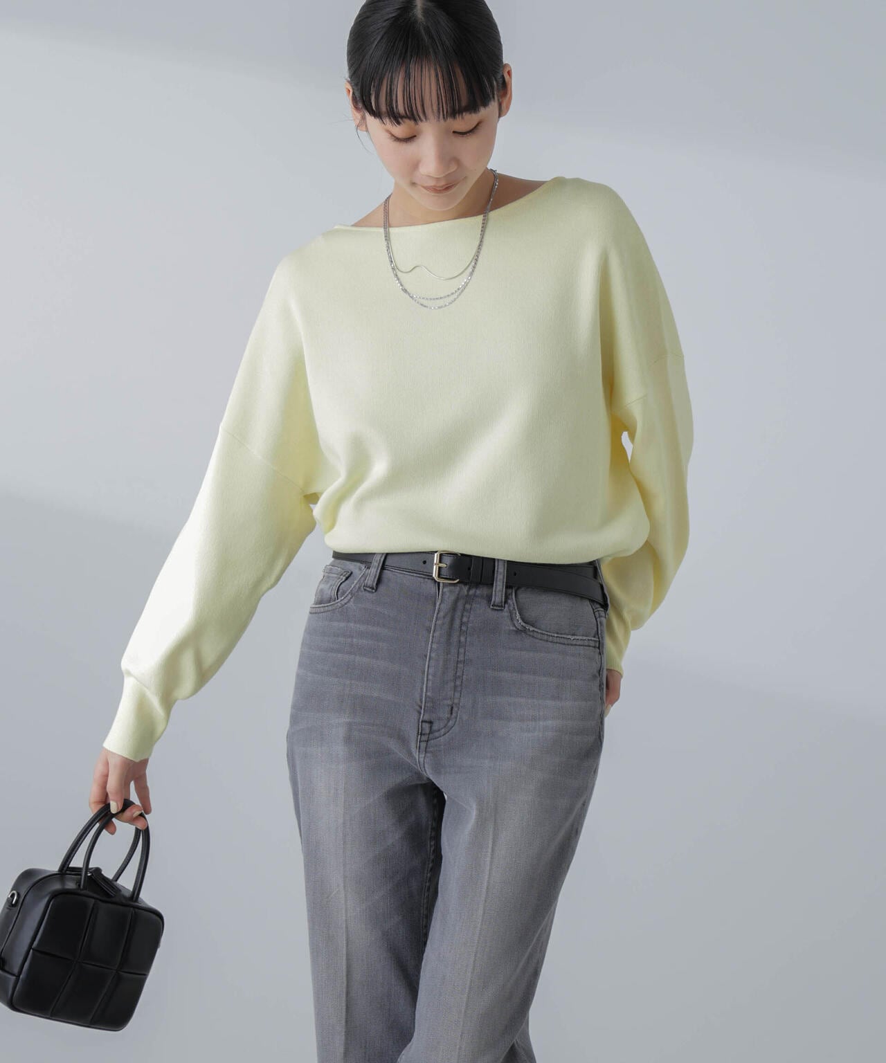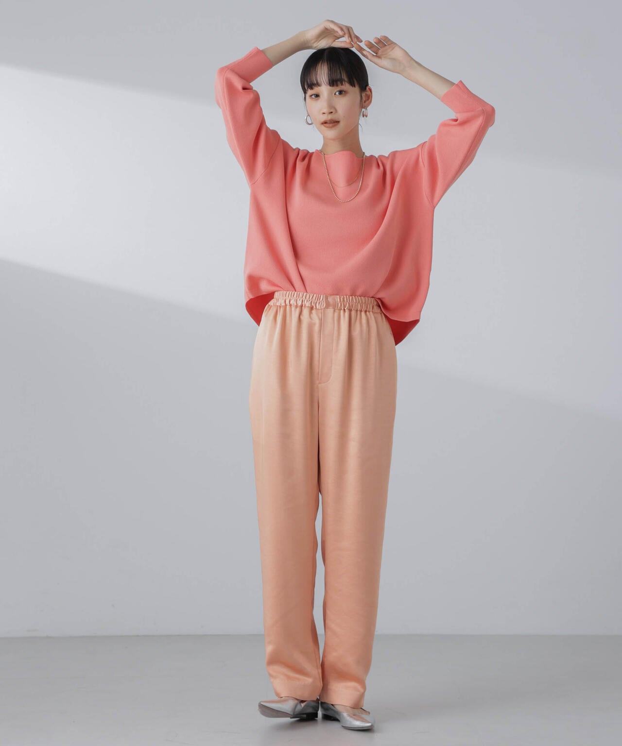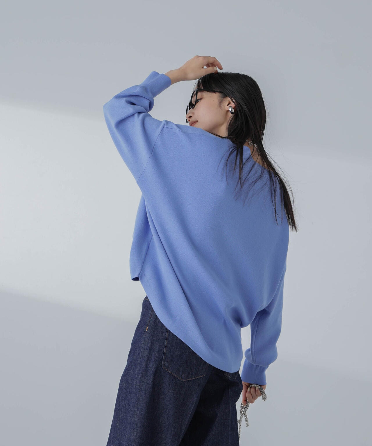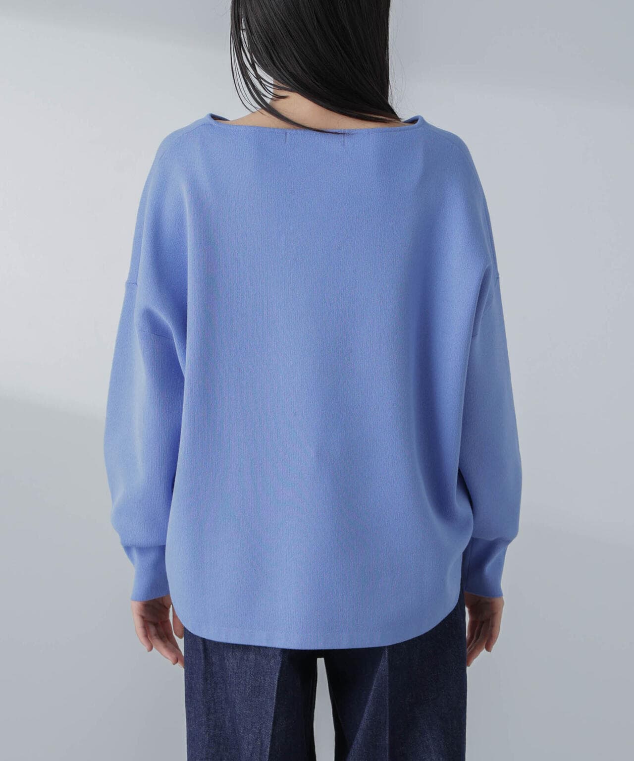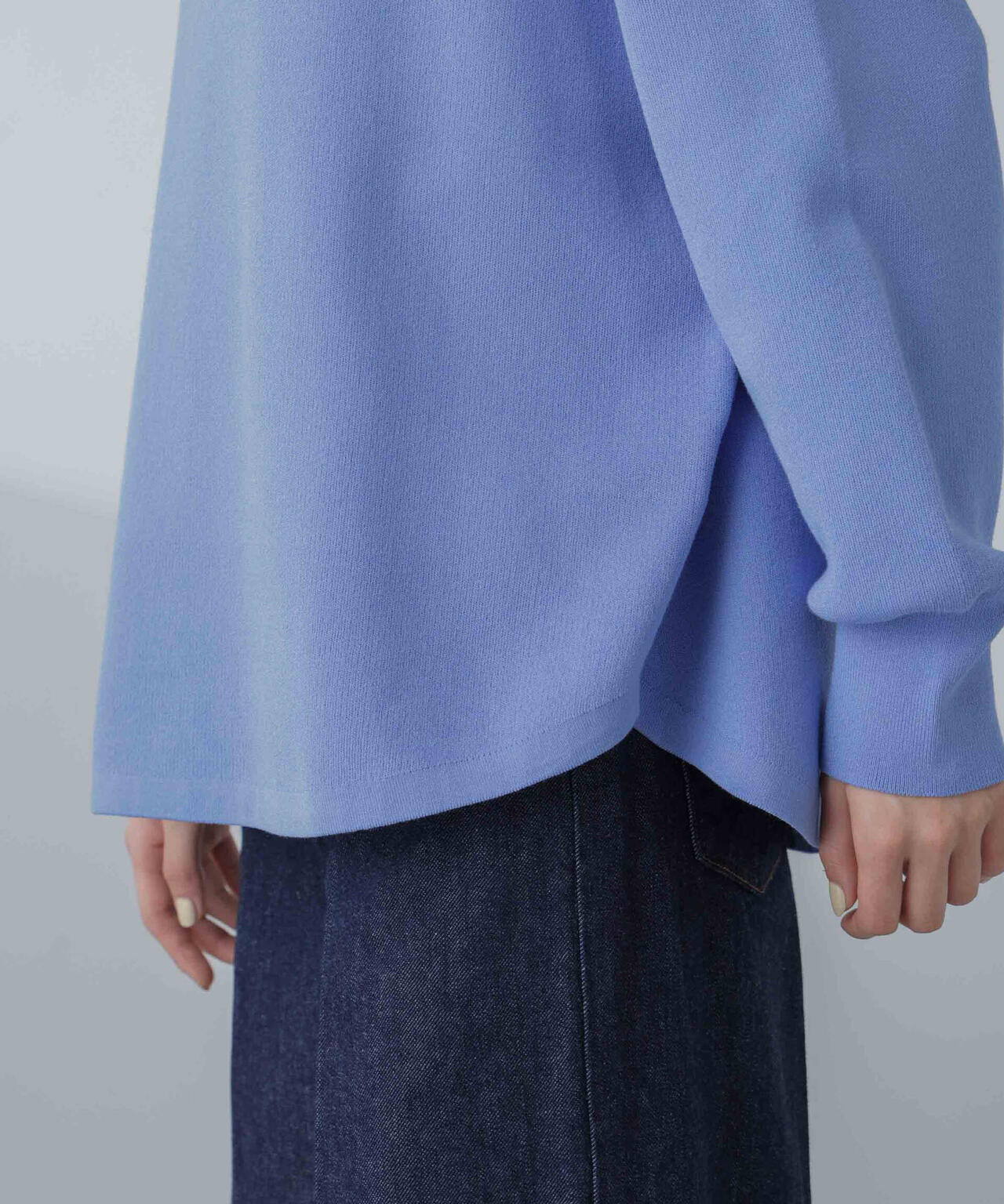 柔らかな雰囲気のあるスムース編みのニットプルオーバー。ニュアンス感のある着こなしが叶うゆとりのあるワイドシルエットに、ネックラインは細いパイピングで上品に仕上げました。女性らしさを引き出してくれる優しいカラーリングで、中にタートルを合わせるレイヤードも素敵です。
