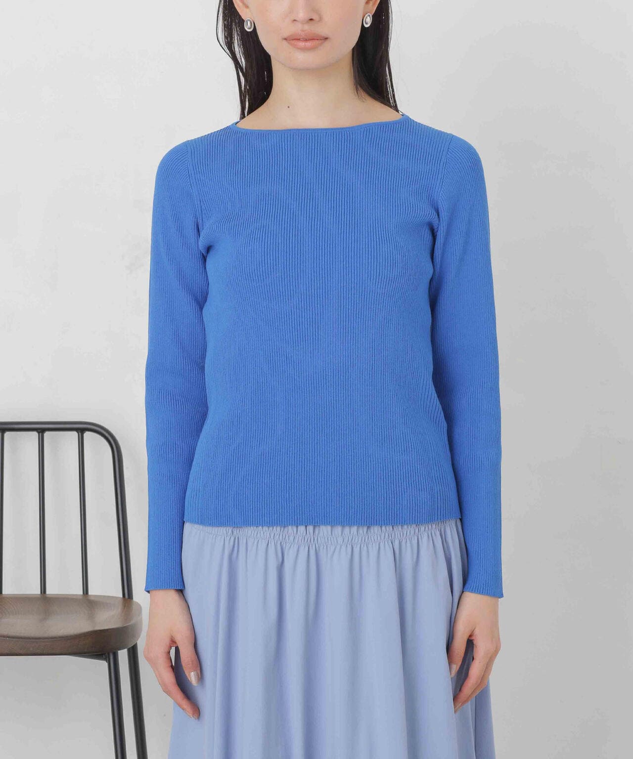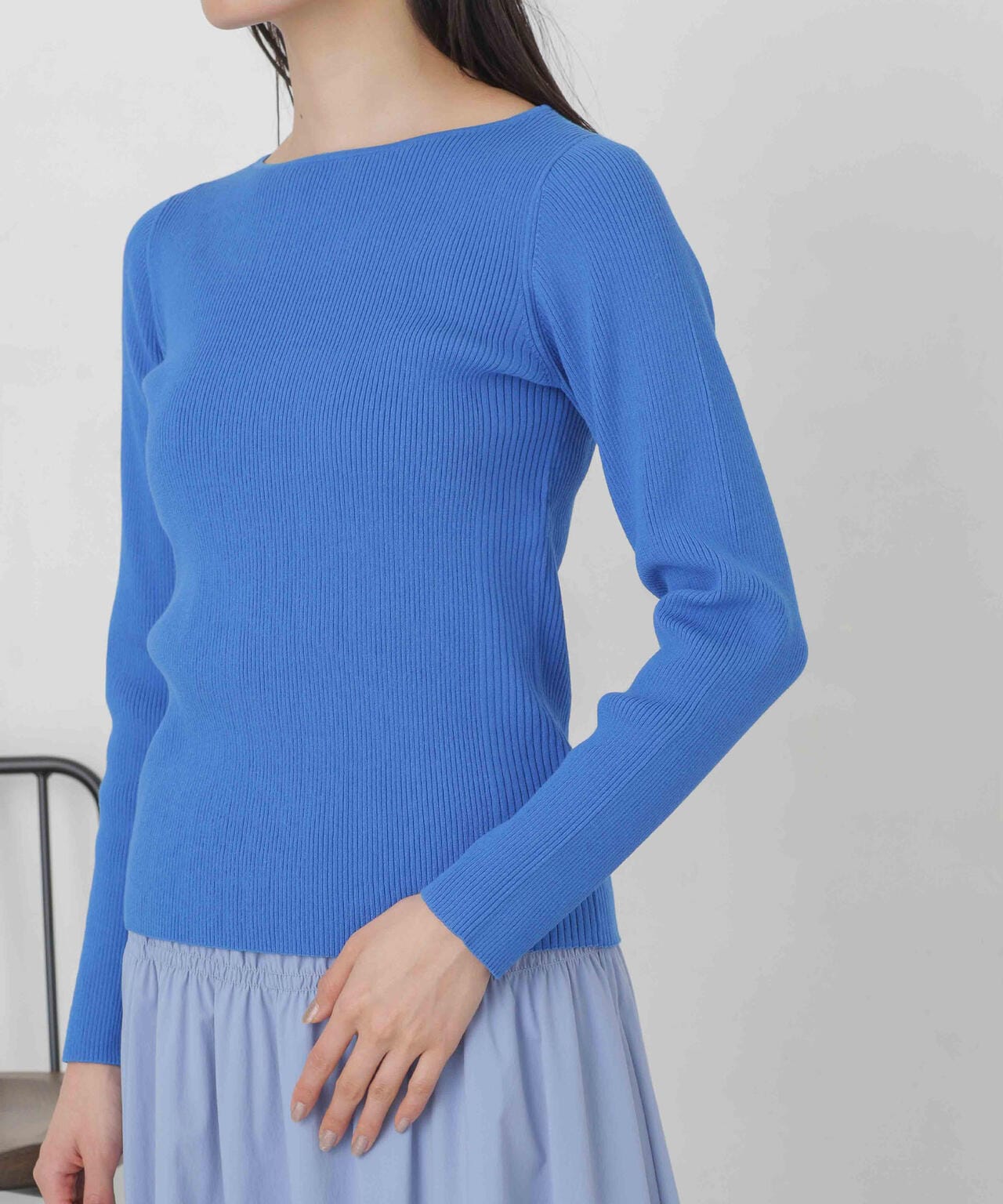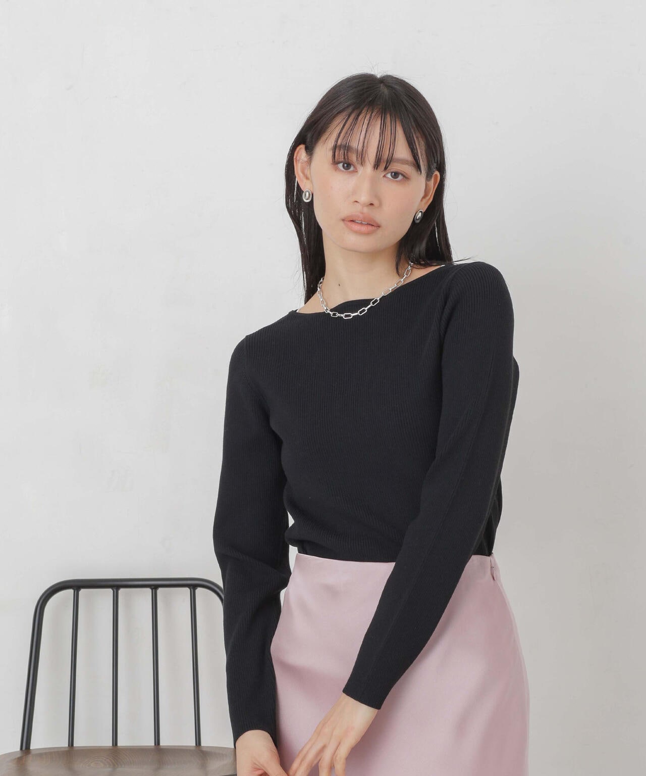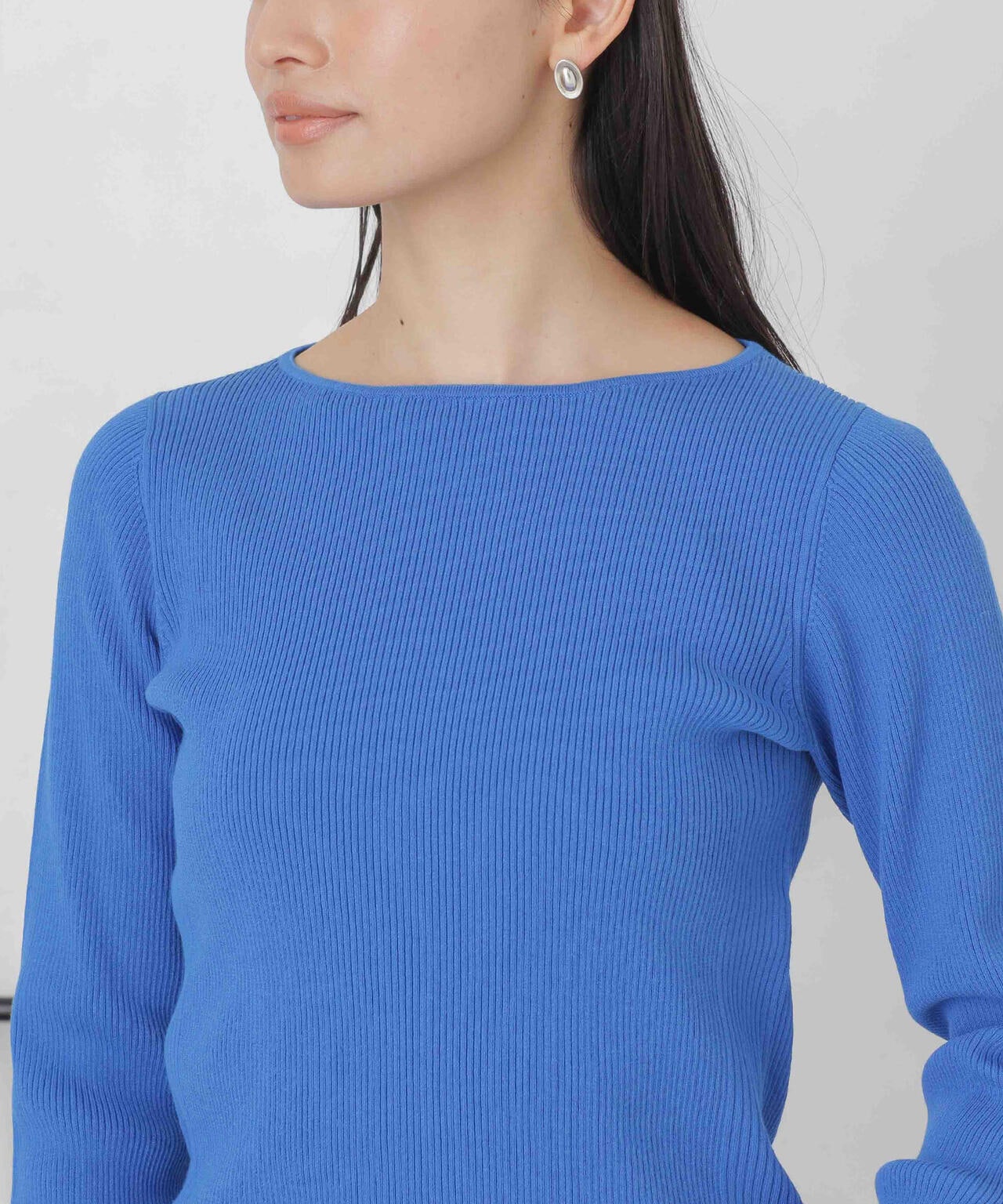 さらっとしたタッチで優しいフィット感が魅力のリブニットトップス。ボートネックで顔周りはスッキリとした印象に。リブ仕様と身体のラインを拾いすぎない程よい細身のシルエットで、女性らしく着こなせる一枚。コンパクトなデザインなので、これからのシーズンにジャケットのインナーとして大活躍します。