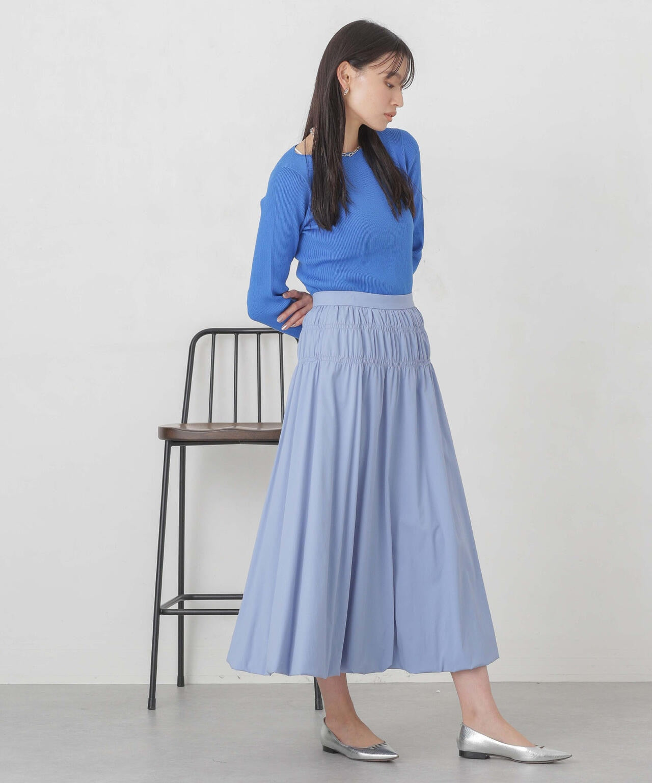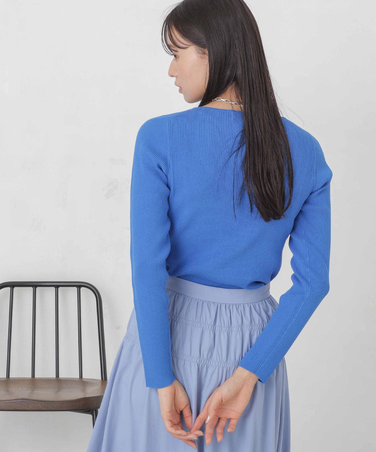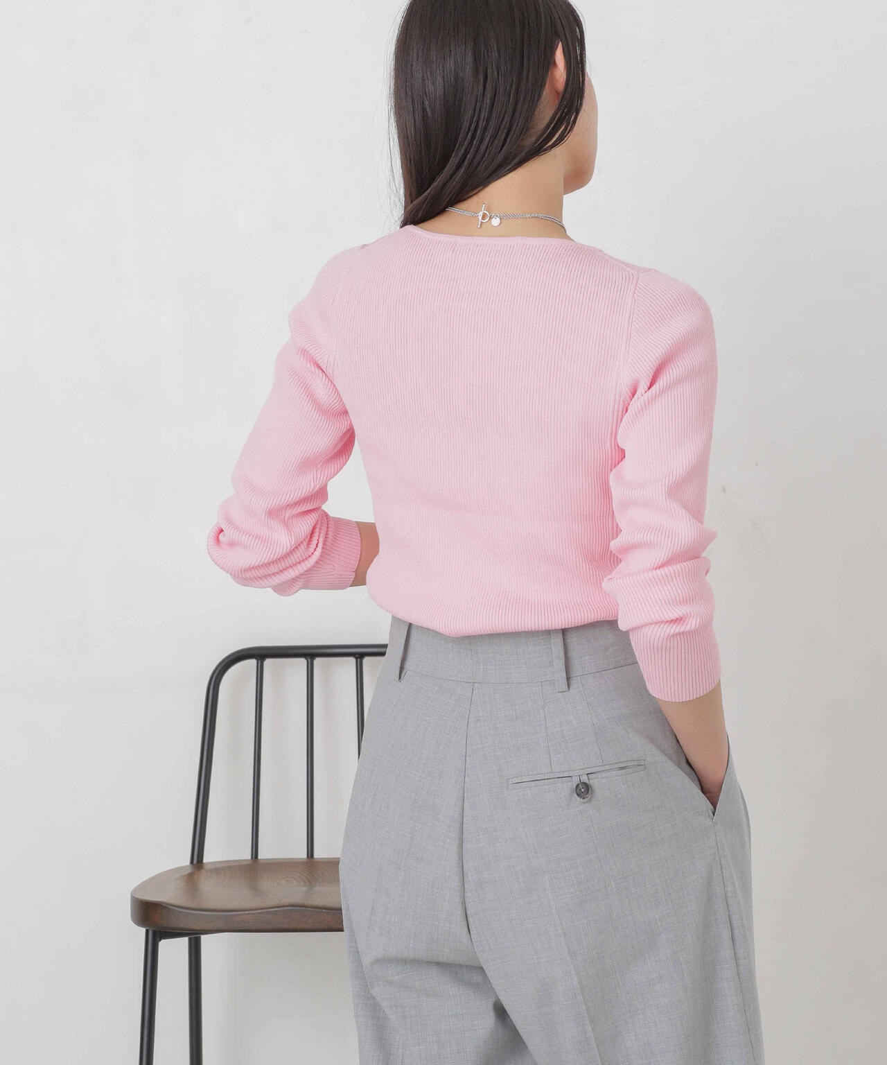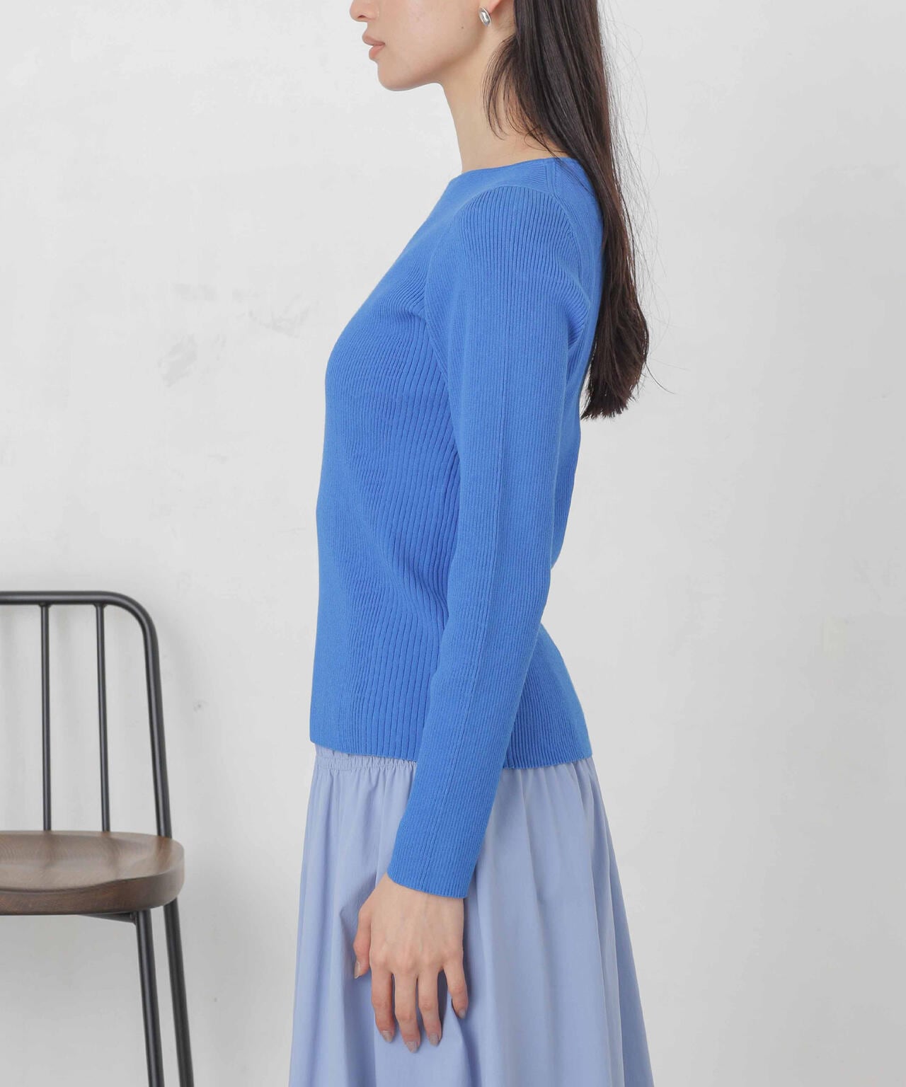さらっとしたタッチで優しいフィット感が魅力のリブニットトップス。ボートネックで顔周りはスッキリとした印象に。リブ仕様と身体のラインを拾いすぎない程よい細身のシルエットで、女性らしく着こなせる一枚。コンパクトなデザインなので、これからのシーズンにジャケットのインナーとして大活躍します。