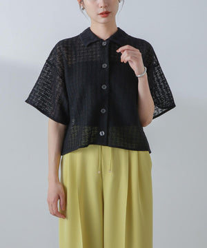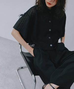 レースジャガードクロップドニットカーディガン