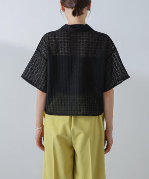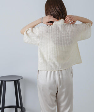 ・幾何学的な模様の繊細な総レースのような印象のニット